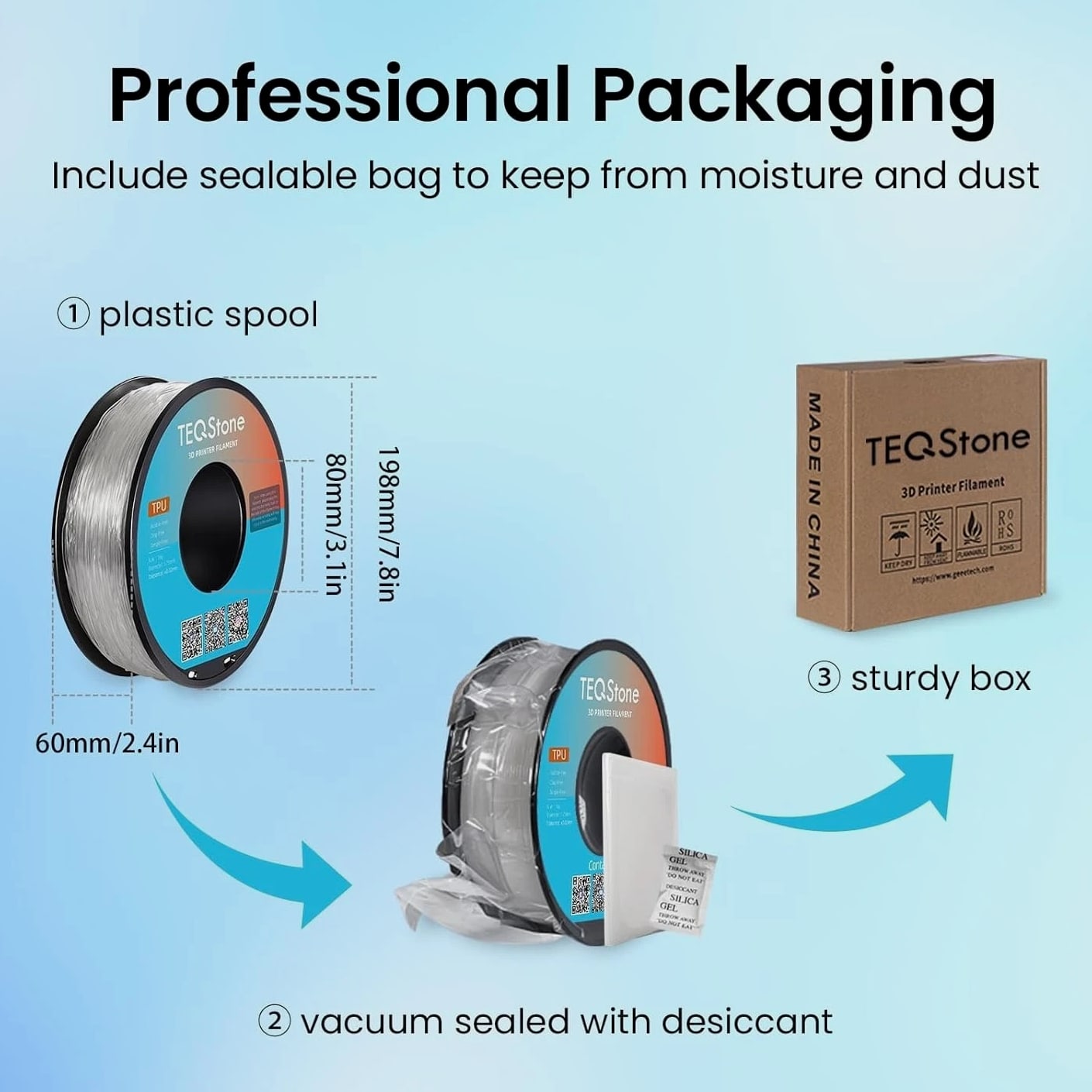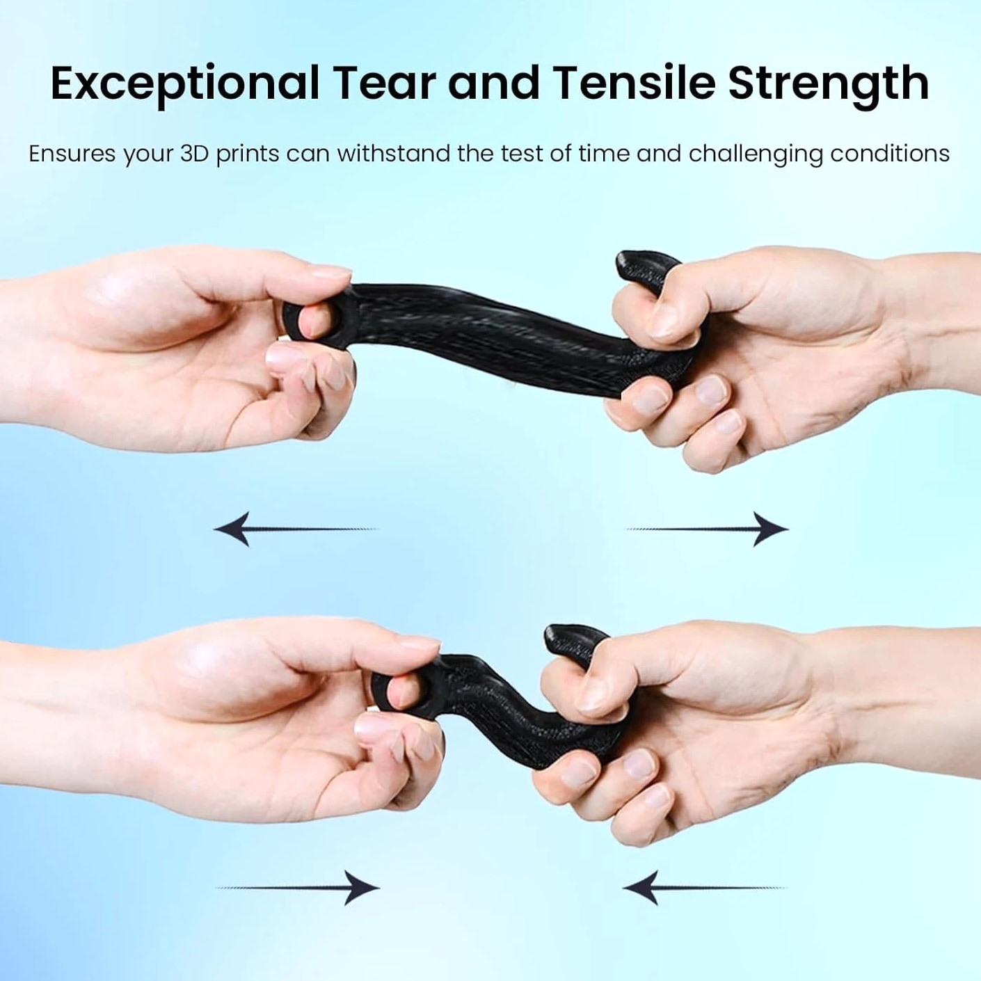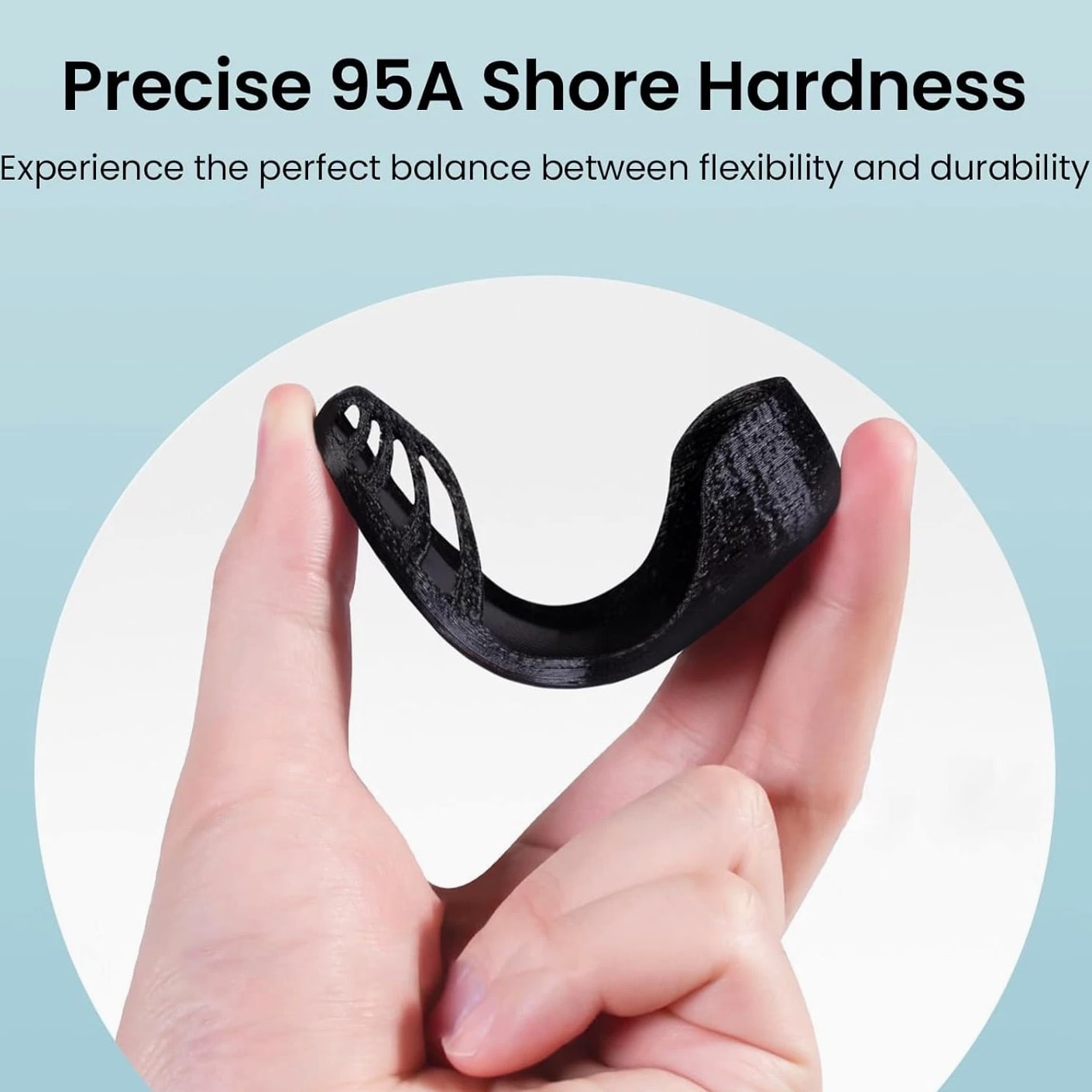 TPU Filament Black 1Kg Spool 95A Flexible Soft 3D Printer Filament - Consistent Diameter +/- in Vacuum Package Resilient and Elastic: Black TPU filament is known for its remarkable elasticity and resilience, making it perfect for applications where flexibility and bounce-back are essential, such as cases, shoe soles, and more. Your prints will maintain their shape and durability over time. Precise 95A Shore Hardness: Experience the perfect balance between flexibility and durability. This TPU 95A filament ensures your prints are strong and resilient. Consistent Diameter: With diameter accuracy of +/-, you can trust in reliable and smooth 3D printing experience, eliminating jams and inconsistent extrusion. High-Performance Printing: TPU filament offers exceptional layer adhesion and minimal warping, resulting in precise and professional-grade 3D prints that exceed your expectations. Versatile Compatibility: Our TPU black filament is compatible with a wide range of 3D printers, offering exceptional layer adhesion and minimal warping, resulting in precise and professional-grade prints that exceed expectations. An ideal choice for both beginners and experienced 3D printing enthusiasts.