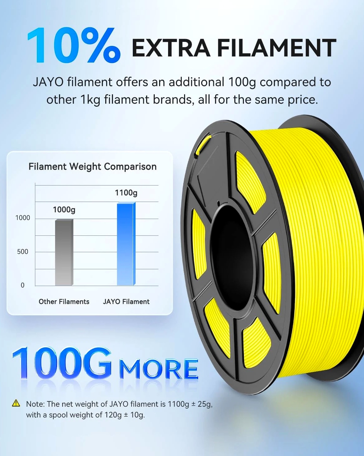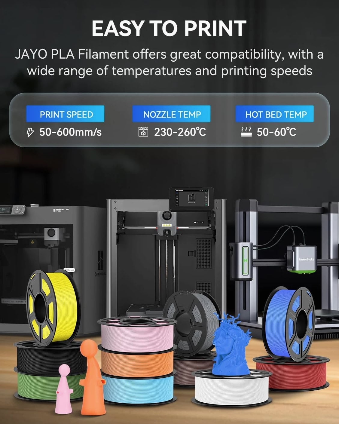 JAYO PLA Black 3D Printer Filament 1.1KG With Spool 1.75mm for FDM Printers