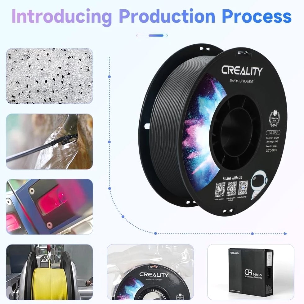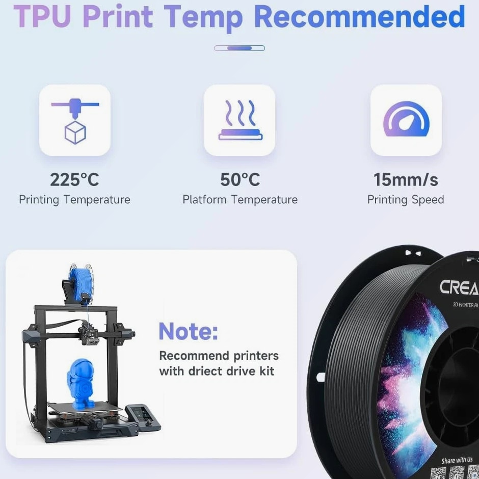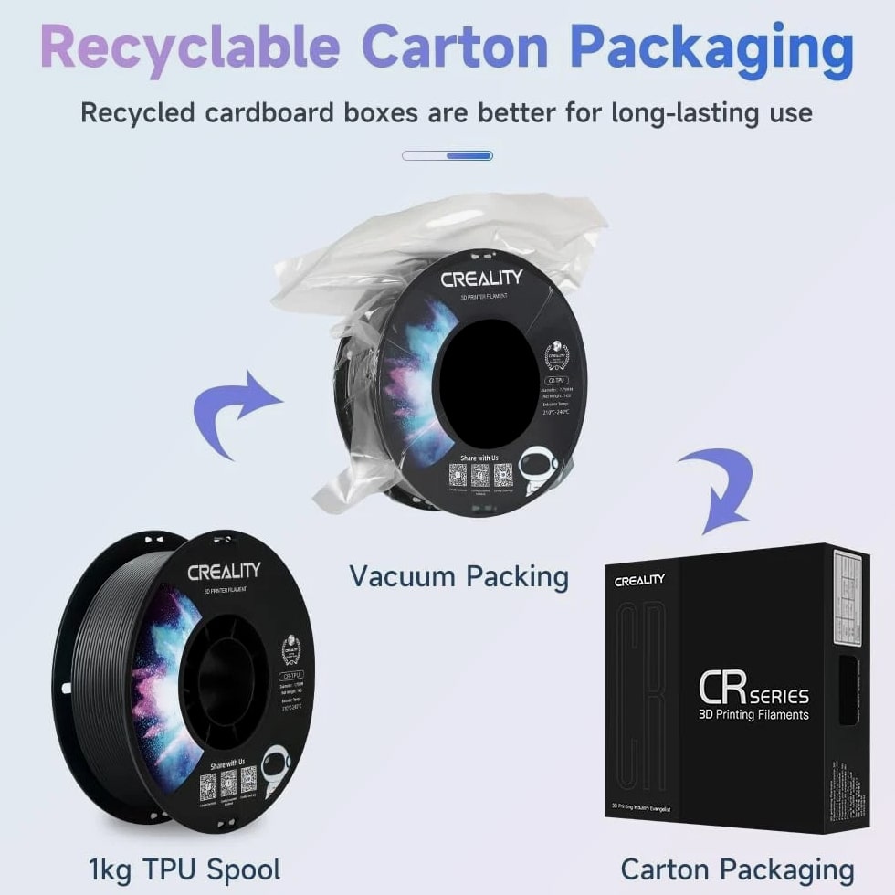 Flexible 3D Printer Filament, 95A Shore High Hardness & Resilience, Dimensional Accuracy +/- mm for Most FDM 3D Printers Note: TPU Filament, it is recommended to use the direct drive extruder for printing, which can greatly improve the success rate of printing Soft Filaments of High Elasticity: TPU Flexible Filament is a thermoplastic polyurethane (TPU) based filament specifically engineered to work on most desktop 3D printers. It has a shore hardness of 95A and can stretch 3 times more than its length. Excellent bed adhesion, low warp and low odor, make these flexible 3D filaments easy to print. High Quality TPU Filament: Designed and Manufactured with Clog-Free patent to guarantee a smoother and more stable printing experience with TPU Rolls. Complete drying for 24 hours before packaging and vacuum sealed with desiccants in a transparent bag, no bubble and easy to print. Full mechanical winding and strict manual examination, to make sure the line is tidy and less-tangle, so as to avoid possible snap and line breaking. Flex-up Your Imagination: TPU filament has wide applications including wear seals, plugs, gaskets, sheets, key ring cases for mobile hands-bike parts shock, and Wearable Devices/Protective applications such as insoles, watch bands, cases, drone parts and more Dimensional Accuracy & Consistency: Flexible filament advanced CCD diameter measuring and self-adaptive control system in the manufacturing guarantee these soft TPU filaments to be strict tolerances, diameter, dimensional Accuracy 99% Probability +/- mm without any exaggeration; 1 kg spool