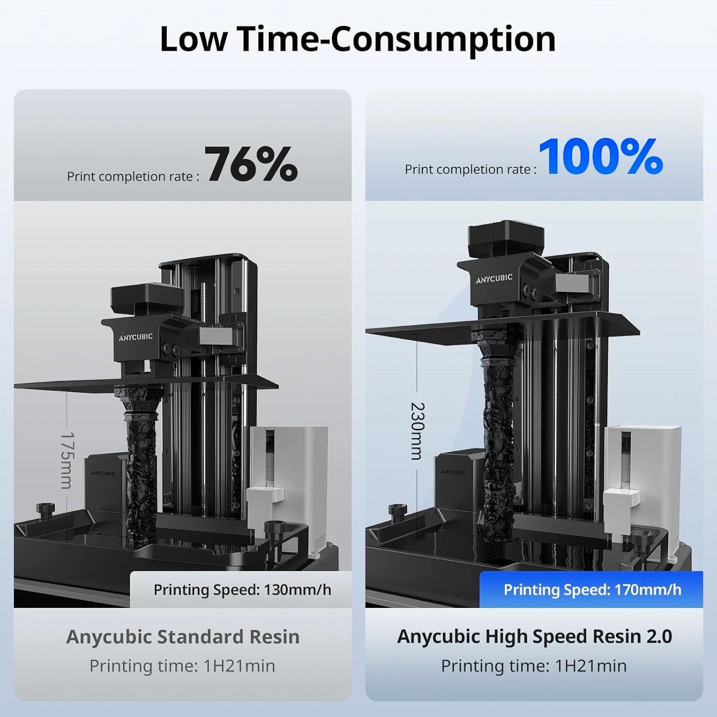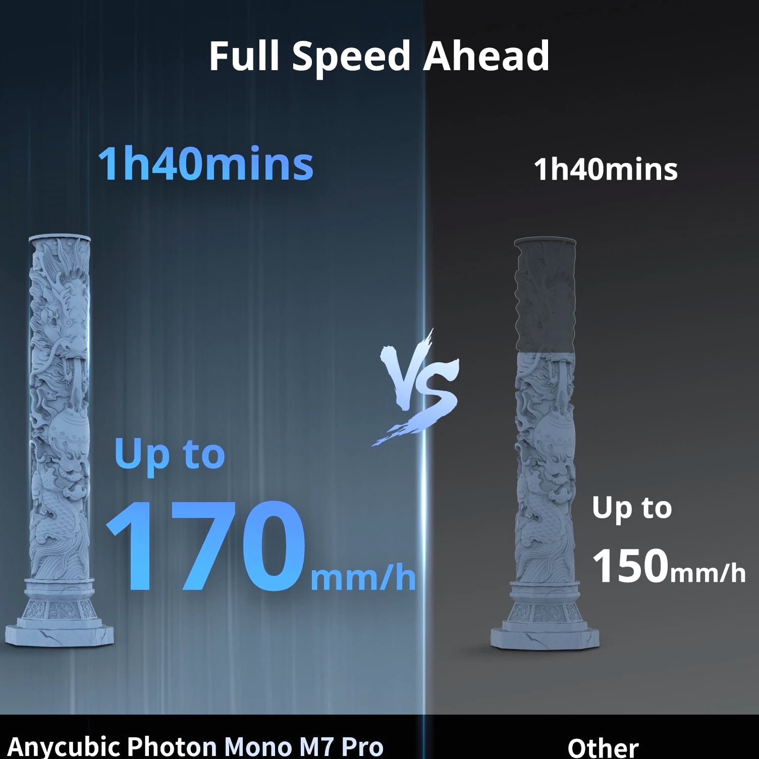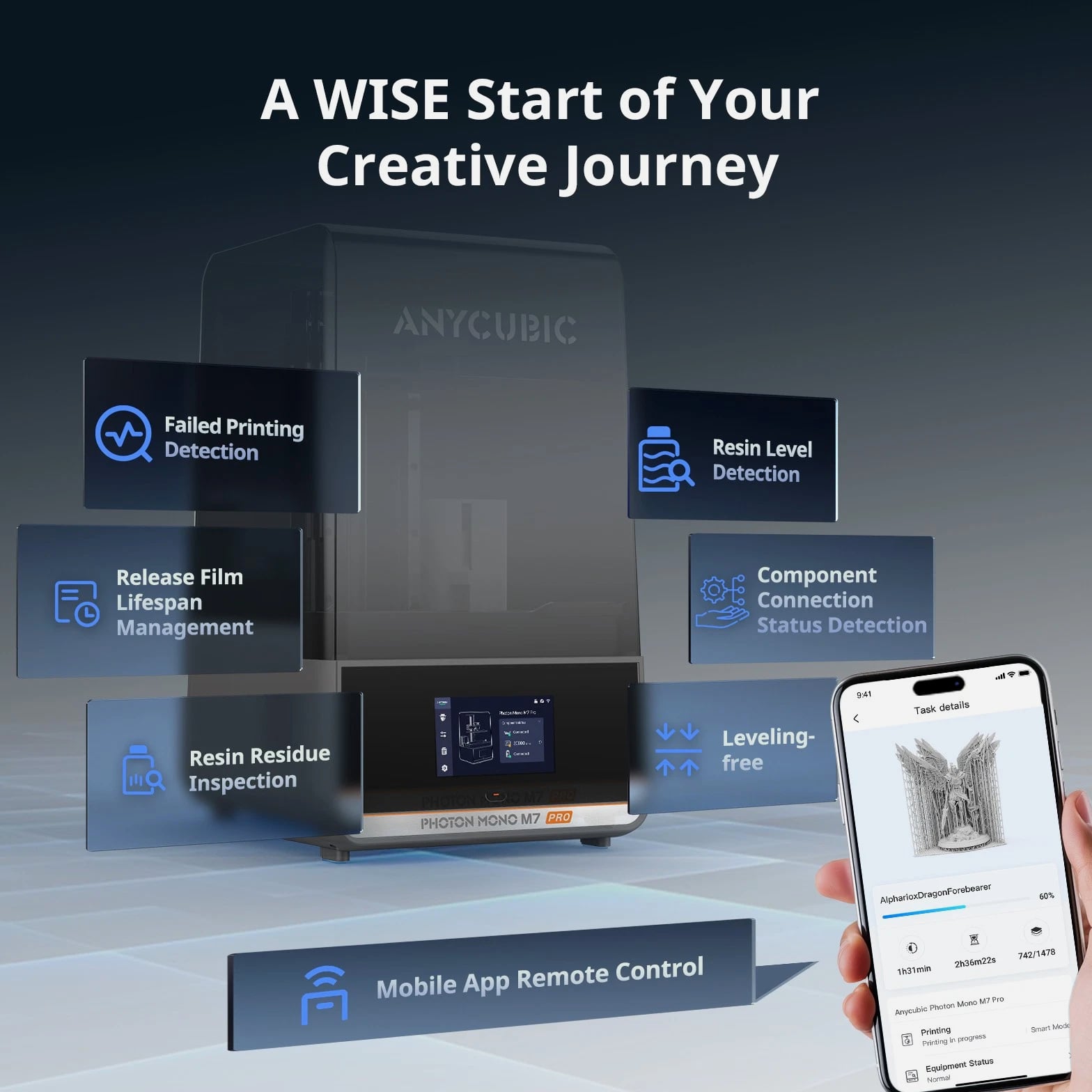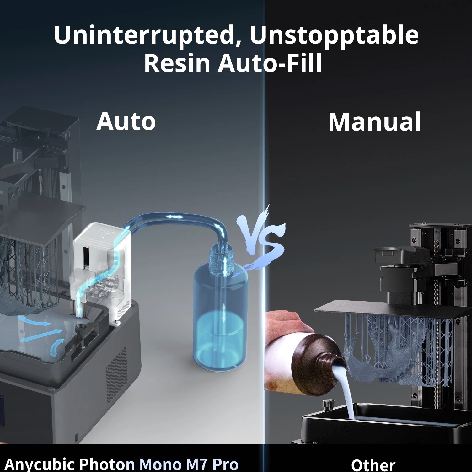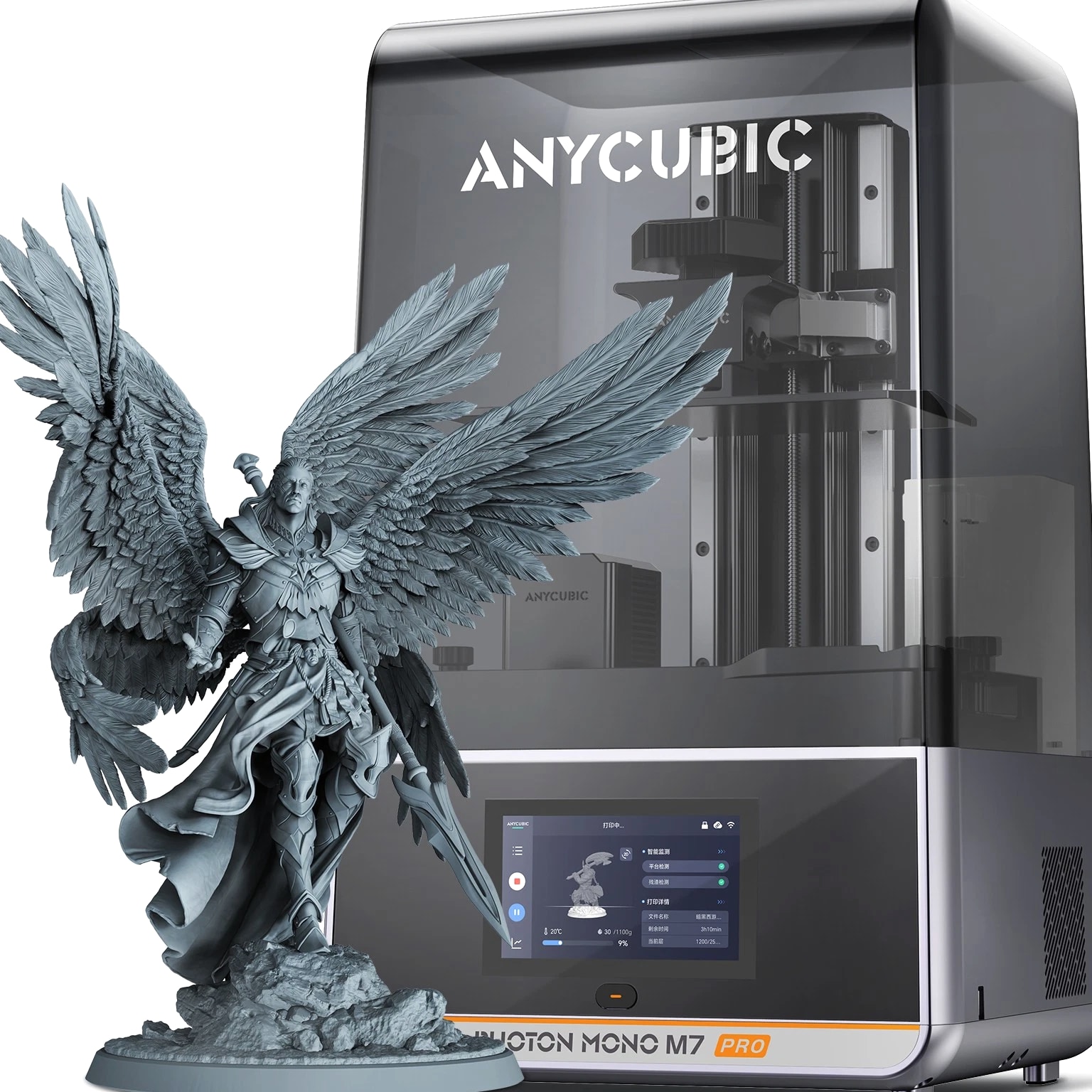 Anycubic Photon Mono M7 Pro about this item 【170mm/h Ultra High Speed】ANYCUBIC Photon Mono M7 Pro resin printer pioneered testing with a 0.1mm layer thickness, the maximum printing speed reaches 170mm/h when using high speed 2.0 resin, 30.77% faster than standard resin. 【Revealing Every Nuance in 14K】ANYCUBIC Photon Mono M7 Pro adopts the all-new 14K optical sources system LighTurbo 3.0, combined with Fresnel lenses and front-facing reflectors ≤3° angle, precisely controls each beam of light. 【Expansive Space for Your Creativity】With a large build volume of 223*126*230 mm³/8.79*4.96*9.06 inches, the Anycubic Photon Mono M7 Pro Resin 3D Printer provides ample space for your imagination. 【Temperature Control Resin Vat】Temperature control resin vat can dynamically adjust the resin temperature to ensure optimal printing efficiency and success rate, very convenient for use in cold weather or low temperature areas. 【Auxiliary Printing Equipments】Resin auto-fill unit supports auto resin refill and continuous refilling with printing, and one key recycling of remaining resin. Anycubic Airpure effectively absorbs and filters resin odors, providing a more comfortable printing experience.