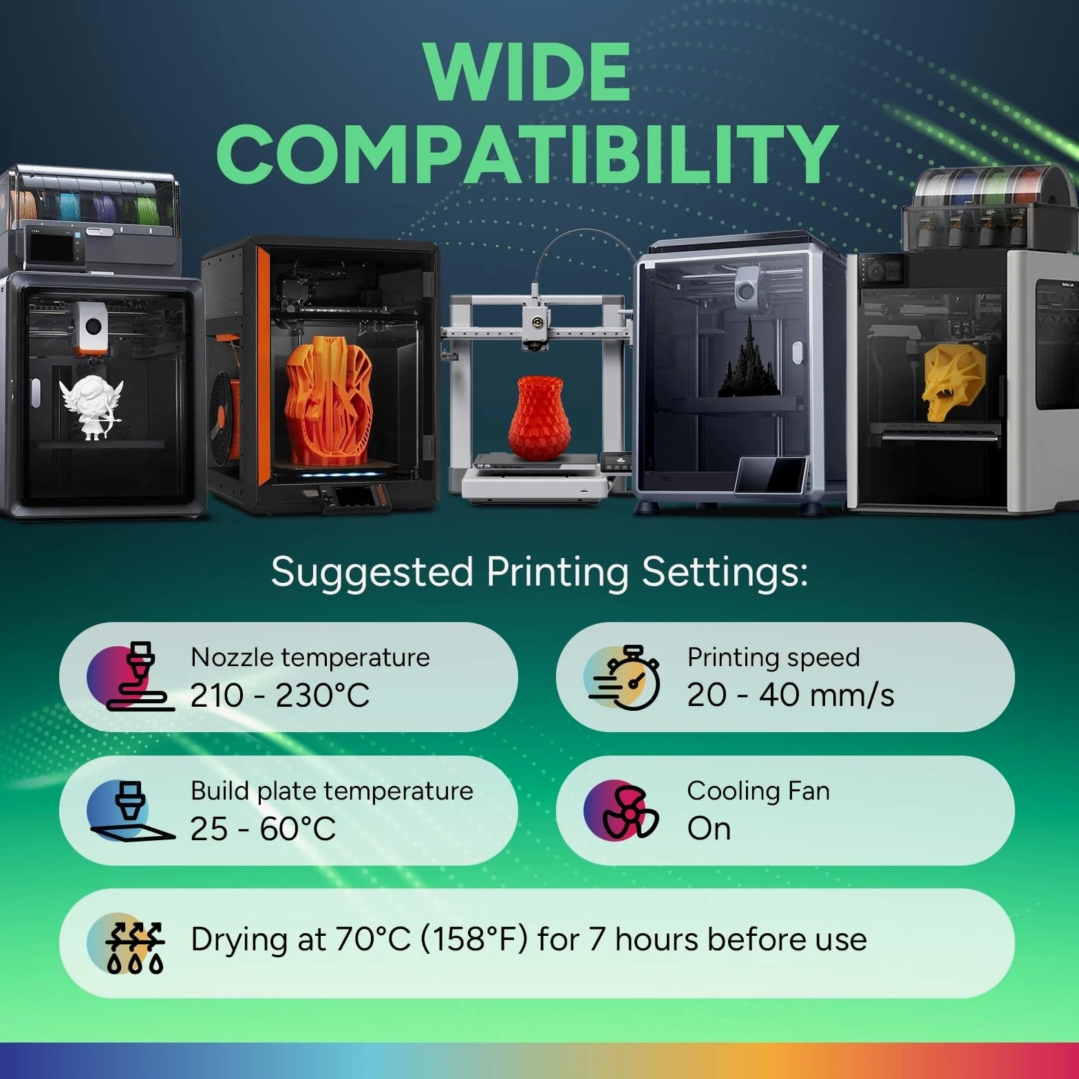 OVERTURE TPU Filament 1.75mm Flexible Roll, 95A Soft 3D Printer TPU Yellow Description Features: 【Premium 95A Flexibility & Durability】 Engineer flexible, high-performance parts with OVERTURE TPU filament. Its 95A Shore hardness provides the ideal balance of softness and toughness, offering excellent impact absorption and rebound elasticity for functional prototypes, wearables, robotics, and demanding applications. 【Oil Resistant & Mechanically Stable】 Designed for demanding conditions, OVERTURE TPU 95A filament provides reliable oil resistance and consistent mechanical stability. This durable yet flexible material is ideal for creating functional parts such as gaskets, seals, and protective components that require dependable, long-lasting performance. 【High Resilience & Shape Recovery】 Our TPU filament offers exceptional resilience and shape recovery, maintaining durability through repeated stress. Ideal for protective cases, flexible hinges, and components requiring long-lasting elasticity. 【Low-Temperature & Energy Efficient】 Engineered for efficiency, this TPU filament 1.75mm prints at a low 210-230°C nozzle temperature, which reduces energy use, minimizes heat-related issues, and supports longer, more economical printing sessions. 【Supported & Smooth Printing】 Print with confidence. Overture filament comes with dedicated support and a 1-year shelf life for unopened spools (proper storage required). We're committed to timely solutions for a seamless printing experience. Your reliable 3D printing partner. Product Details: Handling All orders ship within 1 business day of payment. Delivery We Do Not Ship Outside of the Continental US. Return Policy All items qualify for returns within 30 days of receipt. Buyer is responsible for return shipping on any item that is not damaged.