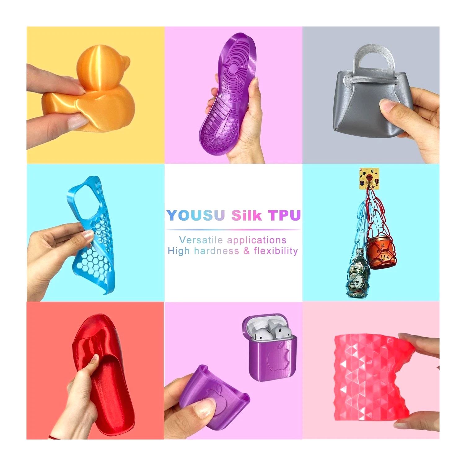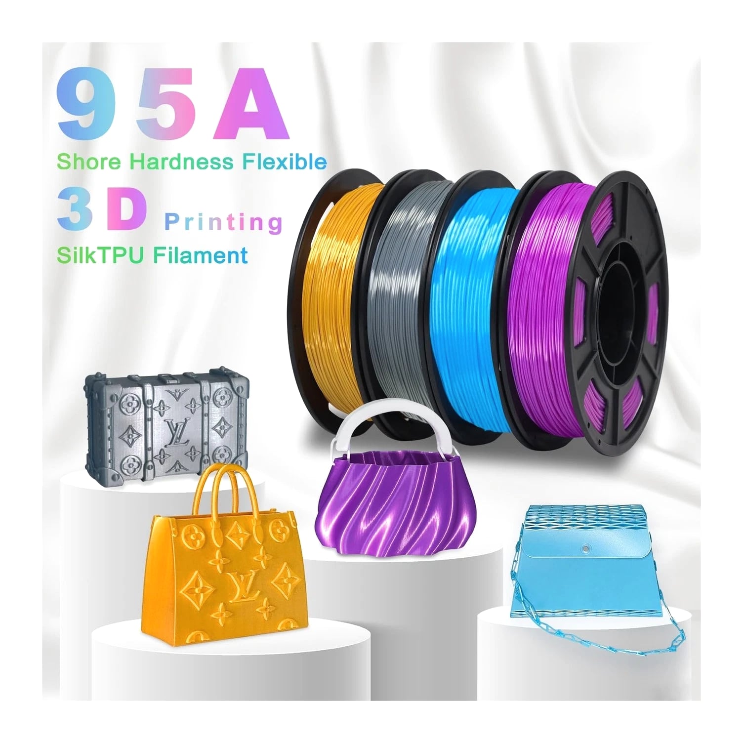 YOUSU Silk TPU Filament 1.75mm, 95A TPU 3D Printer Flexible Filament, High Hardness Resilience