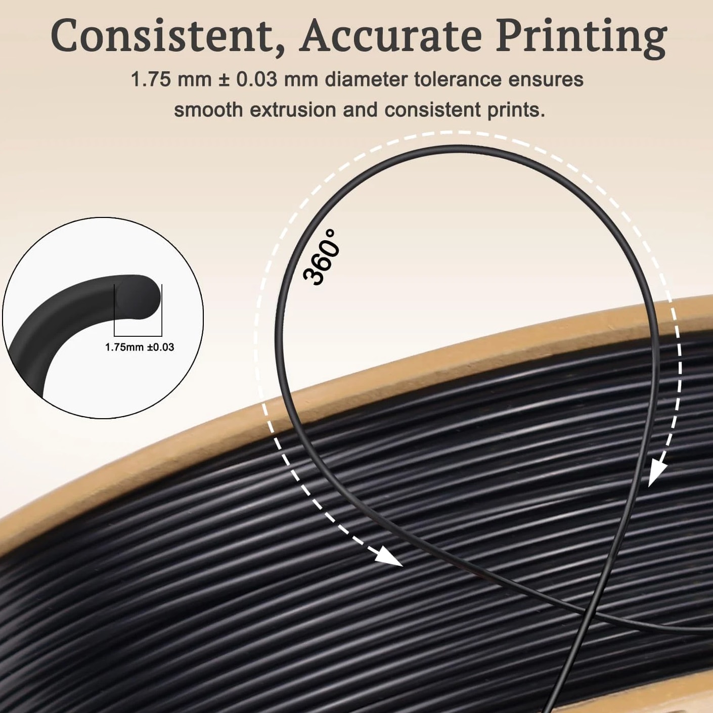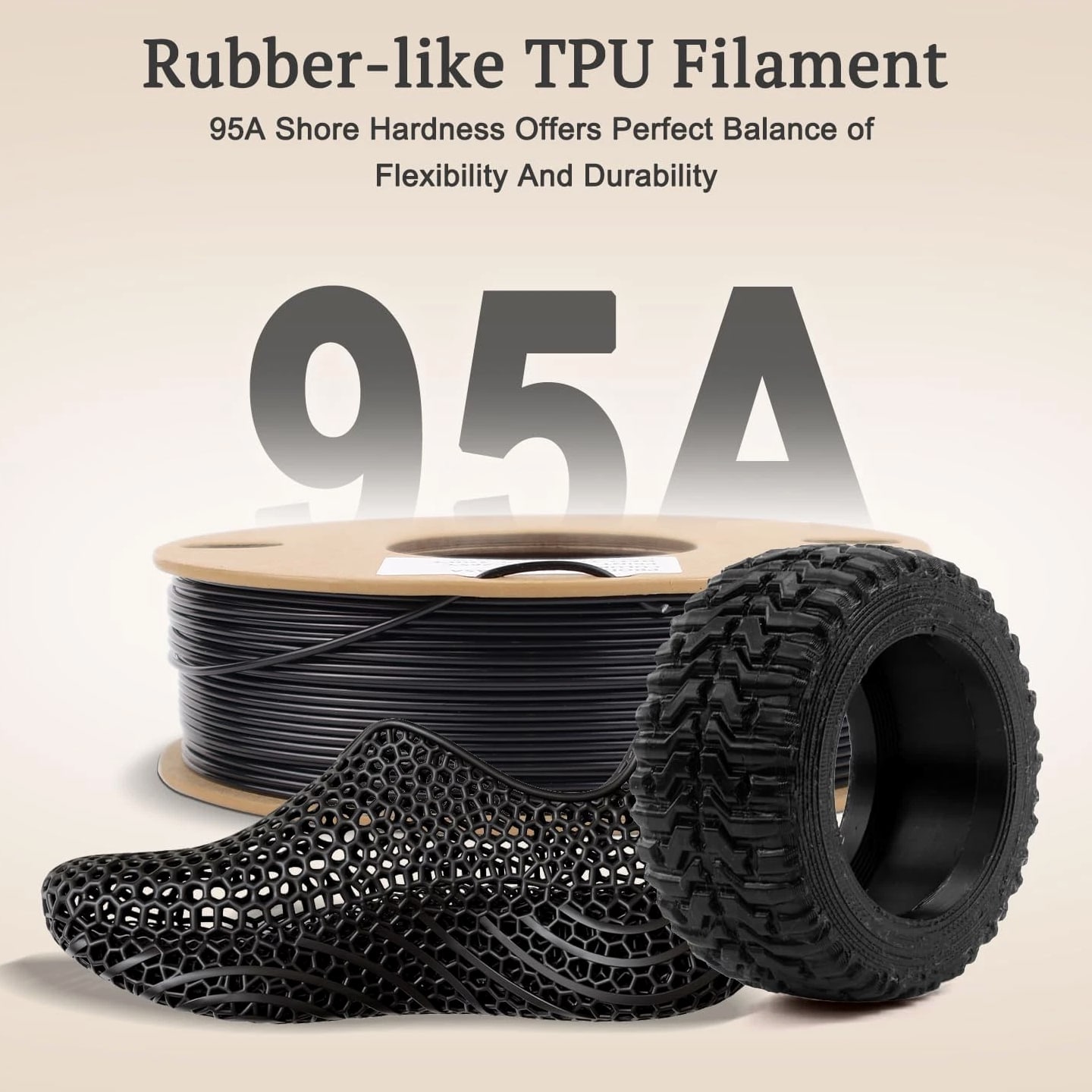 Black TPU Filament 1.75mm 250g (0.55 lb), 95A Flexible Rubber-Like 3D Printer Filament