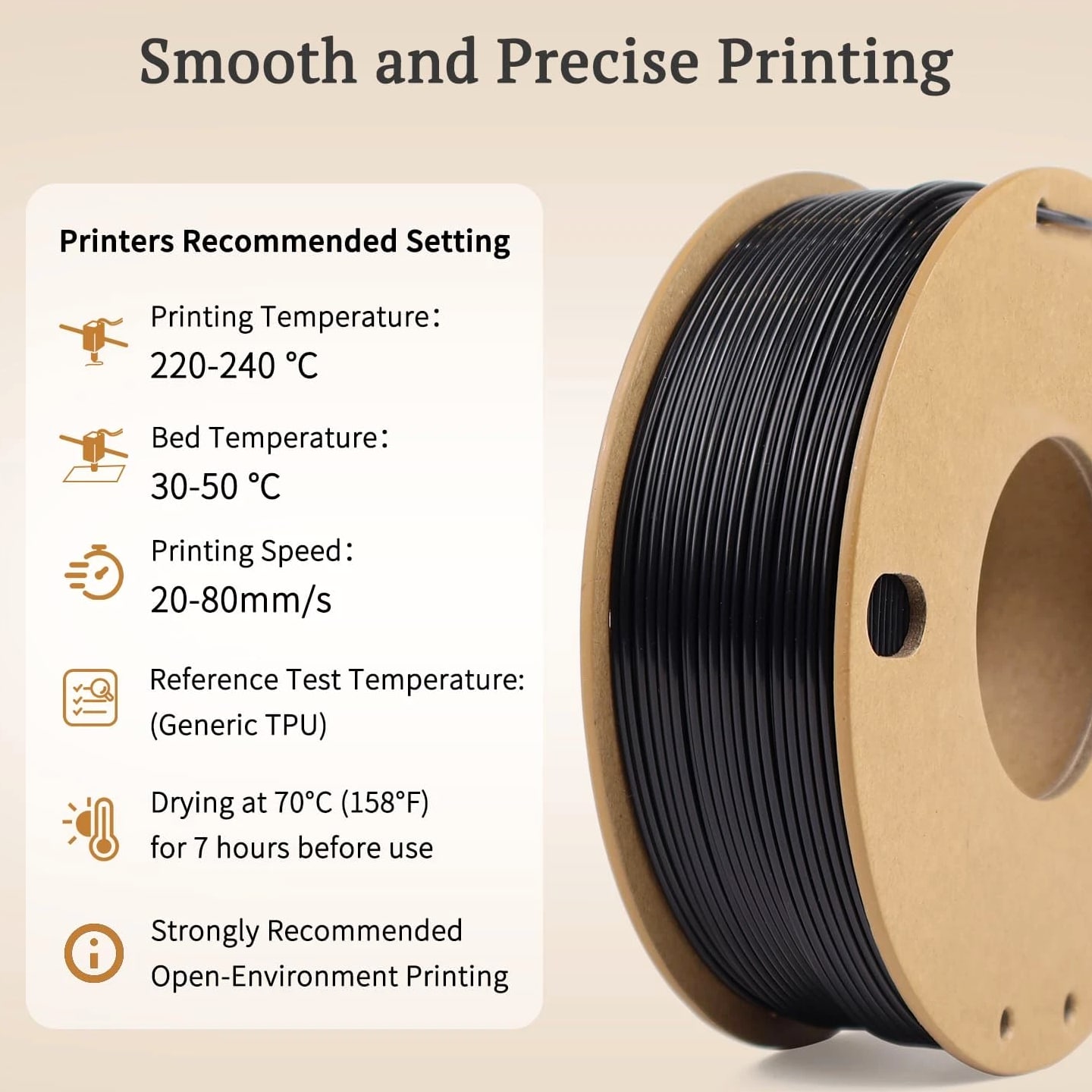 π§΅ Premium TPU 95A Flexible Filament β High-quality 1.75mm TPU filament with a Shore hardness of 95A, offering rubber-like elasticity, abrasion resistance, and impact strength for durable, flexible prints. π¨ Size & Color Options β Available in 250g spools (Black & White) for small projects and 1kg spools (Black, White & Blue) for larger builds, giving you the right amount of filament for every project. π― Smooth and Precise Printing β Consistent Β±0.03mm diameter tolerance ensures stable extrusion, strong layer adhesion, minimal stringing, and clog-free printing on most FDM 3D printers. βοΈ Perfect for Functional Prints β Ideal for gaskets, seals, phone cases, vibration-dampening parts, wearables, robotics, and flexible prototypes that require both strength and flexibility. π¦ Moisture-Proof & Support Guaranteed β Each spool is vacuum-sealed with a desiccant for freshness, and Lotactree provides dedicated after-sales support for a worry-free 3D printing experience. Product Description The video showcases the product in use. The video guides you through product setup. The video compares multiple products. The video shows the product being unpacked. TPU Filament 250g Series Merchant Video 1 Vibrant Color Options 2 Widely Printer-Compatible Series & Choices by LOTACTREE Add to Cart Add to Cart Add to Cart Add to Cart Add to Cart Customer Reviews 4.4 out of 5 stars 136 4.4 out of 5 stars 107 4.4 out of 5 stars 107 4.3 out of 5 stars 205 4.4 out of 5 stars 11 Price $8.99 $17.99 $17.47 $13.99 $21.49 Materials TPU 95A PLA Silk PLA Silk PLA Force PLA Glow Features Flexibility Silky Surface and Dual Colors Silky Surface & Triple Colors Easy to Print Glow-in-the-Dark Printing Temperature 220-240β 220-240β 220-240β 210-230β 210-230β Bed Temperature 30-50β 0-60β 0-60β 0-60β 0-60β Reference Test Temperature Generic TPU Generic PLA-SILK Generic PLA-SILK Generic PLA Generic PLA