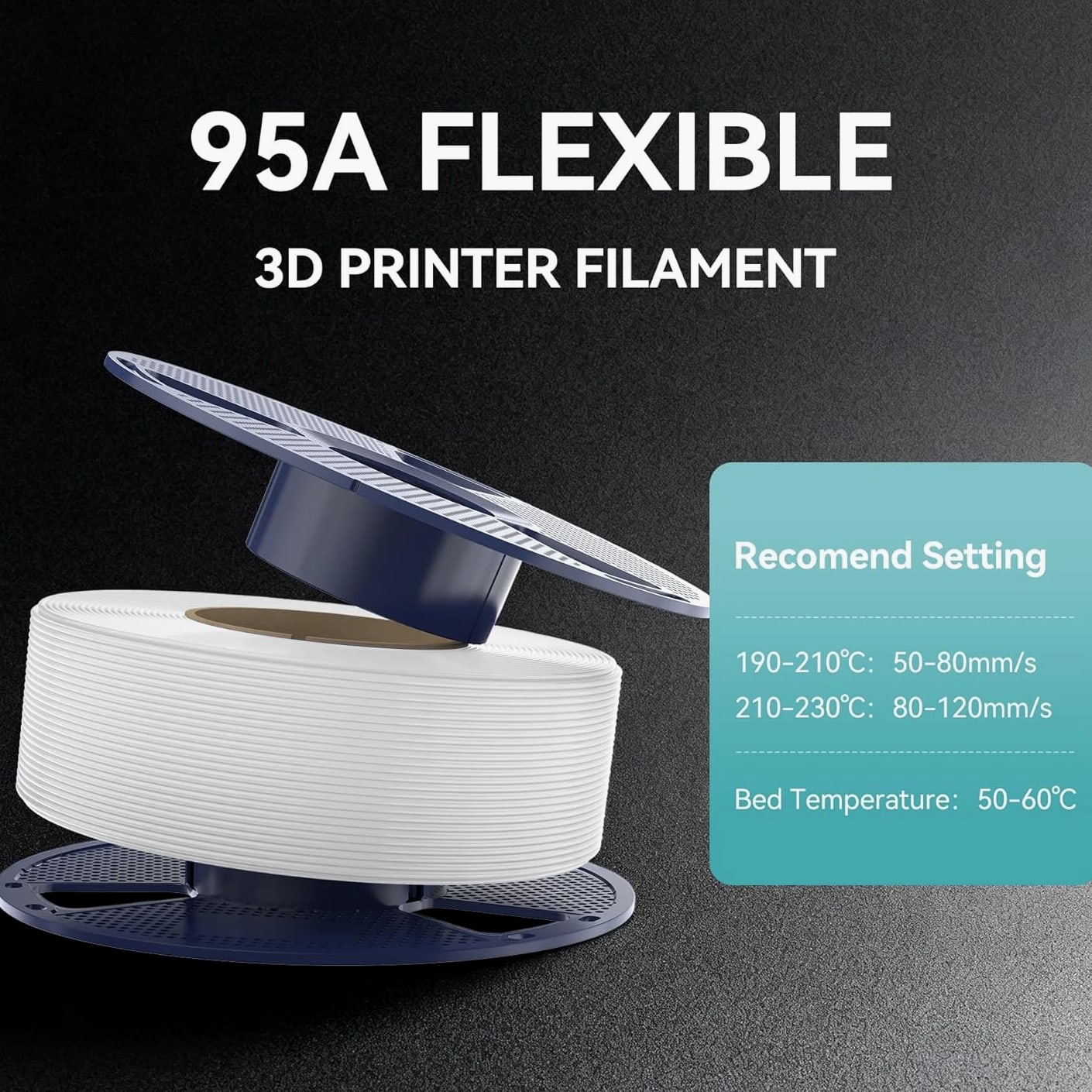 TPU Filament 1.75mm, 95A Flexible 3D Printer Filament, Soft TPU 1kg Spool (2.2 lbs)