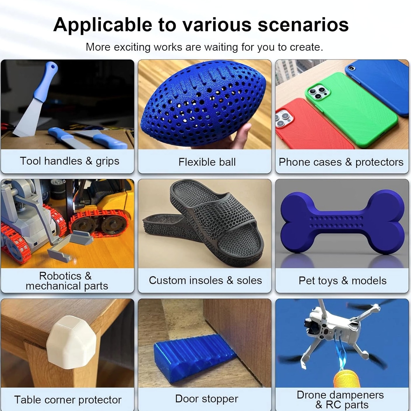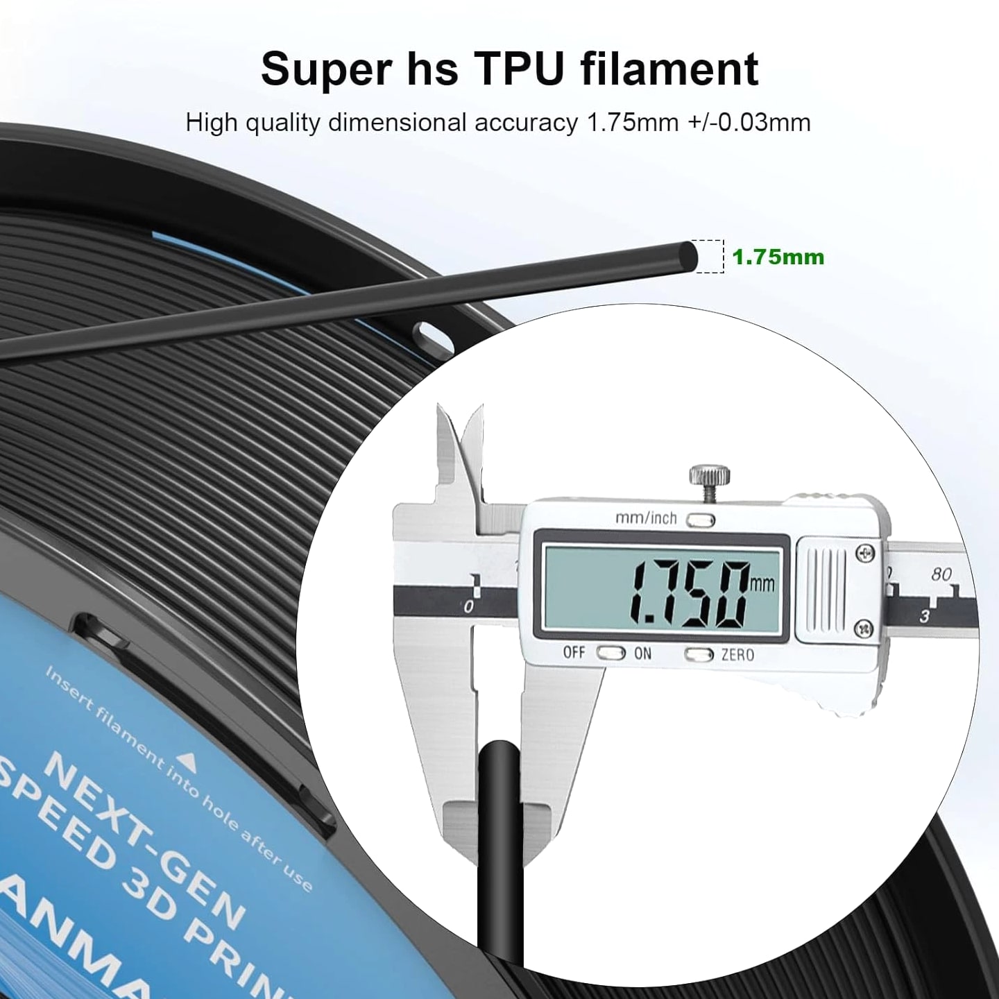 TPU Filament 1.75mm 95A Black - 1kg/2.2lbs High-Speed Flexible 3D Printer Material