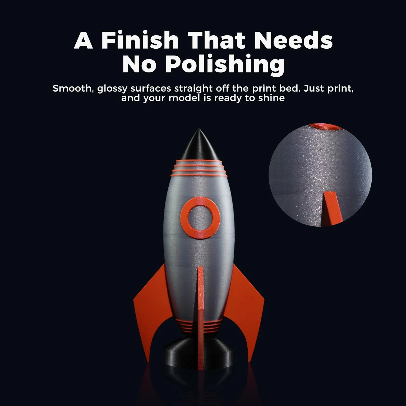Hyper PLA Starry Series Galaxy Sparkle 3D Printing Filament 1.75mm Shiny PLA with Reflective Flakes, Glossy Finish, No Polishing Needed 【Galaxy-Like Sparkle, Made to Be Seen】Infused with fine reflective flakes, Hyper RFID PLA Stardust Series shimmers like stardust—revealing dazzling details from every angle. Perfect for eye-catching models that shine straight off the print bed—no polishing, no filters needed. 【Effortless, High-Speed Printing】Built on Hyper PLA formulation, Starry delivers smooth extrusion, stable performance, and brilliant results at speeds up to 600 mm/s, maintaining flawless detail even during rapid printing. 【Rapid, Consistent Extrusion】Built on Hyper PLA formulation, Starry delivers smooth extrusion, stable performance, and brilliant results at speeds up to 600 mm/s, maintaining flawless detail even during high-speed printing. 【High Dimensional Accuracy & Superior Toughness】Engineered with ±0.03 mm precision for consistent flow, seamless layer bonding, and excellent bridging. Enhanced toughness ensures durability and reliable structural strength—stronger than standard PLA, yet easy to print. 【Tangle-Free Spooling & Excellent Compatibility】Clog-free, tangle-free spooling ensures smooth feeding and excellent extrusion. Fully compatible with most 3D printers supporting high-speed PLA printing.