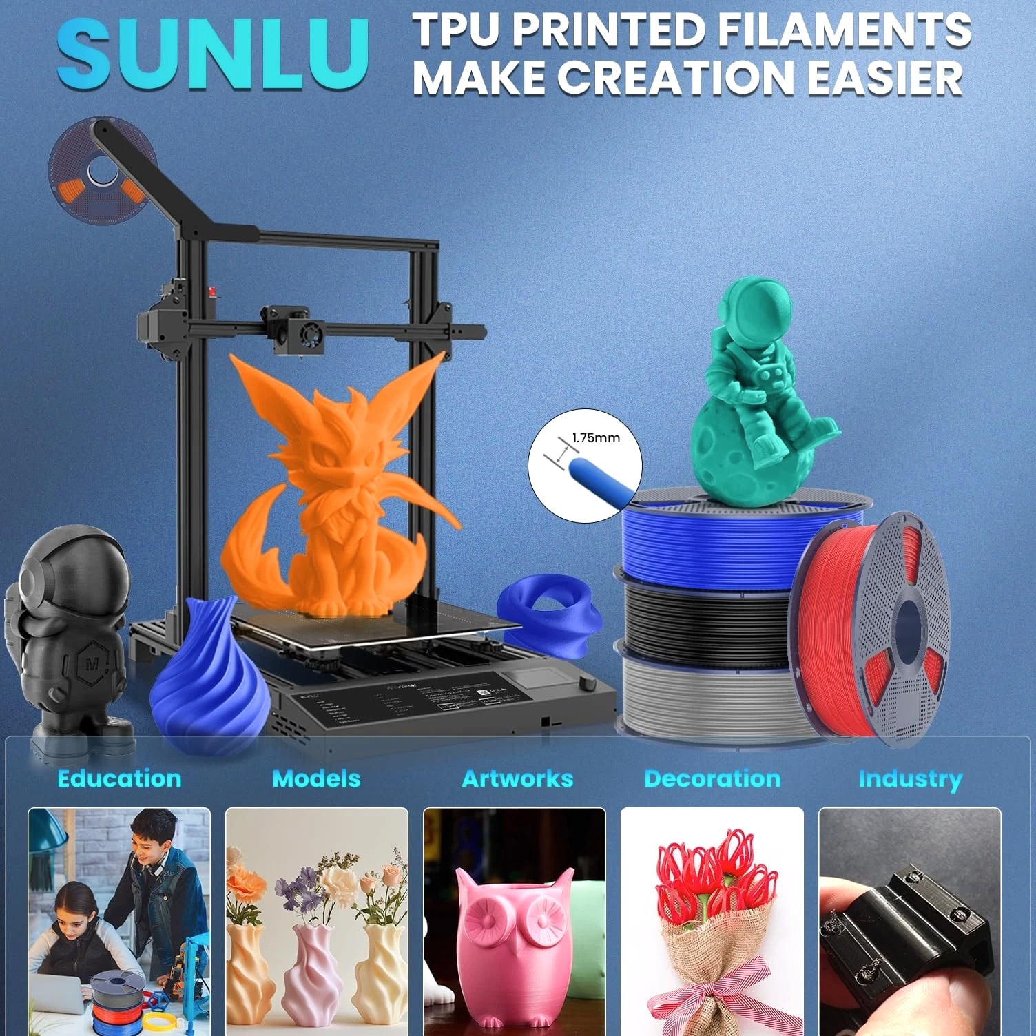 TPU 3D Printer Filament 1.75mm, Fast Speed 95A TPU Filament, 1KG Flexible 3D Printing