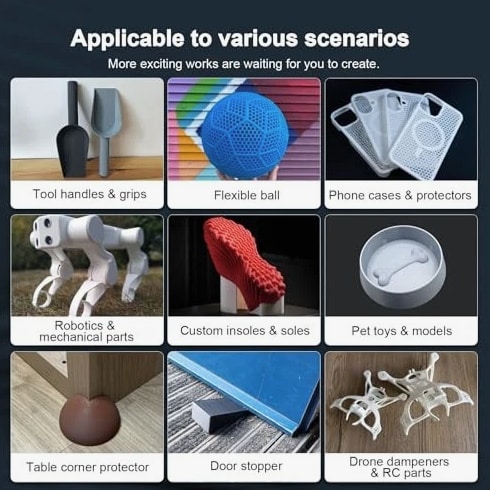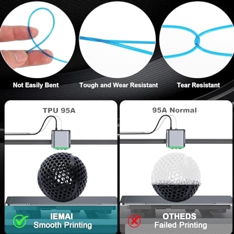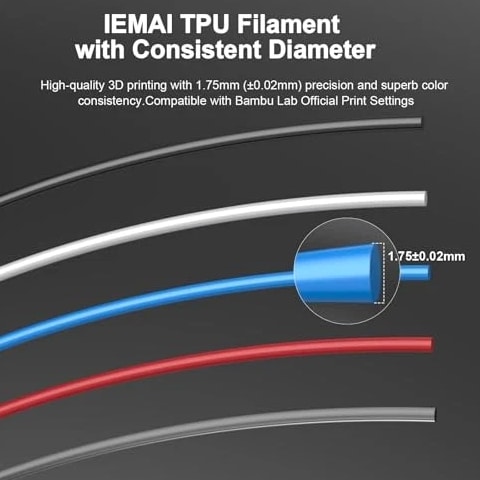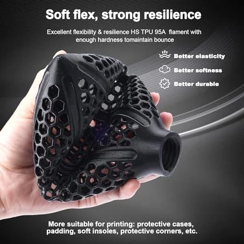 TPU 95A 3D Printer Filament 1.75mm, Flexible & Soft Polyurethane, +/- 0.02mm Dimensional Accuracy, 1KG Spool (2.2lbs), Compatible with Most FDM Printers, Black Product Description 【Superior Flexibility & Industrial-Grade Toughness】 Engineered with a Shore Hardness of 95A, TPU strikes the perfect balance between soft elasticity and structural strength. It delivers exceptional impact resistance and high tear strength, making it the ideal choice for functional parts that require repeated bending or compression, such as gaskets, seals, protective cases, and vibration dampers. 【Ultra-Precise ±0.02mm Tolerance for High-Speed Feeding】 Experience a new level of reliability with our advanced CCD diameter measuring system. While standard filaments offer ±0.05mm, this maintains a strict ±0.02mm dimensional accuracy. This superior consistency is critical for high-speed extrusion, ensuring smooth, stable flow and preventing slipping or jamming, even during the rapid retractions typical of modern 3D printers. 【High-Speed Optimized for Bambu Lab & More】 Specifically formulated to reduce friction and improve melt flow, our TPU 95A is perfectly optimized for printers like the Bambu Lab X1, P1, and A1 series. It supports significantly higher printing speeds compared to traditional flexible materials without sacrificing surface quality or layer adhesion, allowing you to complete complex flexible projects in record time. 【Vacuum Sealed & Tangle-Free Precision Winding】 Each spool undergoes a thorough 24-hour drying process before being vacuum-sealed with high-quality desiccant to ensure a bubble-free and moisture-free printing experience. Our full-mechanical winding process ensures a 100% tangle-free spool, which is essential for the high-torque, high-speed feeding systems of Bambu Lab and other professional-grade machines. 【Universal Compatibility & Professional Results】 Designed for versatility, TPU 95A provides a seamless experience.