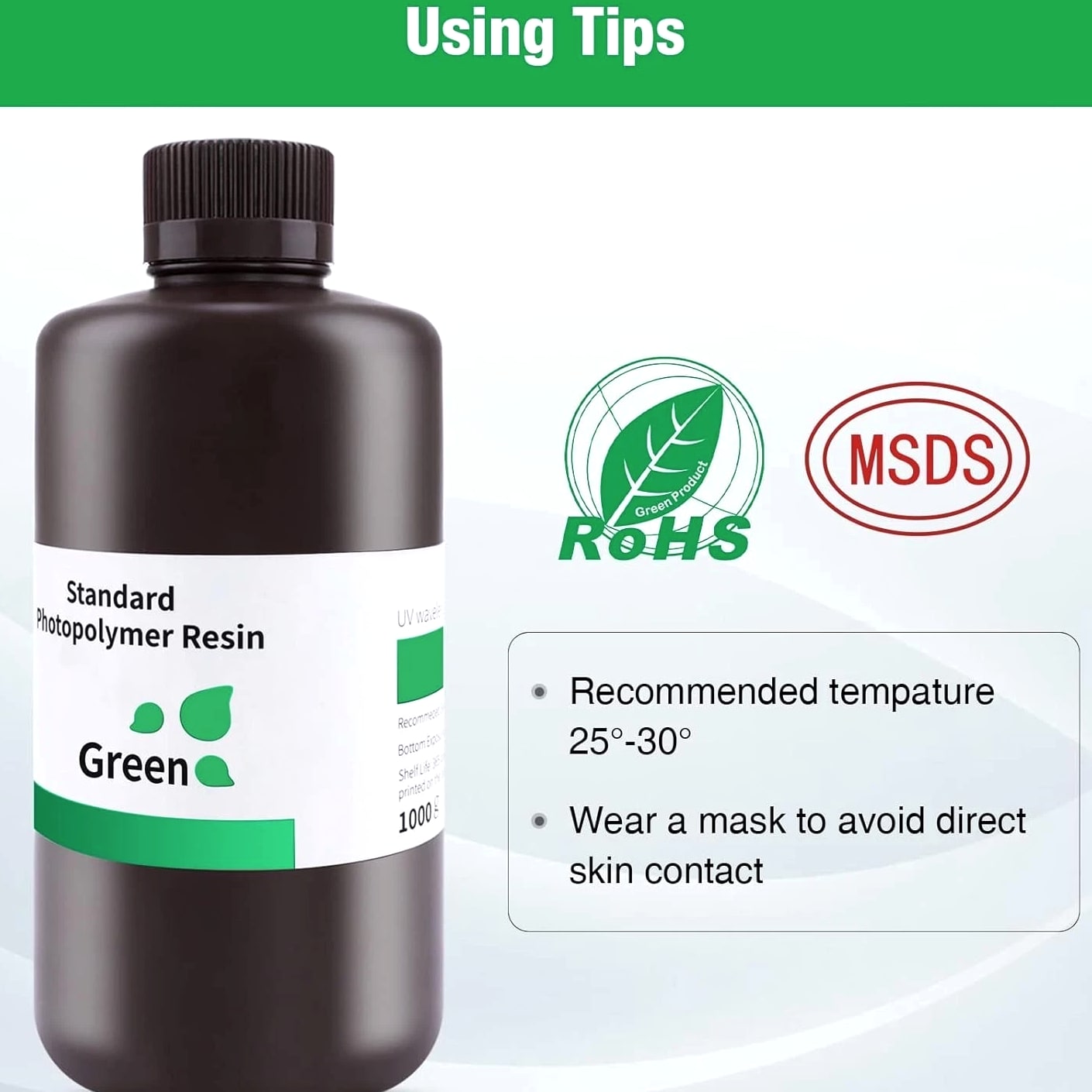 ELEGOO 3D Printer Resin 1000g - Fast Curing, Non-Toxic Clear Green