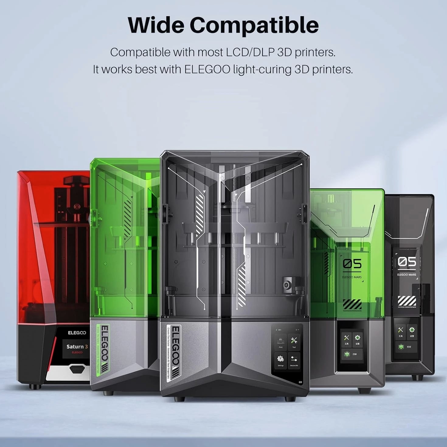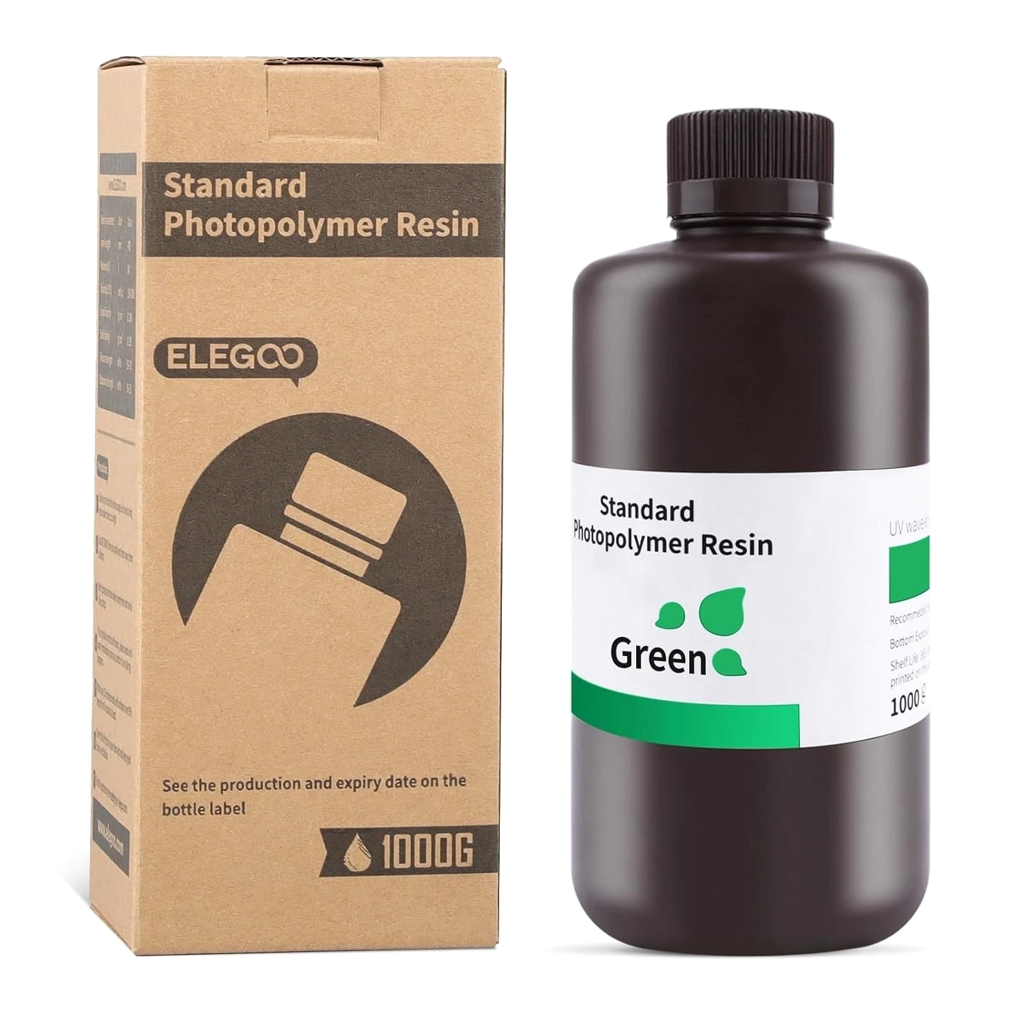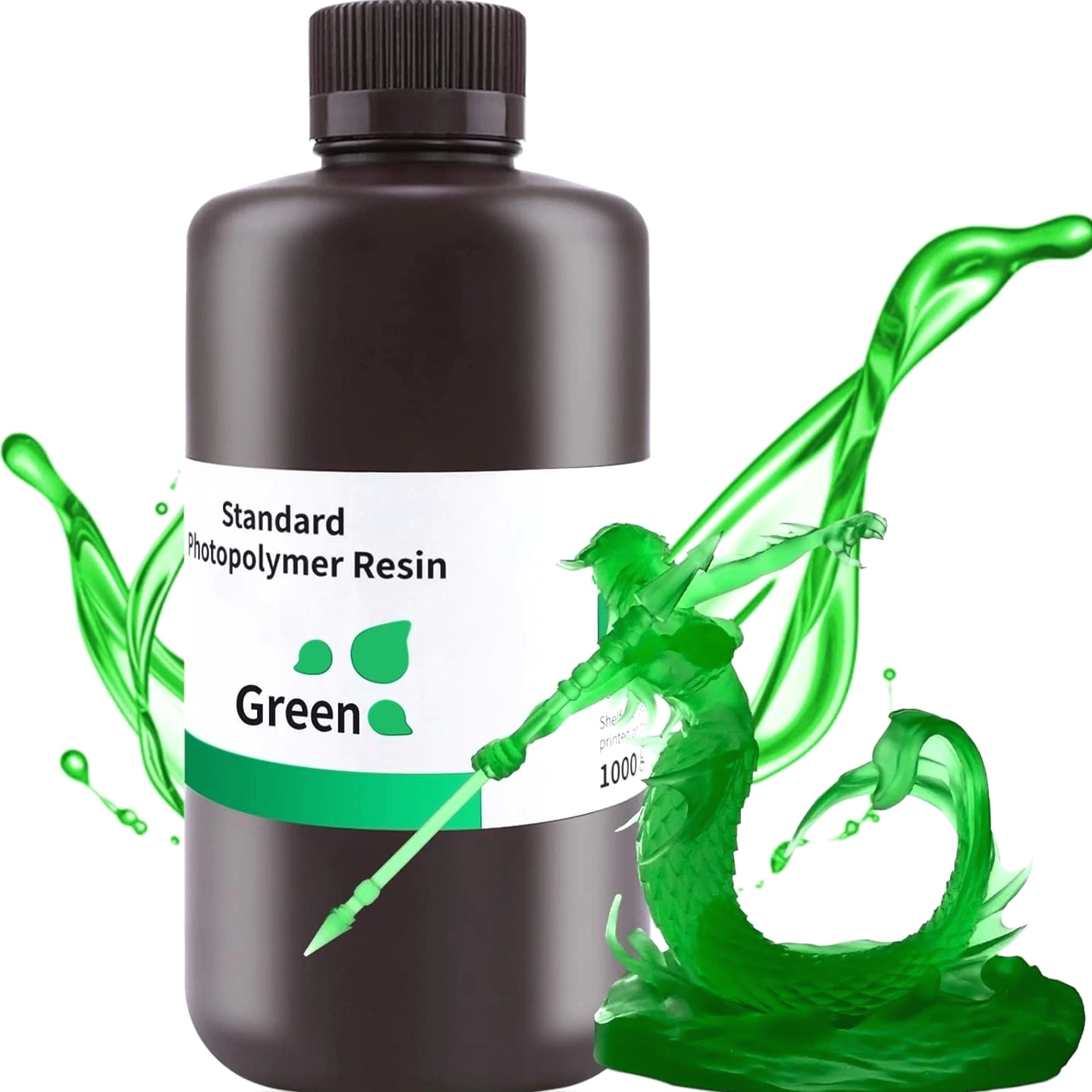 ELEGOO 3D Printer Resin 1000g - Fast Curing, Non-Toxic Clear Green Features: High Precision & Low Shrinkage: Crafted to minimize volume shrinkage during the photocuring process, ensuring that your printed models possess impeccable precision and a flawless smooth finish. Quick Curing & Excellent Fluidity: This remarkable resin boasts high fluidity and low viscosity, enhancing the curing speed without compromising quality. Elevate your 3D printing experience with efficient results. Lower Odor & Quality Materials: Designed specifically for 3D printing, this resin reduces odors with a remarkable formula free of VOCs and irritating gases, optimizing the user experience and making printing a pleasure. High Compatibility: The ELEGOO standard resin is compatible with most DLP/LCD 3D printers, excelling particularly with ELEGOO LCD 3D Printers such as Saturn 3, Saturn 3 Ultra, Mars 4, and more. Pure and Vivid Colors: Engineered for stability, this resin ensures that it does not delaminate or separate over time, resulting in pure, stunning, and long-lasting printed works. Benefits: Achieve high-quality prints with precision craftsmanship. Experience swift curing times for efficient printing sessions. Enjoy a more pleasant printing environment with lower odors. Seamlessly compatible with a variety of popular 3D printers. Ensure vibrant colors and durability in your printed creations. Why choose ELEGOO 3D Printer Resin? Immerse yourself in the world of superior 3D printing with ELEGOO 3D Printer Resin. Engineered for professionals and enthusiasts alike, this resin combines high precision, quick curing, and low odor to elevate your creative results. With remarkable fluidity and stunning color quality, your printed models will not only look amazing but will also endure the test of time.