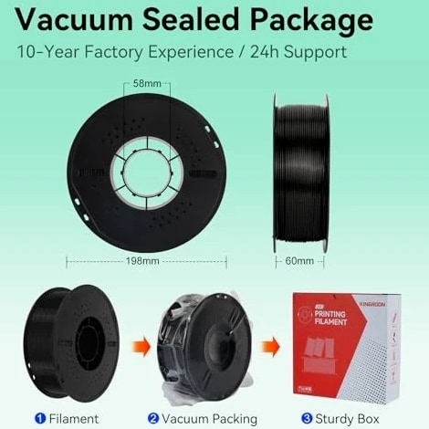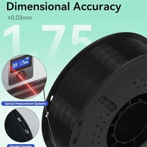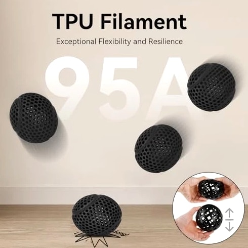 1-5 Days Fast Delivery Black TPU Filament 1.75mm, 95A Flexible TPU 3D Printer Filament, Clog-Free 1kg Spool (2.2lbs), +/- 0.03mm Accuracy, Black Product Description HIGH FLEXIBILITY, SUPERIOR IMPACT RESISTANCE: Say Goodbye to the brittle breaks of traditional PLA! Our 95A High-Flexibility TPU Filament is engineered to absorb shock and bend effortlessly. A tight diameter tolerance of 1.75mm±0.03mm ensures smooth, clog-free extrusion. Your creations will showcase a deep black sheen and possess notable bounce-back resilience, bringing dynamic life to your projects. HIGH PRECISION DIMENSIONAL, NO MORE CLOGS: Worry no more about TPU filament clogging your nozzle or print warping issues! The excellent interlayer adhesion and consistent diameter tolerance (±0.03mm) ensure continuous, smooth extrusion, effectively reducing the risk of filament breakage. The optimized formula performs best within a printing temperature range of 190–210°C and a printing speed of 50 mm/s. PRECISION ENGINEERED, PRINT WITH CONFIDENCE: Every spool of TPU 95A undergoes precision laser diameter gauging before shipping to ensure consistent diameter. It's securely packaged in rigorous vacuum-sealed foil to guard against moisture and dust. We are committed to your satisfaction and provide reliable customer support. Choose and start your reliable, high-quality flexible 3D printing journey!
