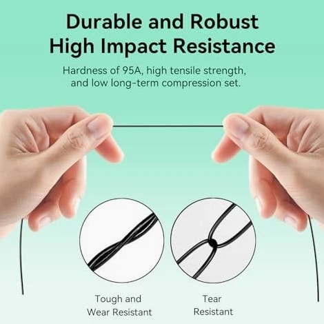 TPU Filament 1.75mm, 95A Flexible TPU 3D Printer, Clog-Free Black
