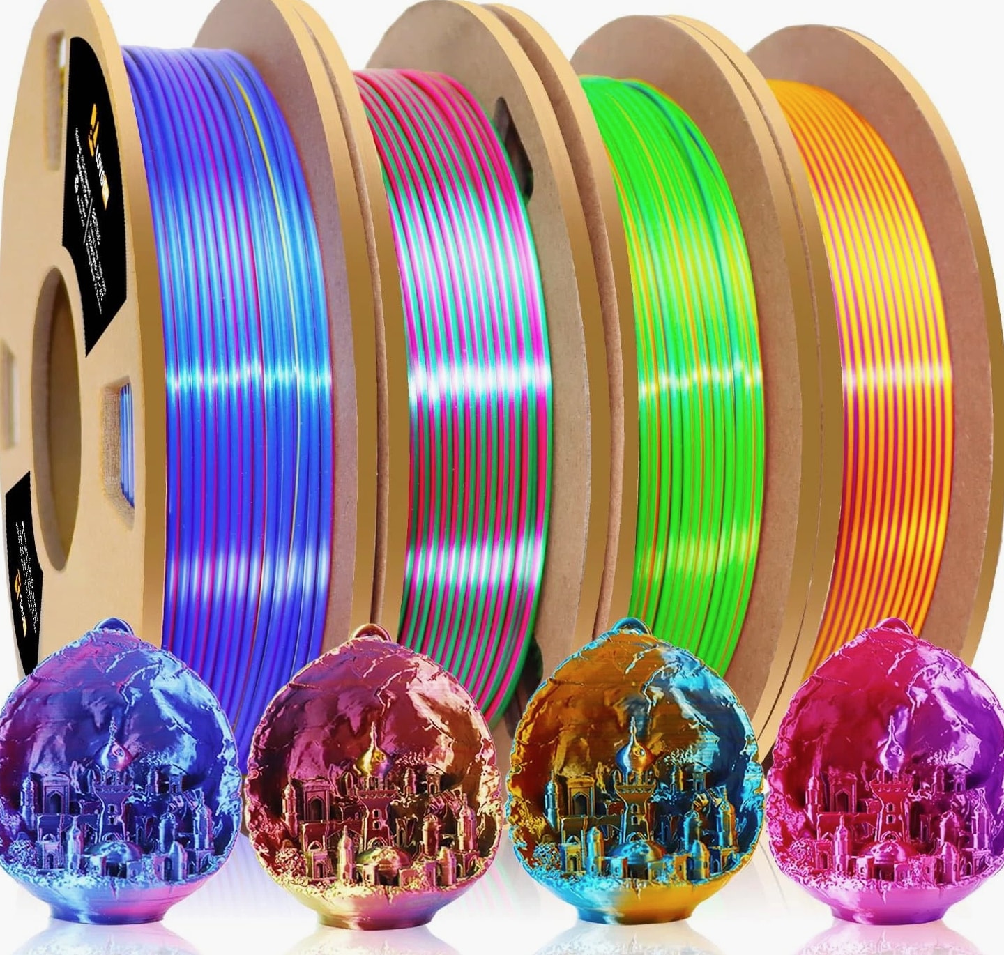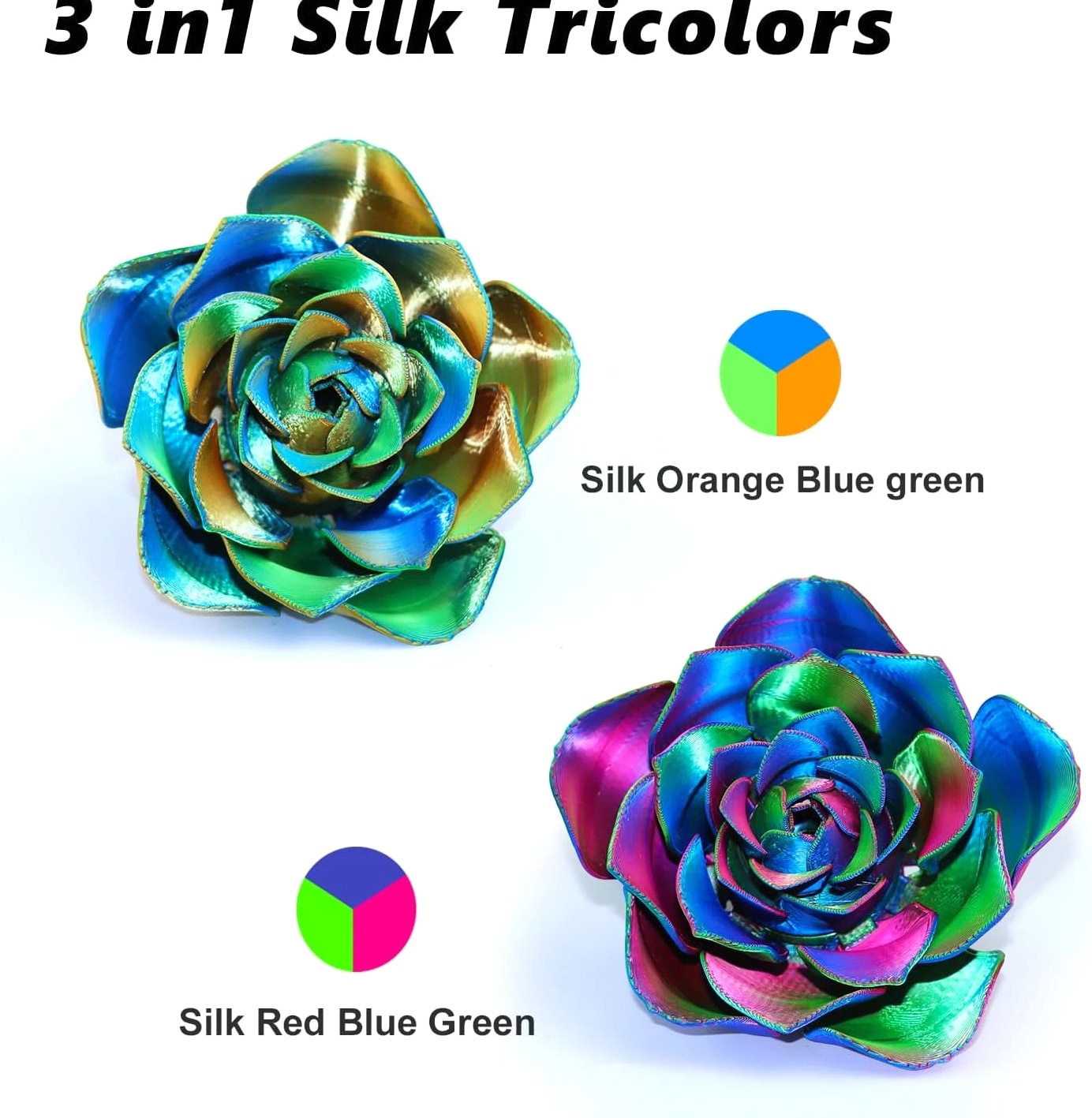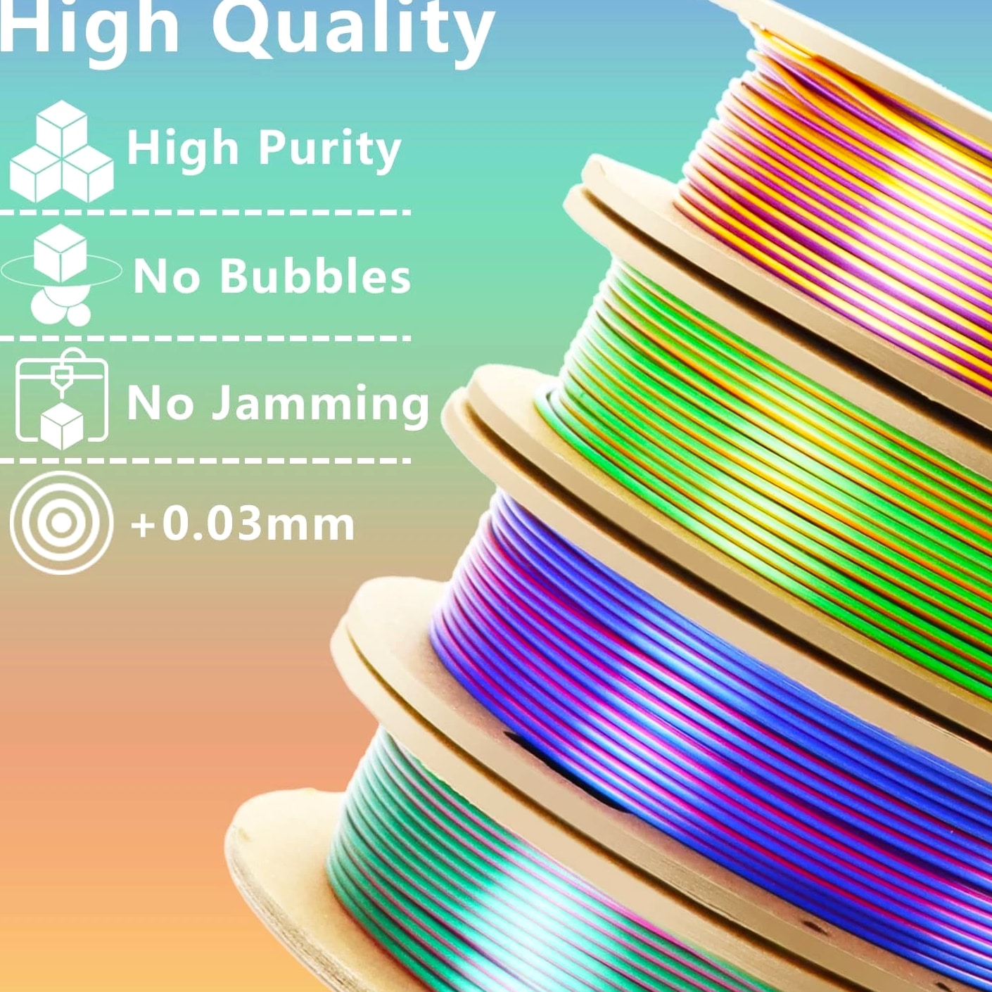 3D PLA Filament 1.75mm Bundle, Tri-Color 3D Printer Filament, Rainbow Silk