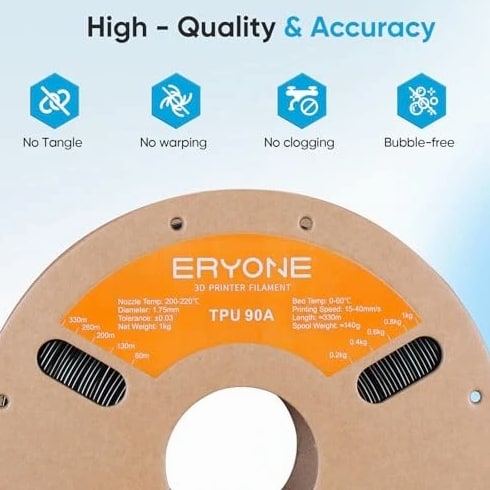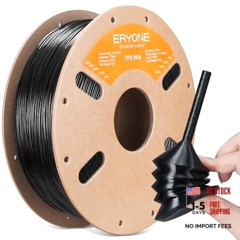 TPU Filament 1.75mm +/-0.03mm, Flexible TPU 90A 3D Printer Filament 1kg Spool (2.2 lbs), Print with Most FDM 3D Printers, Black Product Description 【TPU 3D Printed Filament】: TPU 90A is a flexible 1.75 TPU filament (thermoplastic polyurethane) with a Shore hardness of 90A. It is softer than 95A and has excellent softness, resilience, and toughness. 【Strong Layer Adhesion】TPU filament is tough with rubber-like consistency that provides excellent layer adhesion, ensuring bubble-free, jam-free, and warping-free printing when used correctly. 【Printing Feel and Effect】: We have improved the performance of TPU filament to make it easy to print, faster than previous TPU, and with excellent adhesion. No clogging, no bubbles, low warping, low rope. Full mechanical winding and QC inspection to ensure the production line is neat, the feeding is smooth, and tangles are reduced. 【Less Tangles, Wide Compatibility】: Full mechanical winding and strict manual inspection ensure that the TPU filament is neat and easy to deliver. Works perfectly with most FDM 3D printers on the market. 【Excellent Impact Resistance】3D printer filament TPU is not only soft and tough, but also has excellent impact resistance, making it ideal for protective cases for mobile phones and other electronic devices. Shipping Details Shipping is FREE to all addresses other than APO/PO boxes in the lower 48 states. All our stock ships from US-based warehouses. Shipped via USPS or UPS (depending on location and package weight). Unless stated otherwise, all orders will ship within 24-72 hours of your payment being processed. Check our feedback to see the great reviews of fast shipping we offer. Returns Seller does not accept returns. Payment We currently accept payment via managed payments only. Once payment is cleared, we will dispatch your shipment within 1-3 business days. Please refer to the Shipping tab for more information regarding delivery