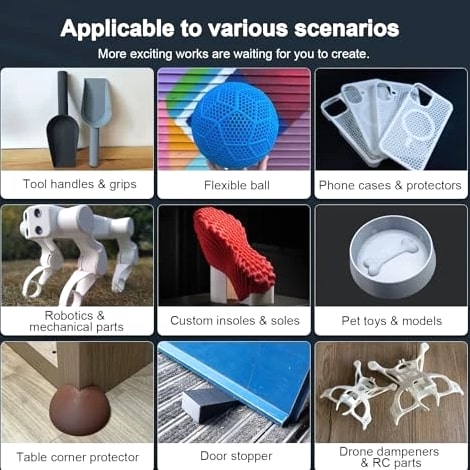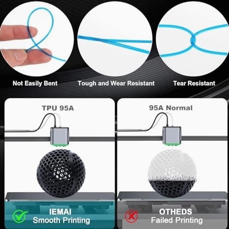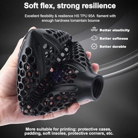 TPU 95A 3D Printer Filament 1.75mm, Flexible & Soft Polyurethane, +/- 0.02mm Dimensional Accuracy, 1KG Spool (2.2lbs), Compatible with Most FDM Printers, White Product Description 【Superior Flexibility & Industrial-Grade Toughness】 Engineered with a Shore Hardness of 95A, TPU strikes the perfect balance between soft elasticity and structural strength. It delivers exceptional impact resistance and high tear strength, making it the ideal choice for functional parts that require repeated bending or compression, such as gaskets, seals, protective cases, and vibration dampers. 【Ultra-Precise ±0.02mm Tolerance for High-Speed Feeding】 Experience a new level of reliability with our advanced CCD diameter measuring system. While standard filaments offer ±0.05mm, this maintains a strict ±0.02mm dimensional accuracy. This superior consistency is critical for high-speed extrusion, ensuring smooth, stable flow and preventing slipping or jamming, even during the rapid retractions typical of modern 3D printers. 【High-Speed Optimized for Bambu Lab & More】 Specifically formulated to reduce friction and improve melt flow, our TPU 95A is perfectly optimized for printers like the Bambu Lab X1, P1, and A1 series. It supports significantly higher printing speeds compared to traditional flexible materials without sacrificing surface quality or layer adhesion, allowing you to complete complex flexible projects in record time. 【Vacuum Sealed & Tangle-Free Precision Winding】 Each spool undergoes a thorough 24-hour drying process before being vacuum-sealed with high-quality desiccant to ensure a bubble-free and moisture-free printing experience. Our full-mechanical winding process ensures a 100% tangle-free spool, which is essential for the high-torque, high-speed feeding systems of Bambu Lab and other professional-grade machines. 【Universal Compatibility & Professional Results】 Designed for versatility, TPU 95A provides a seamless experience