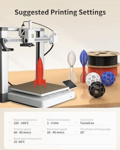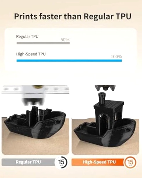 1-5 Days Fast Delivery TPU 3D Printer Filament 1.75mm, High Speed 95A TPU Black Filament, 1KG Flexible 3D Filament for Fast Printing, Dimensional Accuracy +/- 0.02mm, Suitable for Most FFF 3D Printers (Black) Product Description 【High-Speed TPU 95A Filament – 3x Faster Printing】 Experience ultra-fast printing with High-Speed TPU 95A filament, designed to print up to 3 times faster than standard TPU. Perfect for projects requiring both speed and precision, this flexible 3D printer filament delivers exceptional performance without compromising quality. 【Flexible & Durable – Ideal for Impact-Resistant Parts】 Engineered with Shore 95A hardness, this TPU filament offers the perfect balance of softness and toughness. It's ideal for printing durable, flexible parts like phone cases, drone bumpers, and wearable gear that demand high elasticity and impact resistance. 【Superior Layer Adhesion & Smooth Surface Finish】 Enjoy flawless prints with excellent layer bonding and a smooth finish. Our TPU 95A filament ensures strong, reliable results even at high speeds, making it a top choice for both functional prototypes and end-use products. 【Clog-Free & Bubble-Free Printing】 Each spool is vacuum-sealed after 24 hours of drying to prevent moisture absorption. This high-speed TPU is engineered with a clog-free formula, ensuring smooth extrusion and consistent performance with minimal maintenance. 【Wide Compatibility & Vivid Color Options】 Compatible with most 1.75mm FDM 3D printers, including high-speed models like Bambu Lab, Prusa, and Creality. Choose from a variety of vibrant colors to bring your creative ideas to life—perfect for both beginners and professionals.