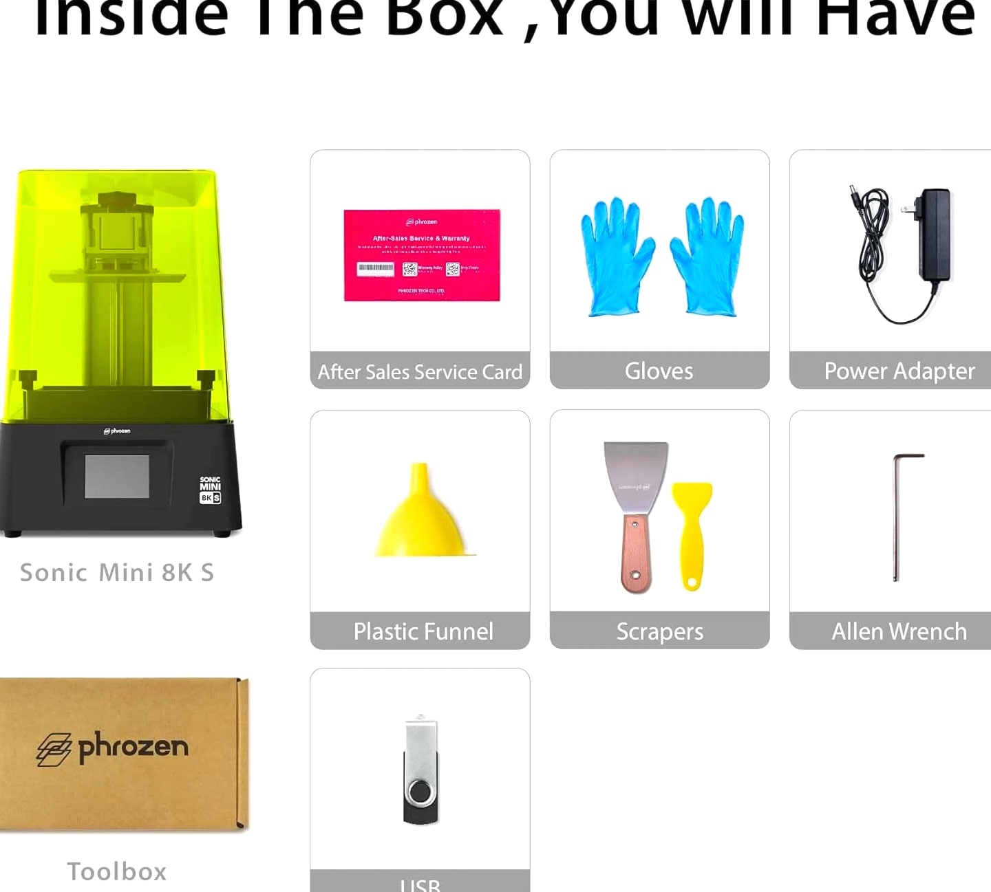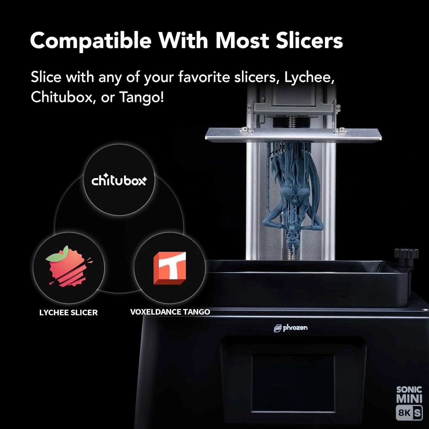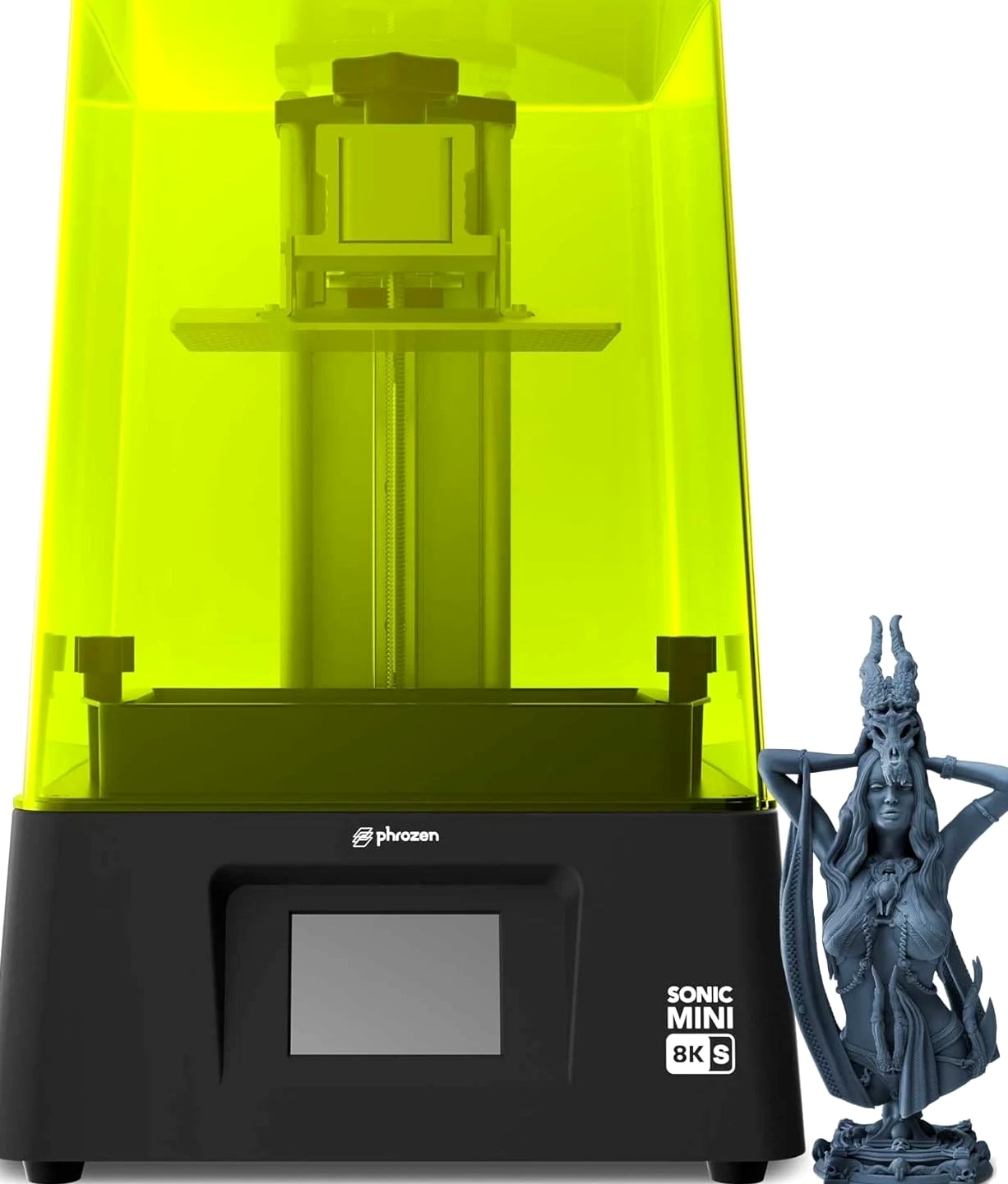 Phrozen Sonic Mini 8K S LCD Resin 3D Printer, 7.1" Monochrome LCD, Tabletop 3D Resin Printer with 22µm XY Resolution, 6.5 * 2.8 * 6.7 Inch Printing Volume for Models, Miniatures and Action Figures Beginner Friendly - With an attractive value for money and user-friendly specifications, the Phrozen Sonic Mini 8K is the ideal 3D printer for beginners. Art with Precision - Immerse yourself in a world of detail with an XY resolution of 22 microns and the 8K mono LCD where every nuance of your works comes to life. Compact and Powerful - The resin printer offers sufficient space to let your creativity run wild with a printing volume of 16.5 x 7.2 x 17 cm and a load capacity of up to 22 lbs. Wide Compatibility - The support for open source software and your favorite slicers such as Lychee, Chitubox or Tango assures you the freedom to realize your ideas without restrictions. Sophisticated Technology - Thanks to precise Z-axis calibration, the printer ensures even and accurate printing and takes your craft to a new level.