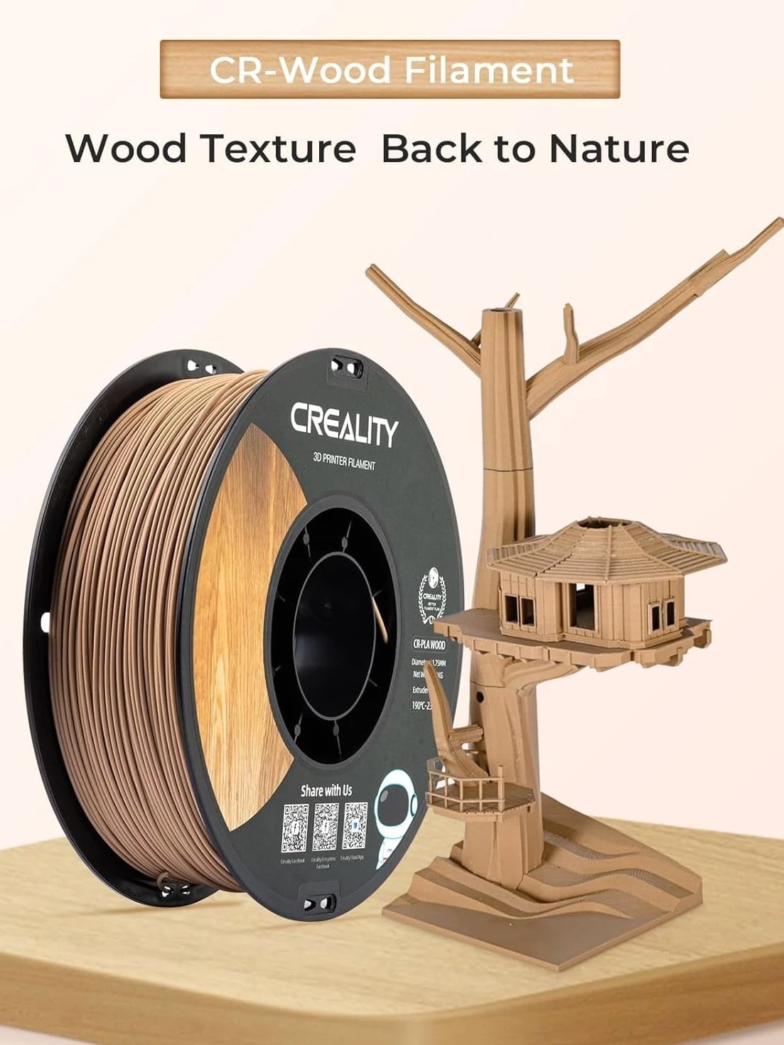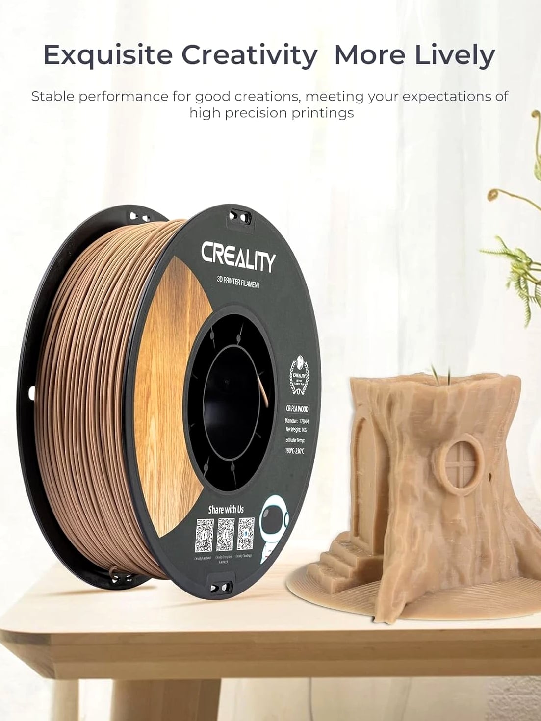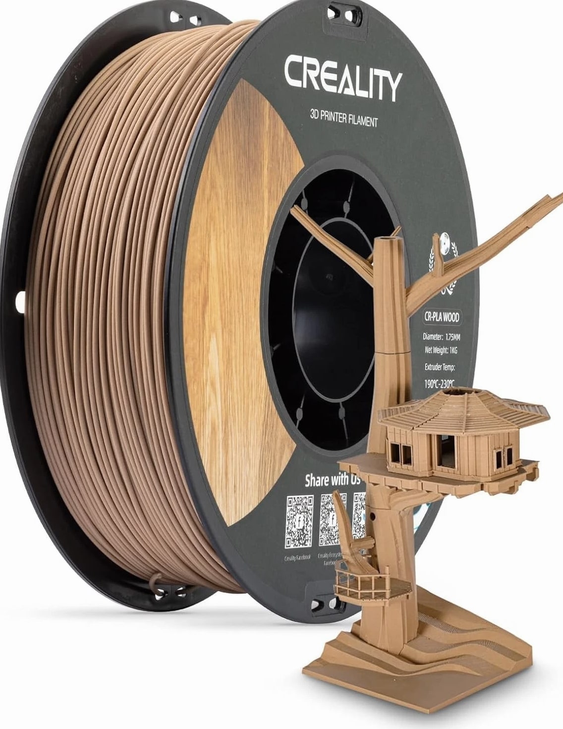 About this item CR-Wood Filament: Exquisite Wood Texture for Unique Properties. Premium wood color and clear texture make people feel as though being back to nature Neat Winding, Smooth Feeding: Reduce filament waste, save time and improve printing success rate Green Materials: Based on PLA as the main material, it continues the advantages of easy molding, no warping and low shrinkage Stable Printing, Low Shrinkage: Stable performance for good creations, meeting your expectations of high precision printings Note: Please place this product in a dry and ventilated environment, not in high temperature, sunny or humid conditions Material: Polylactic Acid Color: Wood Item Weight: 1 Kilograms Item Diameter: 1.75 Millimeters