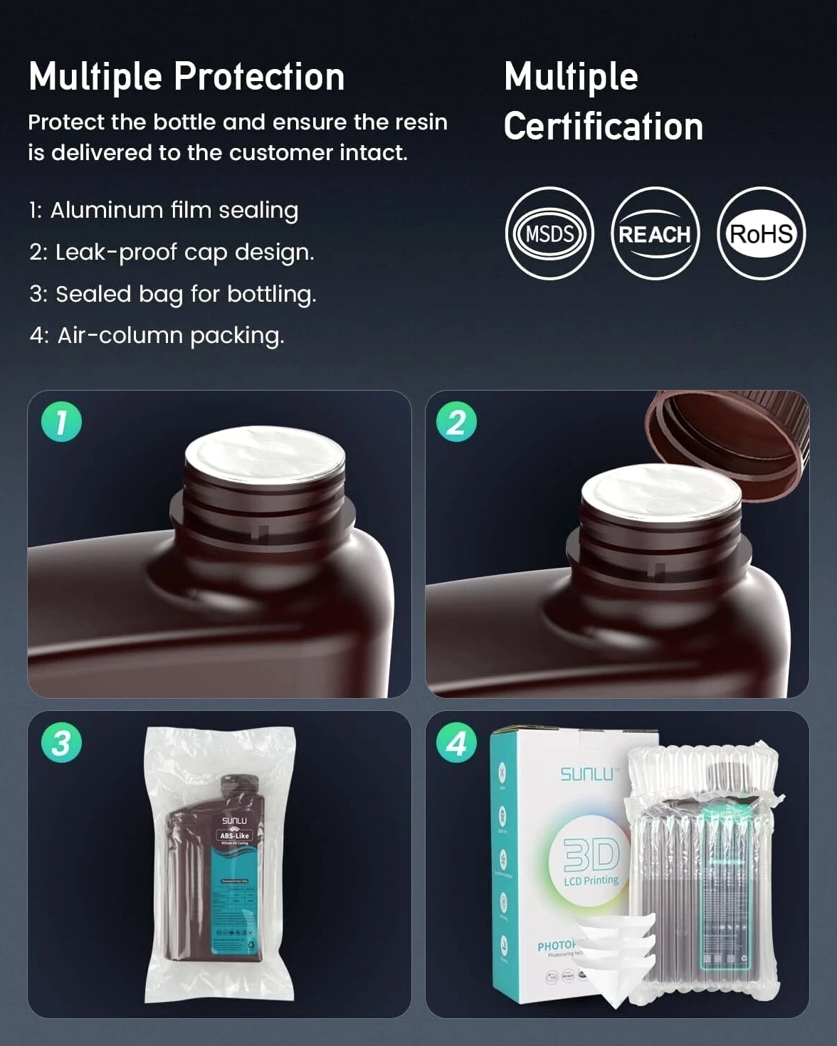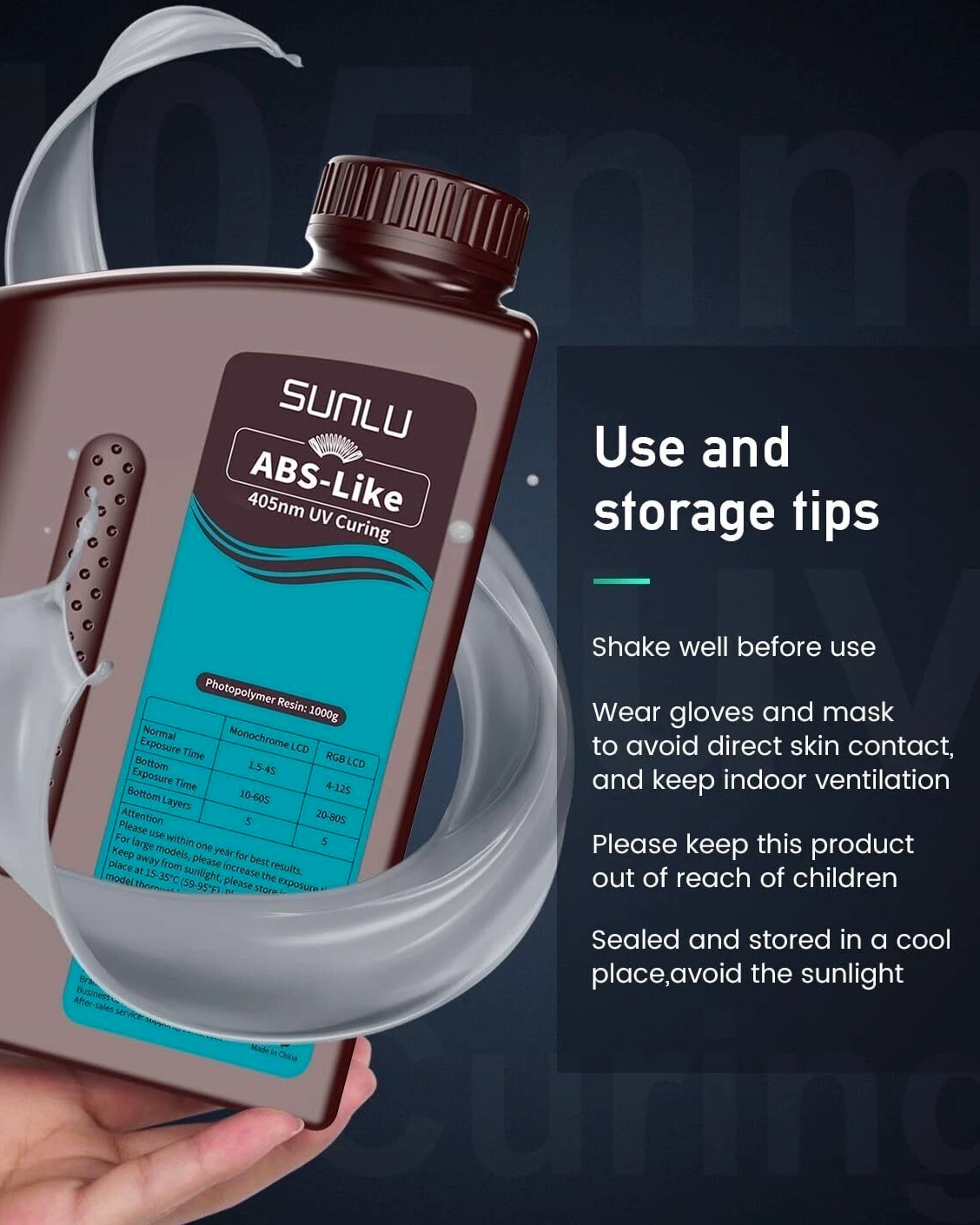 ①【Less Brittle & More Strength】- Compared to other types of 3D Printer Resin, SUNLU ABS-Like Photopolymer Resin has superior toughness, non-brittle material, and excellent abrasion resistance. If you need to print miniature or tiny objects, SUNLU ABS-Like 3D Printer Resin is your first choice. ②【Fast Curing and Low Odor】- SUNLU 405nm rapid UV resin has excellent fluidity for fast curing. 3D models printed by SUNLU ABS-Like resin demonstrate good stability in humid and corrosive environments after curing. In addition, SUNLU ABS-Like resin has minimal odor and does not cause any harm to humans. ③【Low Shrinkage & High Precision】- During the development process, engineers worked to reduce volume shrinkage during curing of the SUNLU ABS-Like Photopolymer Resin.
