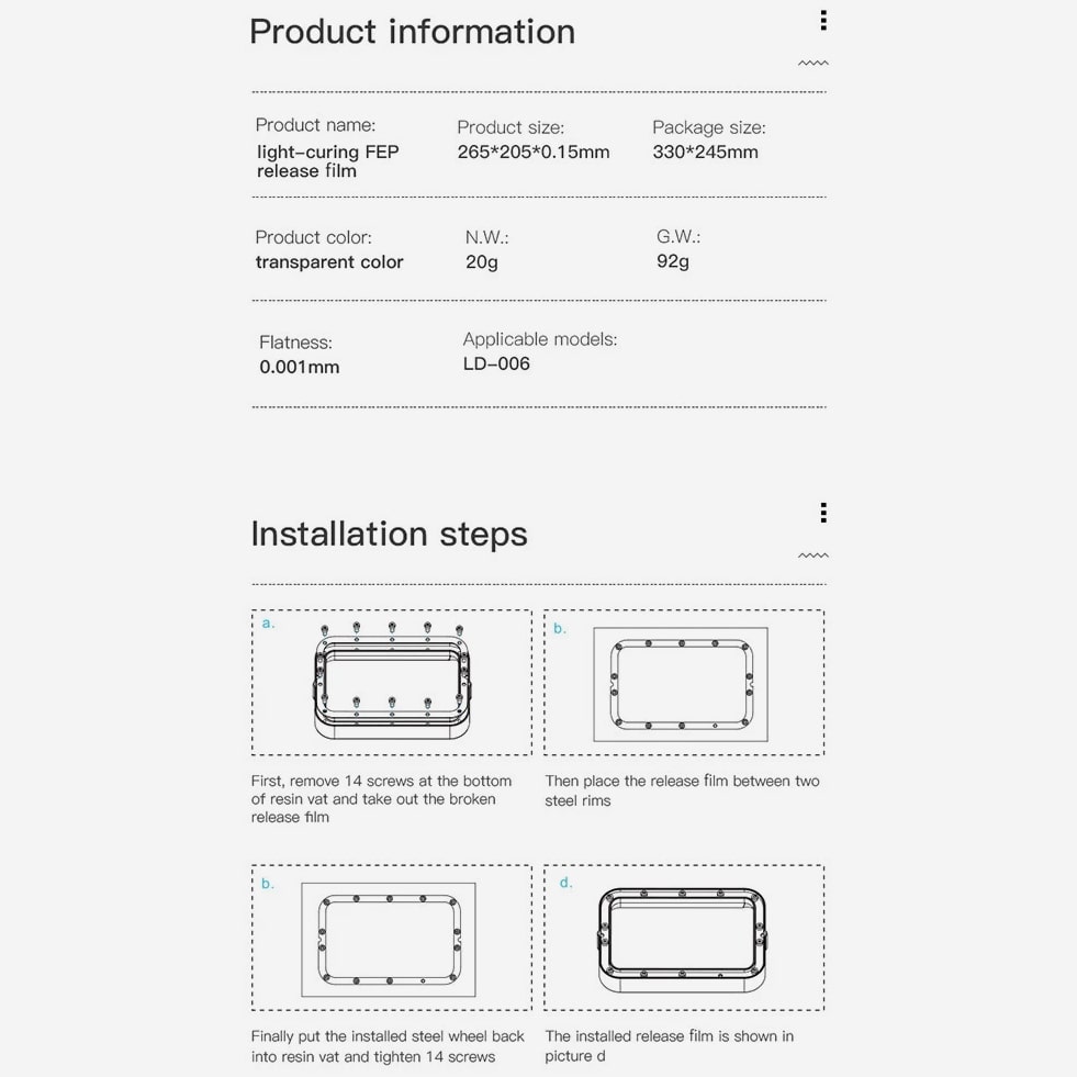 LD-006 FEP Film 266*190*0.15MM for LD-006 UV Resin 3D Printer Parts