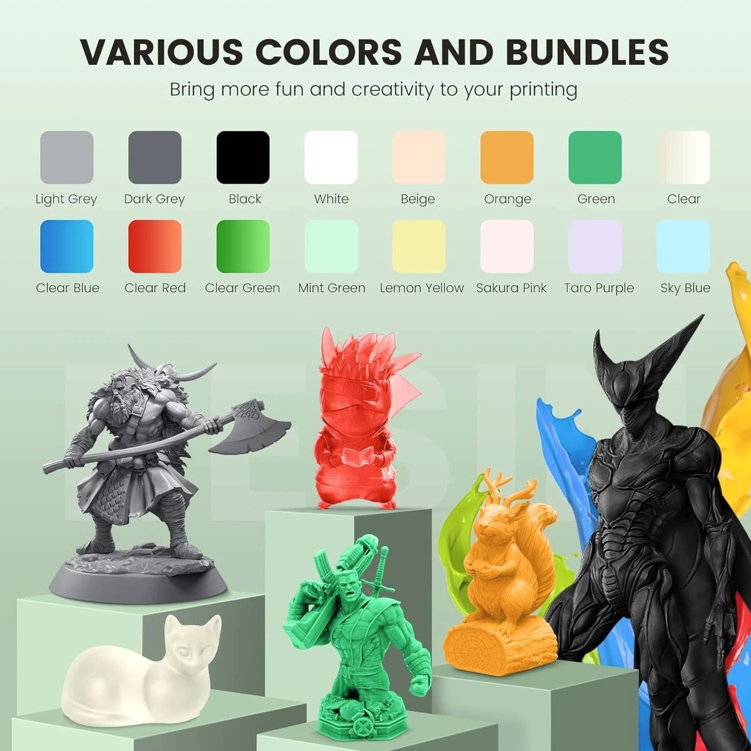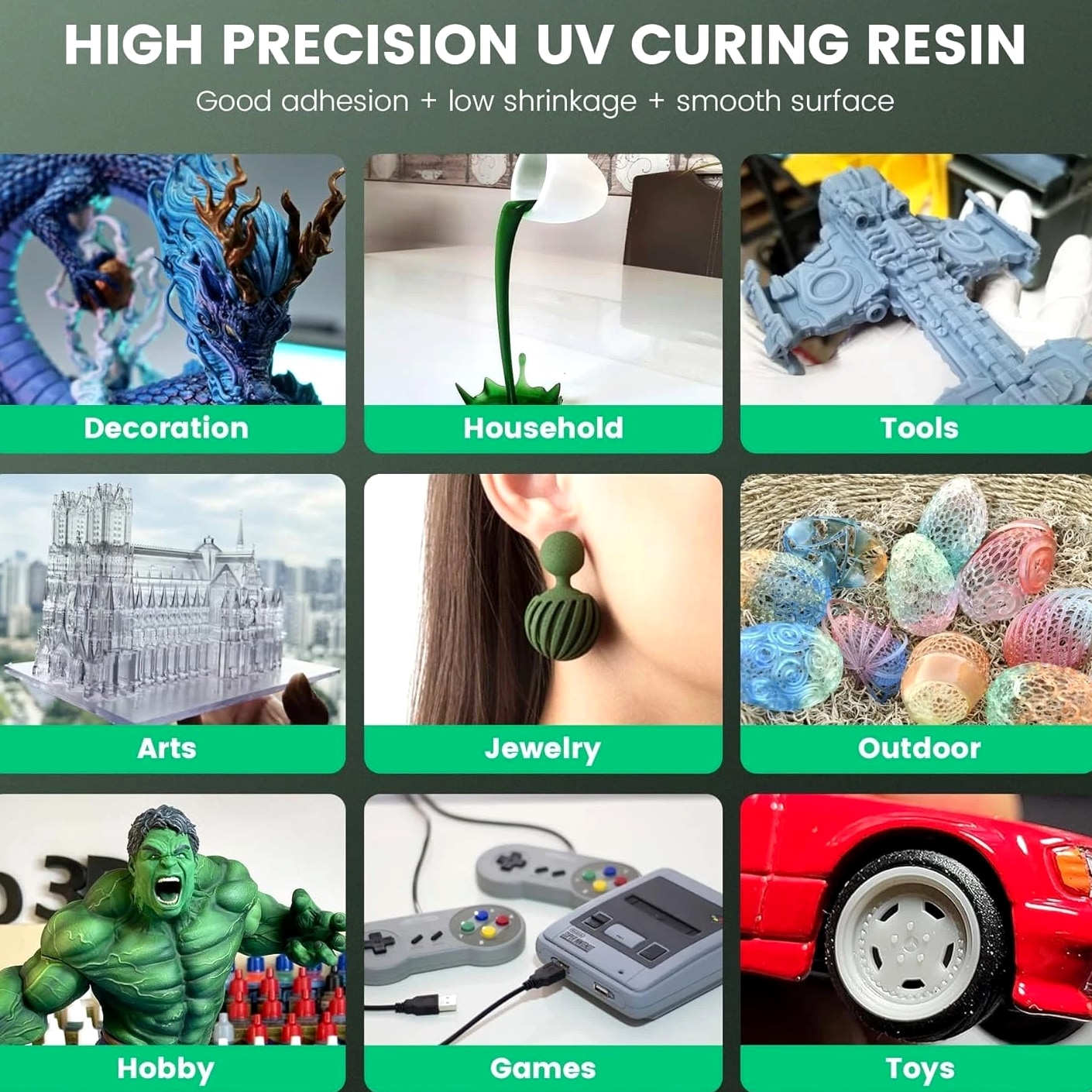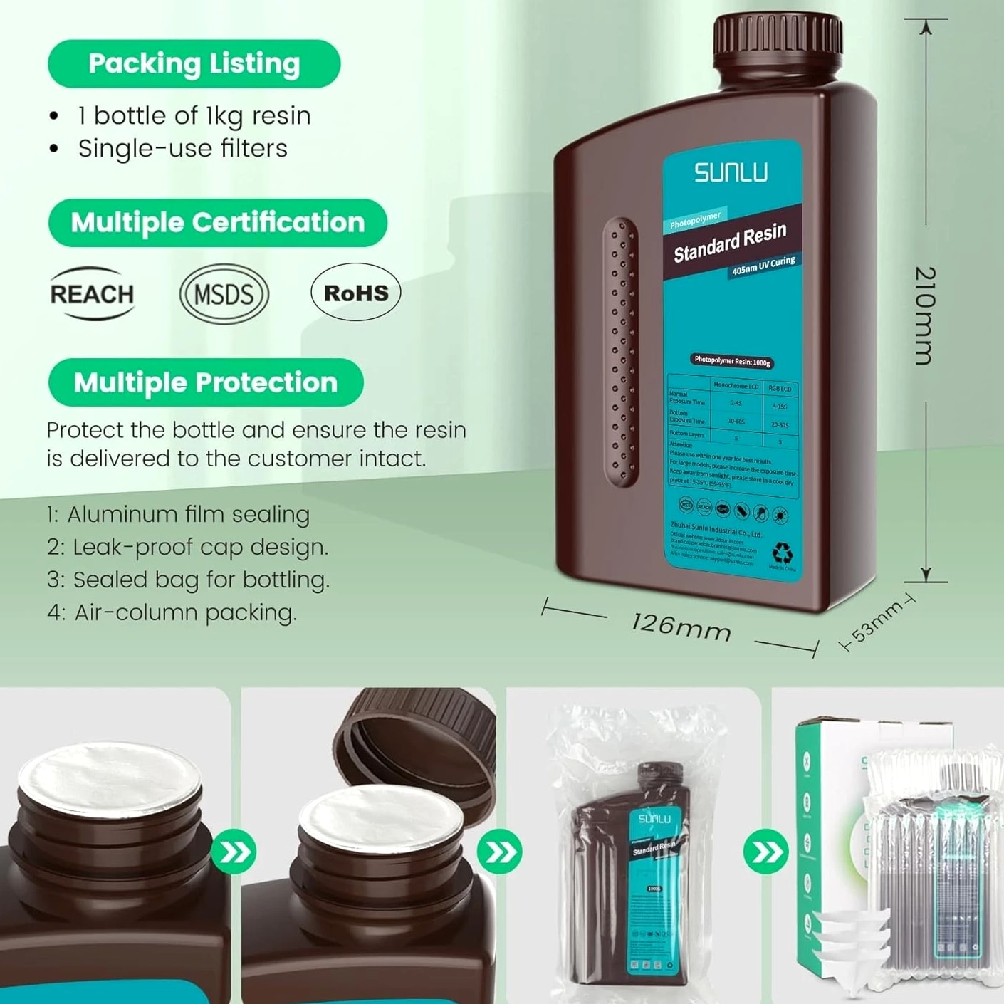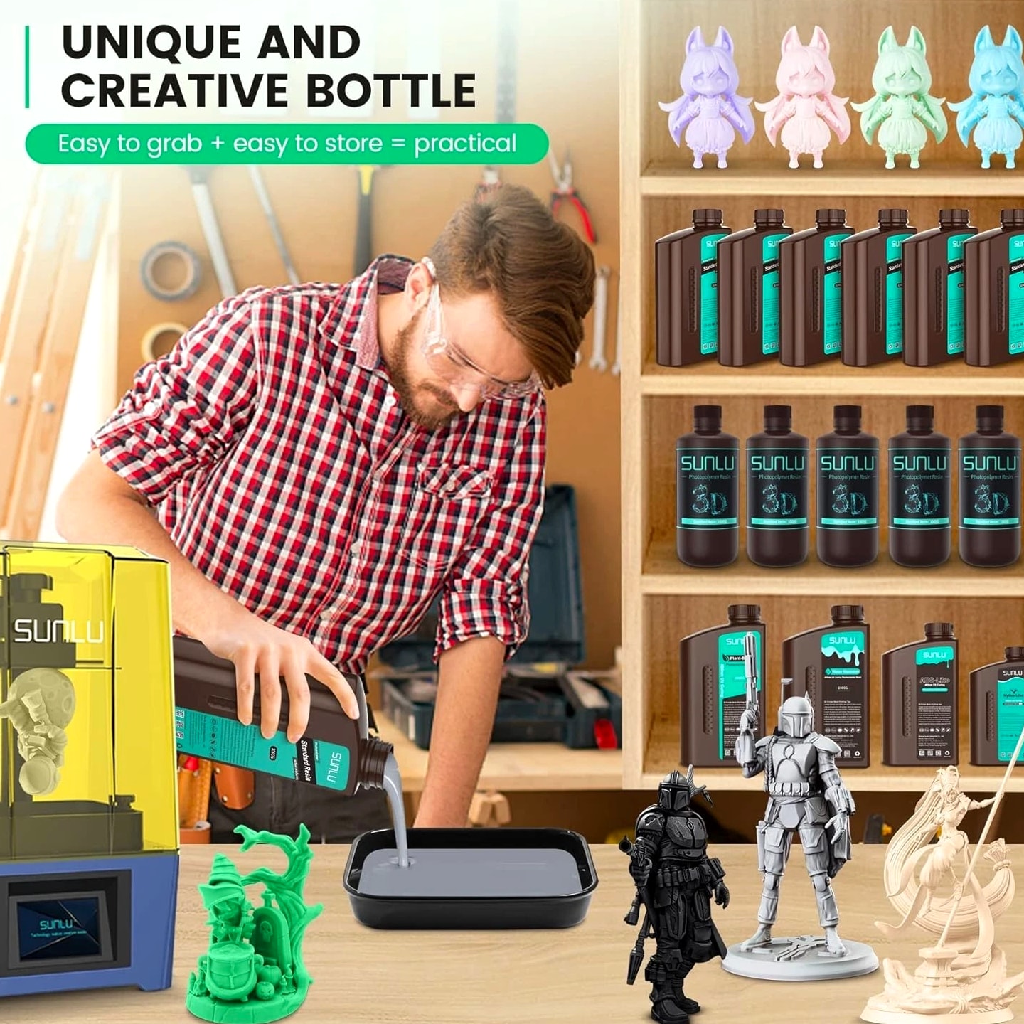 Clear Blue 3D Printer Resin - 1kg Fast Curing, High Precision, Minimal Odor Why Choose Our 3D Printer Resin? Elevate your 3D printing experience with our Clear Blue 3D Printer Resin, meticulously formulated for both novices and seasoned professionals. This resin combines ease of use, high performance, and a minimal environmental footprint, making it the ideal choice for all your artistic creations. Key Features: Easy to Use: Strong fluidity ensures compatibility with various printers and speeds, perfect for beginners. Low Shrinkage: Achieves accurate size and shape during the curing process, preserving the integrity of your designs. Good Stability: Withstands weak acids and greases, ensuring durability and resisting deformation. Easy to Post-process: The smooth, hard surface allows for easy coloring after printing, ideal for handcrafted projects. High Cost-Effectiveness: Exceptional performance and durability at an appealing price, perfect for budget-conscious creators. Easy to Clean: Clean effortlessly with isopropyl alcohol or ethanol, guaranteeing a refined finish. Minimal Odor: Enjoy a light scent during printing, striking a balance between functionality and comfort. High Compatibility: Works seamlessly with 99% of printers, including LCD, DLP, and SLA models, across a 365-405nm wavelength spectrum. Multiple Color Options: Choose from a wide array of vibrant colors, including solids, clear tones, and delightful macaron shades. Leak-Proof Bottle Design: Featuring a patented leak-proof cap, our packaging ensures delivery in pristine condition, reducing mess and waste. Transform Your Printing Projects With our Clear Blue 3D Printer Resin, unleash your creativity, produce intricate designs with ease, and enjoy a user-friendly experience tailored for every maker. Whether crafting unique creations or fulfilling professional projects, our resin stands as your steadfast companion.