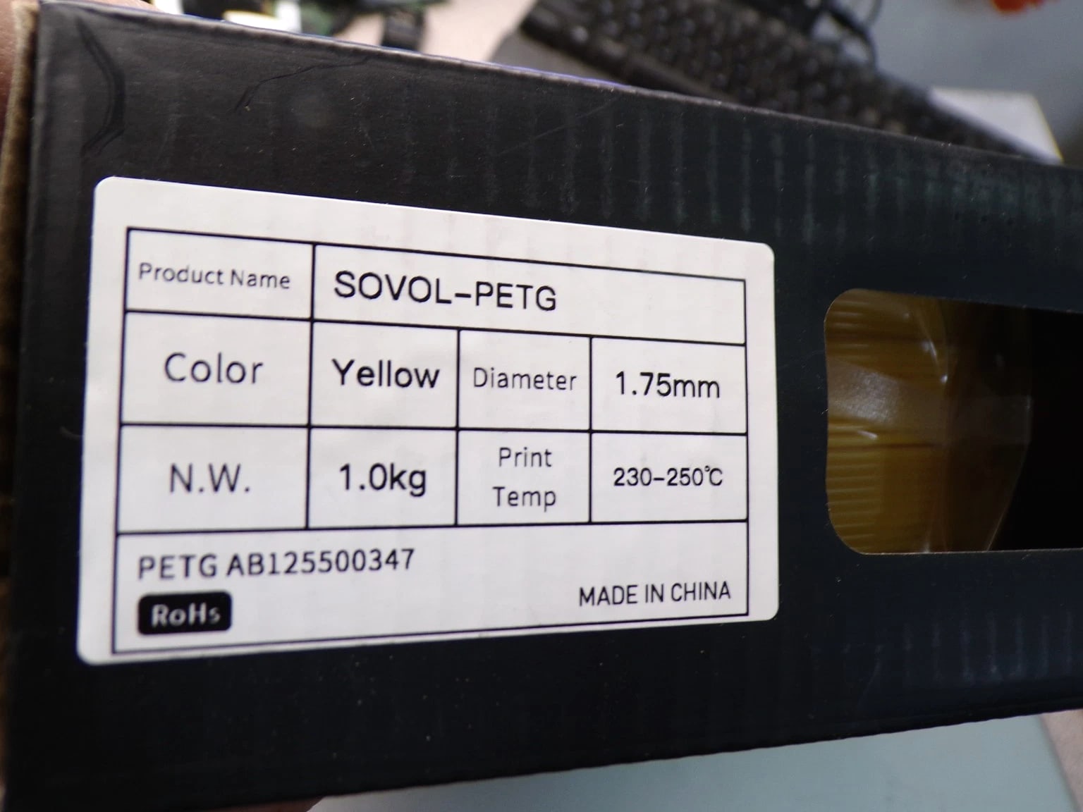 Box of 10 - Sovol PETG 3D Filament 1KG 1.75mm Yellow #2888