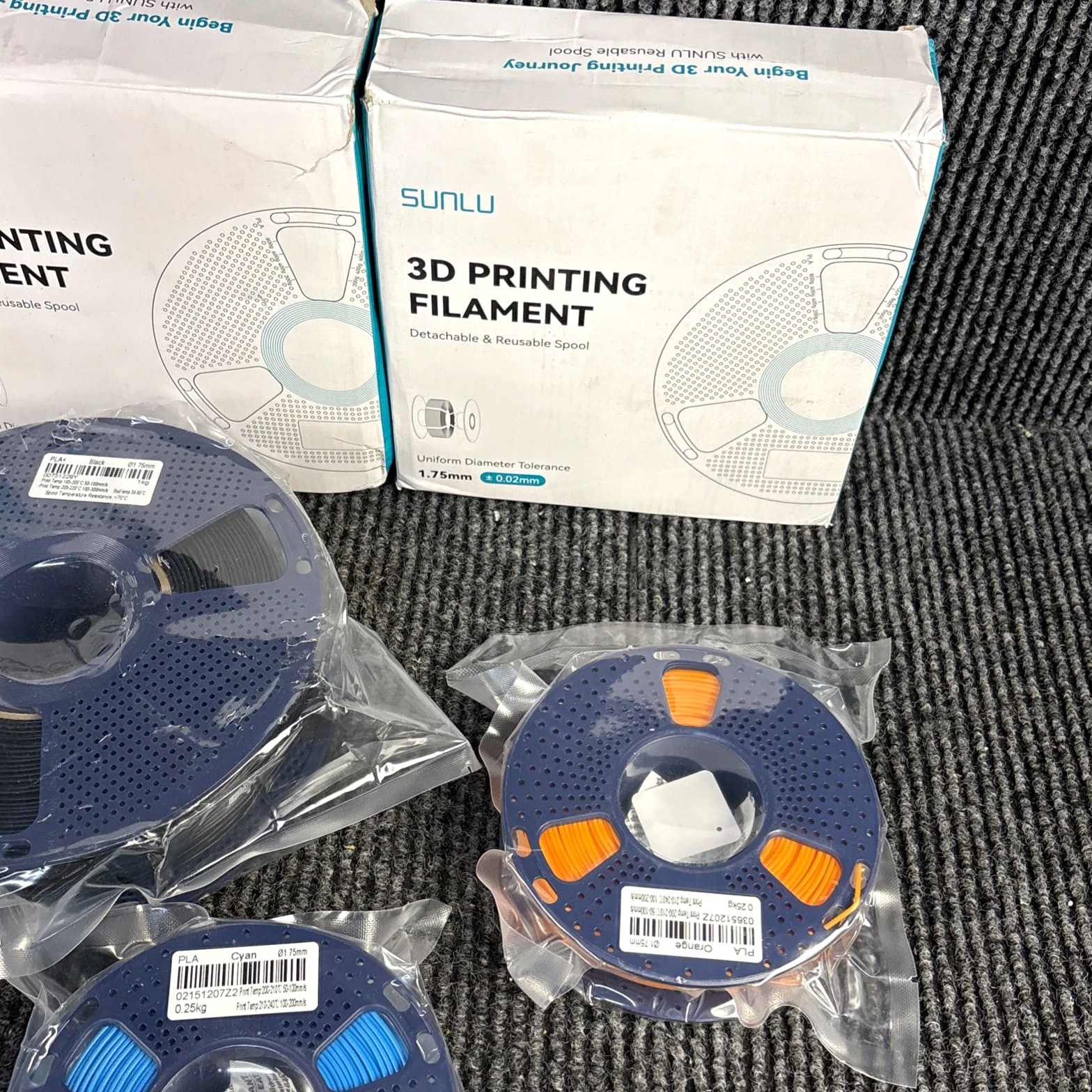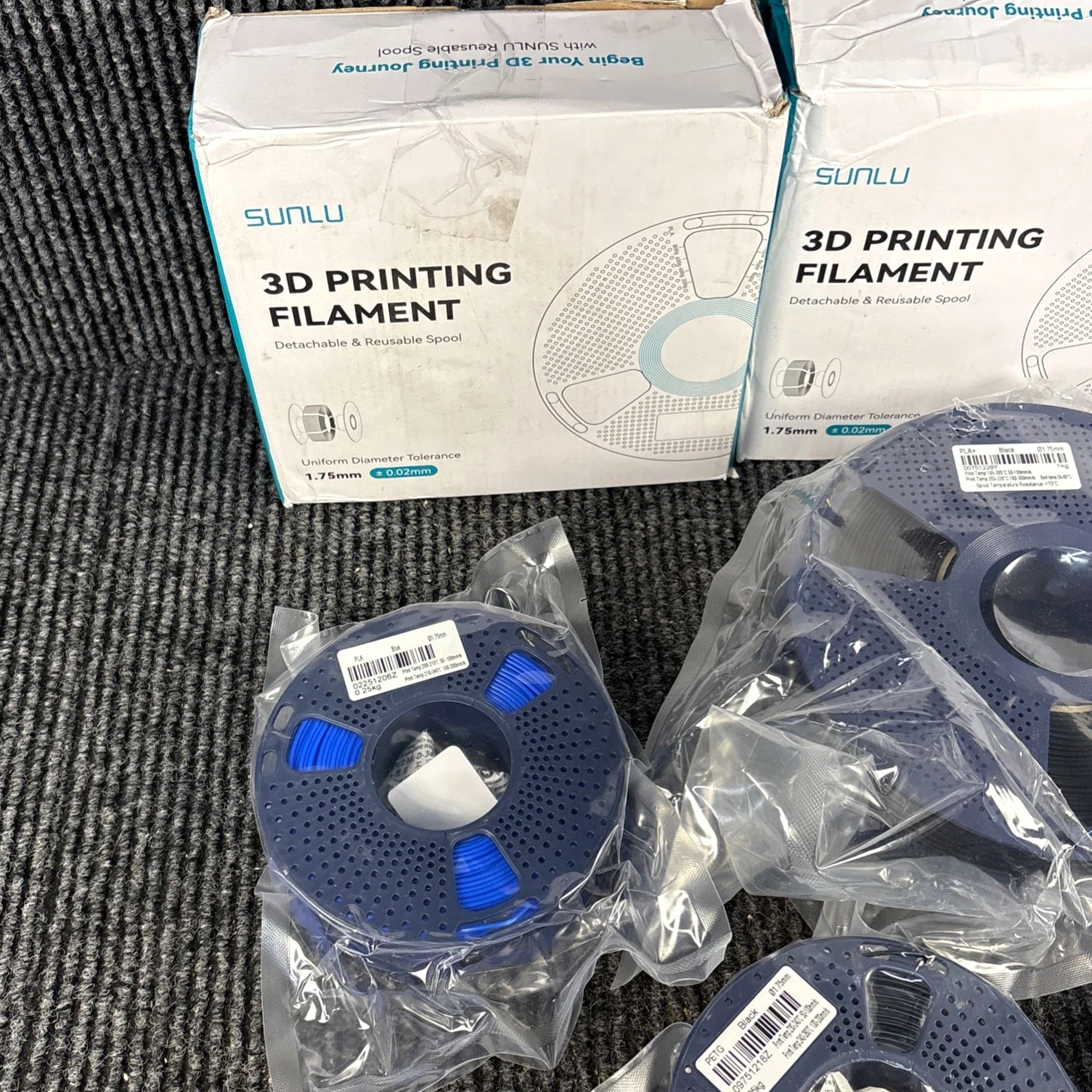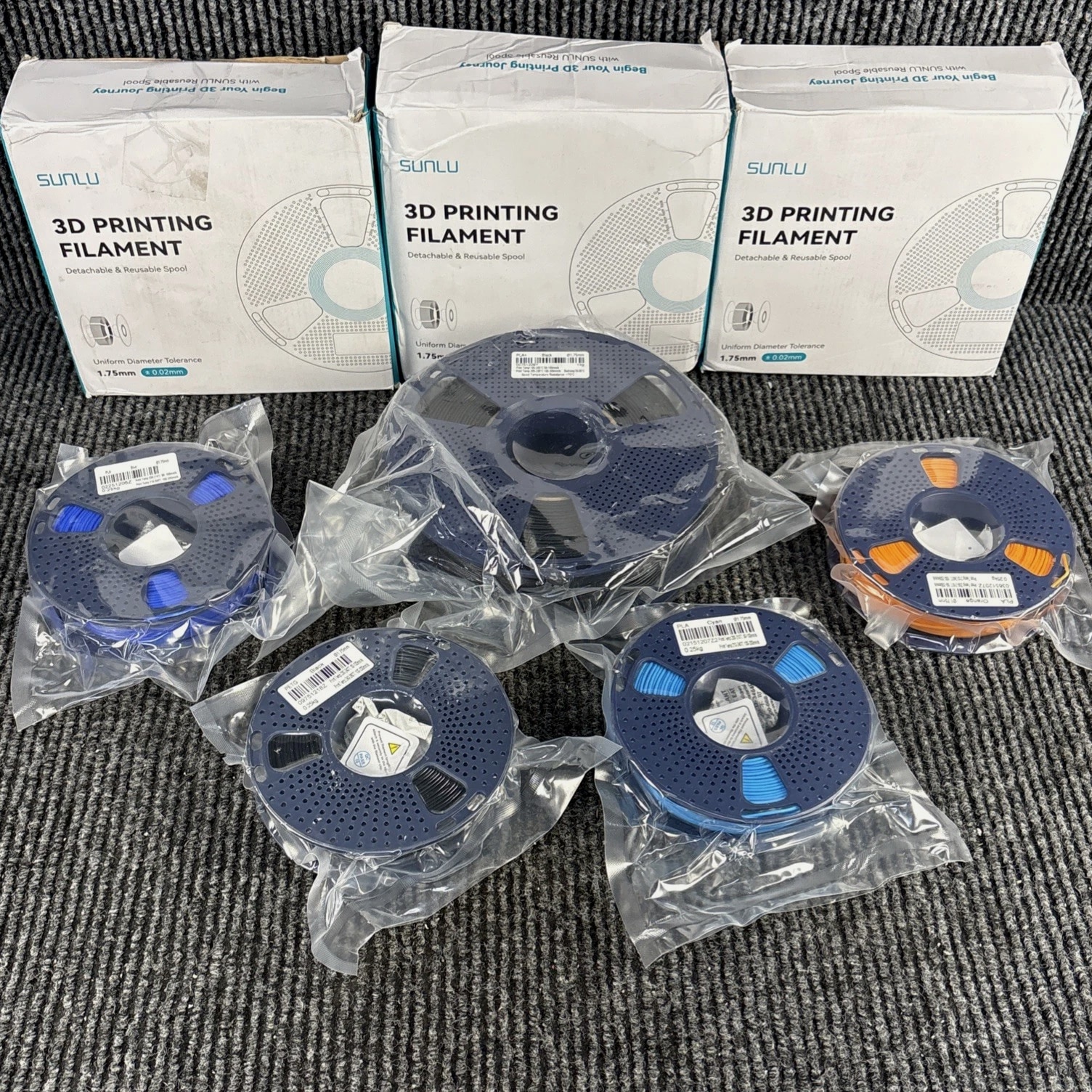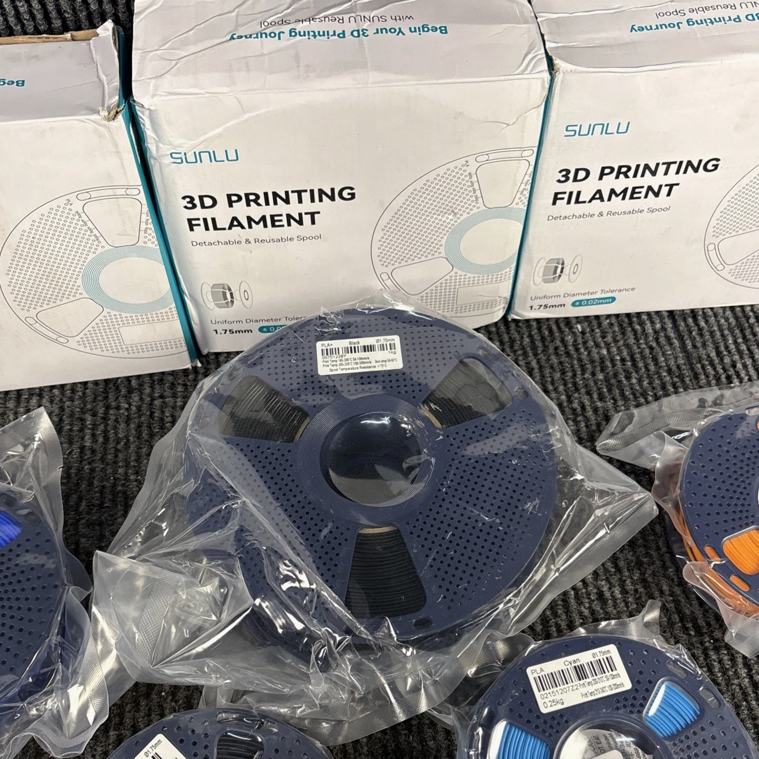 Lot of 8 SUNLU 3D Filament Refills - With reusable spools. 1kg & 0.25kg Mixed Lot