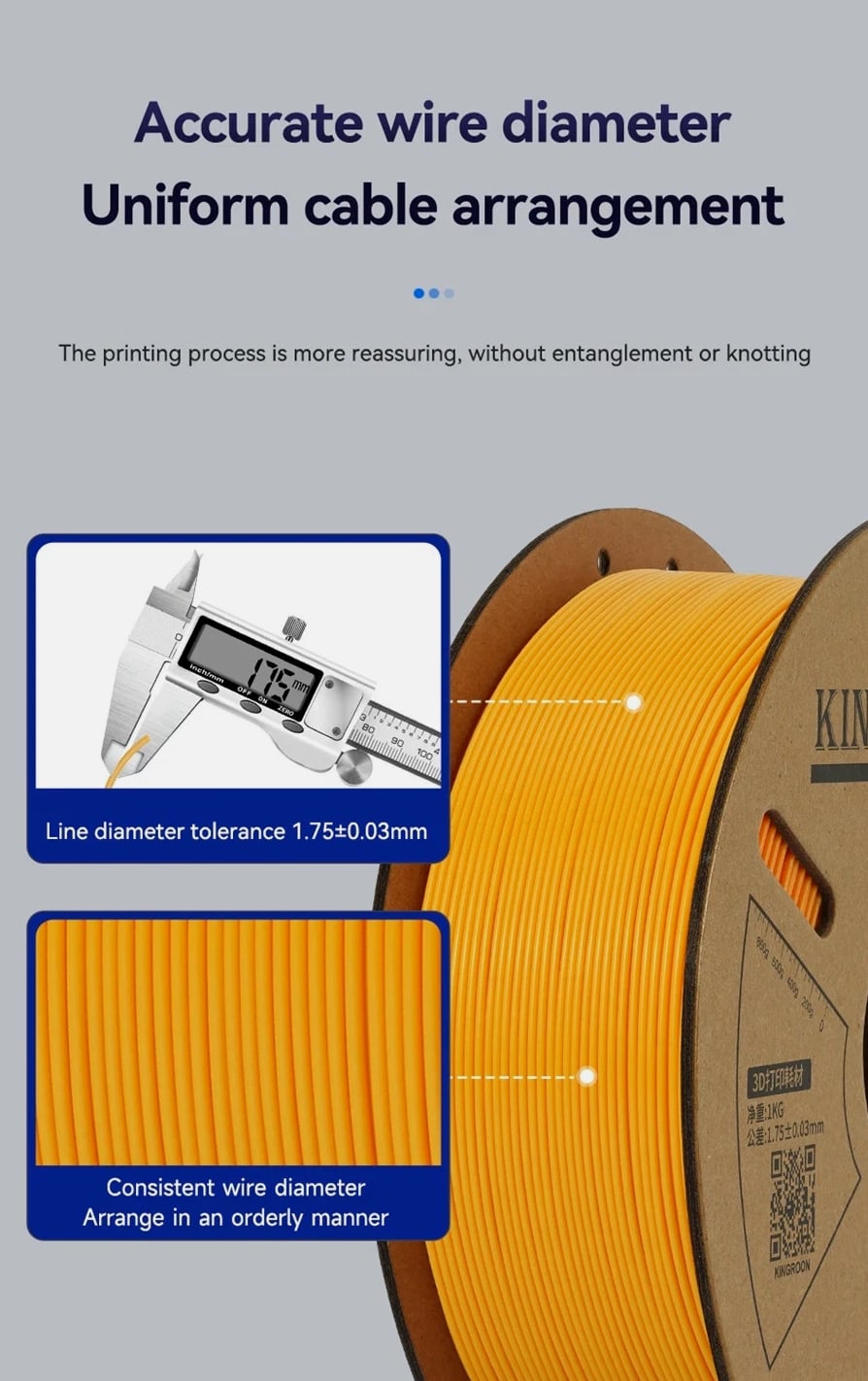 Standard 1KG PLA PETG TPU ABS Filament 1.75mm +/- 0.03mm No Bubbles 3D Printer
