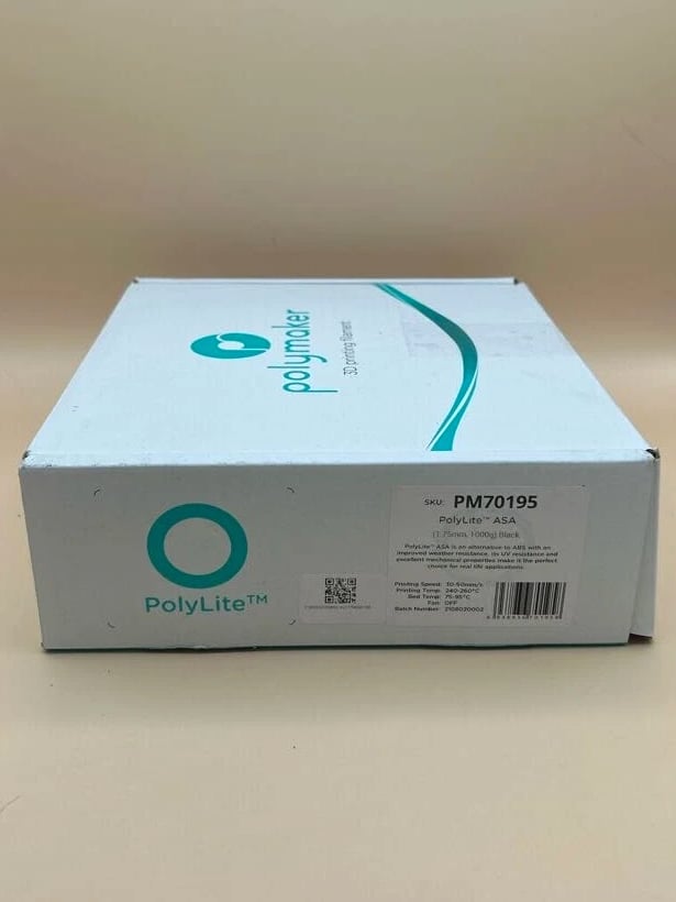 Polymaker Polylite ABS 3D Printer Filament Black 1.75mm, 1000g ⛅ Weather Resistant: Polymaker PolyLite ASA 3D printing filament combines the properties of ABS with added weather resistance. UV-resistant and less susceptible to environmental stress cracking, it's ideal for outdoor applications like RC planes and car accessories. 🌡️ High Heat Resistance & Mechanical Properties: PolyLite ASA filament can withstand temperatures up to 100˚C (212°F) and offers high toughness and impact resistance, making it ideal for functional applications. It shares the same properties as ABS 3D printer filament. ♻️ Cardboard Spool: Now available in upgraded 3.0 packaging, featuring a fully recycled cardboard spool and box. ⚙️ Printing Settings: Nozzle Temperature: 240-260˚C; Bed Temperature: 75-95˚C; Speed: 30-50mm/s. (Adjust as needed per your 3D printer; refer to standard ABS filament settings). For large parts, use an enclosed printer to prevent warping. 🛡️ RISK-FREE & LIFETIME TECHNICAL SUPPORT: We're here to assist you in achieving flawless, beautiful prints. Feel free to reach out anytime you need help! Thank you for looking. Please see our store for hundreds of additional great deals - always with fast shipping.