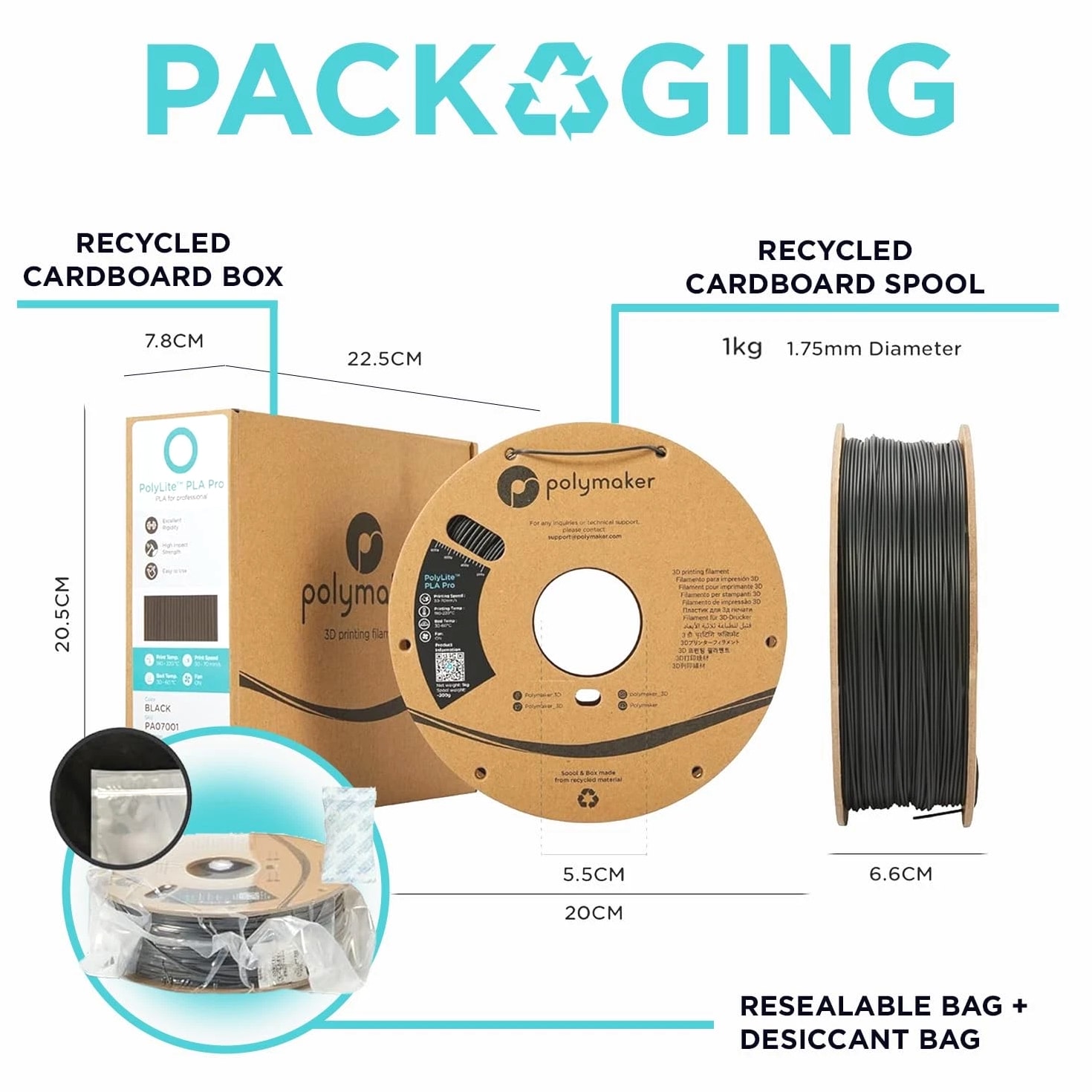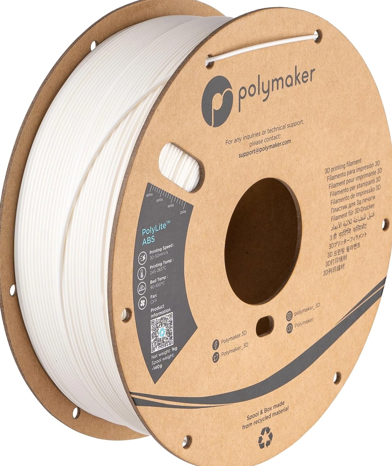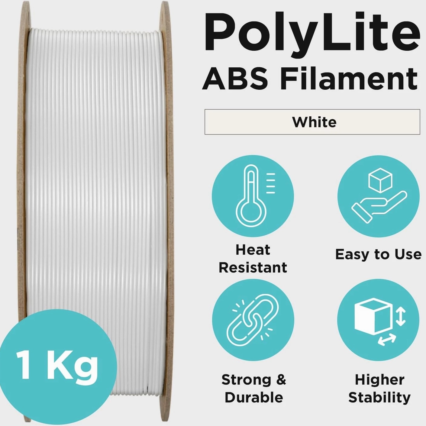 PolyLite ABS 3D Printer Filament 1.75mm – Engineered for Strength (Upgraded 3.0 Version Cardboard Spool Design) ABS 1.75 Filament Key Product Features: Engineered material with high heat resistance (Vicat Softening Temperature: 104˚C) and excellent mechanical properties. Perfect for functional parts that require impact or hot temperature resistance; High stability with specialty bulk-polymerized ABS resin; Consistent color and dimensional accuracy realized with CCD line sensor technology; Carefully wound, dried and vacuum-sealed in a resealable ziplock bag with desiccant, no tangle or moisture issues; Cardboard spool and box are made of recycled materials that can be recycled directly after use, helping reduce plastic waste. ABS Filament 1.75mm Printing settings: Nozzle: 245˚C - 265˚C; Bed: 90˚C - 100˚C; Speed: 30mm/s - 50mm/s Bed Surface: PEI sheet with ABS slurry; Cooling Fan: LOW for better surface quality, OFF for better strength. Tips: Please pass the ABS 3D printing filament through the fixed hole to avoid tangles after use. Using raft or brim or reducing the speed for the first layer could help avoid warping. ABS 1.75mm 3D Filament Specs: Material: Acrylonitrile Butadiene Styrene N.W: 1kg/3kg/5kg Filament Diameter: 1.75mm Spool Type: Recycled cardboard Dimensional Accuracy: 70% is within +/- 0.01, 97% is within +/- 0.02, 99% is within +/- 0.03, 99.9% is within +/- 0.04 ♥We promise to offer the best purchasing experience. Feel free to contact us when you need help, and we will reply within 24 hours. 🌡️ Impact & Heat Resistant: PolyLite 1.75mm ABS 3D printing filament is a durable material that minimizes jamming. With a Vicat Softening Temperature of 104˚C and strong mechanical properties, PolyLite ABS 3D printer filament is perfect for functional parts needing durability and high-temperature resistance. 🛠️ Enhanced Stability: PolyLite 1.75mm ABS 3D printing filament (Acrylonitrile Butadiene Styrene) is crafted from specialty bulk-polymerized ABS resin.