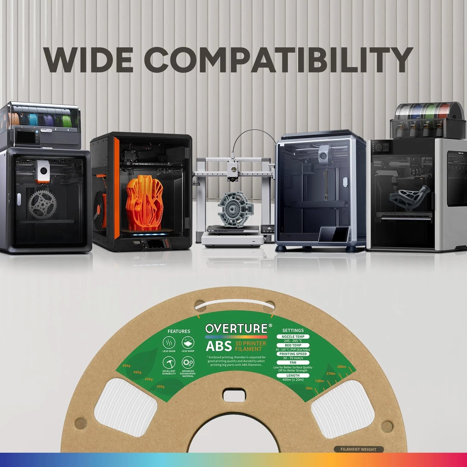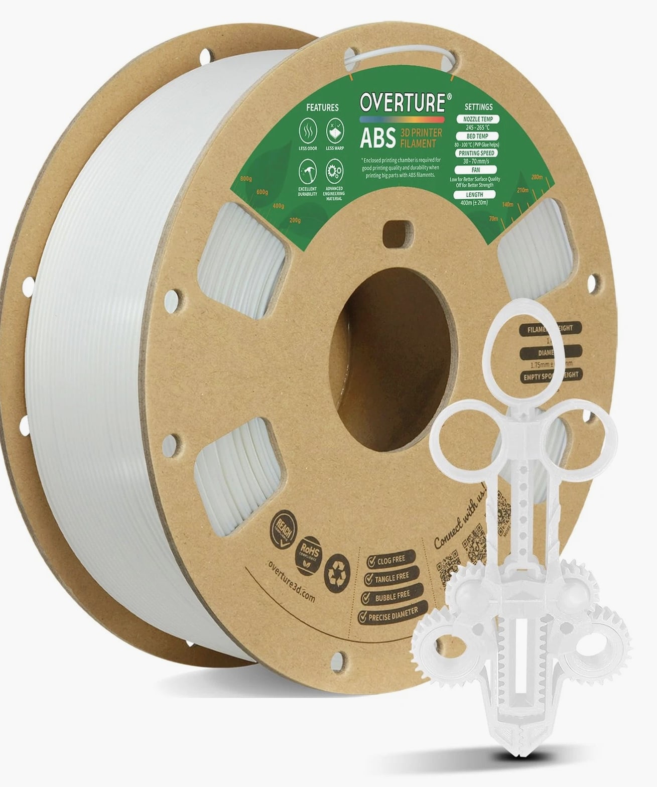Note: The recommended print setup for filaments could be slightly different from other filaments; Please read the description below, you may also get some practical suggestions through Q&A or Top Reviews from others. FAQs: Why can't the filaments stick to the build bed? 1. Check the temperature setting before printing, ABS filaments have higher extrusion temperature; 2. Check if the plate surface has been used for a long time, it is recommended to replace it with our new one to ensure strong first layer adhesion; 3. If the first layer has poor adhesion, it is recommended to re-level the print substrate to reduce the distance between the nozzle and the surface plate; 4. If the effect is not good, it is recommended to try printing the draft before printing. Specification: Recommended Extrusion/Nozzle Temp: 245°C - 265°C (473℉~ 509℉), Heated Bed Temp: 80°C - 100°C (176℉~ 212℉)/ PVP stick helps Printing Speed: 30~70 mm/s (1,800~4,200mm/min) Fan: Low for better surface quality; Off for better strength Raft Filament Diameter and Accuracy: 1.75 mm +/- 0.02 Filament Net Weight: 1 kg (2.2 lbs) Packaging Included: 1 × spool of ABS filament 【Superior Strength & High-Temperature Resistance】Engineered for durability, this ABS filament withstands higher temperatures than standard 3D printing materials, making it the ideal choice for functional prototypes, automotive parts, and enclosures that require exceptional heat resistance and toughness. 【User-Friendly Spool with Thoughtful Design】Experience hassle-free printing with our innovatively designed spool. Featuring a grid layout for easy tangle management, a clear length/weight gauge, a viewing hole, and a larger inner diameter for smoother feeding, this ABS filament spool is built for convenience and efficiency. 【Smooth, Glossy Finish for Professional Prints】Produce parts with a polished, professional look. ABS is formulated to yield a characteristically glossy surface finish straight off the print bed, reducing the need for post-processing.