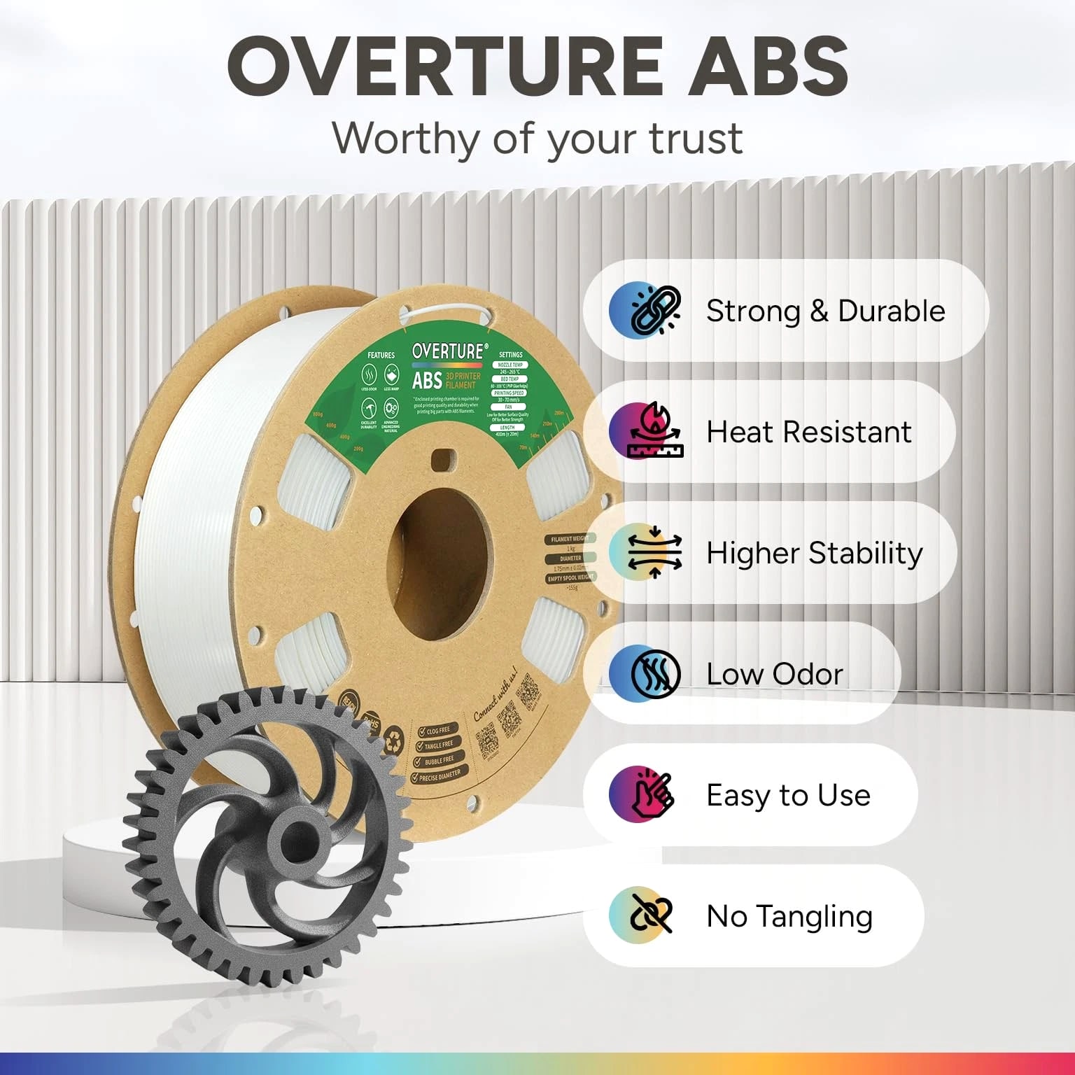 ABS Filament 1.75mm, High Strength & Heat Resistant 3D Printer Material, Low ...