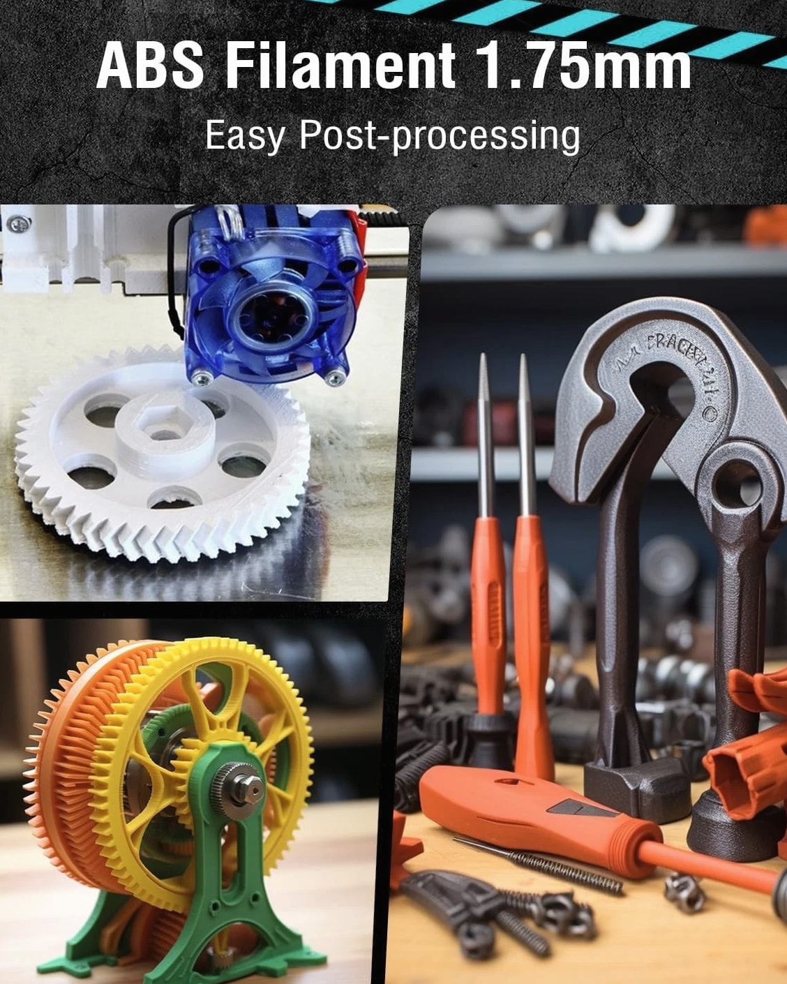 1kg Spool ABS 3D Filament Experience the pinnacle of 3D printing with our 1kg Spool of ABS material, a tough, compatible, and economical solution tailored for creators and innovators alike. Features: Strong and Durable: This ABS filament is crafted for resilience, making it perfect for durable items or functional components that demand higher heat resistance. Impact Resistance: Built to endure, this material withstands prolonged use, resisting wear, breakage, or deformation even under pressure. Toughness: Maintain the integrity of your printed designs with filament designed to resist scratches and surface damage, ensuring a pristine finish even after extensive use. Optimal Print Parameters: Recommended settings include a nozzle temperature of 250-260β, platform temperature of 80-100β, and speed of 40-60mm/s, compatible with most FDM 3D printers using 1.75 mm filaments. Increased Value: Upgraded to a 1KG package, experience more filament without an increase in price for a cost-effective solution. Diverse Color Options: Choose from a variety of colors to match your project requirements and personal preferences. Compatibility Assurance: Works seamlessly with 99% of 3D printers, featuring a larger inner diameter for easy unwinding. Precision Engineering: With a diameter tolerance of Β± 0.02 mm, this material ensures outstanding print precision and quality. Reliable Support: Our dedicated service team is ready to assist with any inquiries about orders, invoices, or filament quality. Decades of Experience: With over 10 years in filament production, our expert team maintains rigorous quality control throughout the manufacturing process. Why Choose Our ABS Material? Enhance your 3D printing projects with our ABS filament, a robust material that guarantees durability and precise outcomes. Whether crafting intricate designs or functional components, this filament promises to keep your creations intact while withstanding daily use. Choose quality and confidence in your