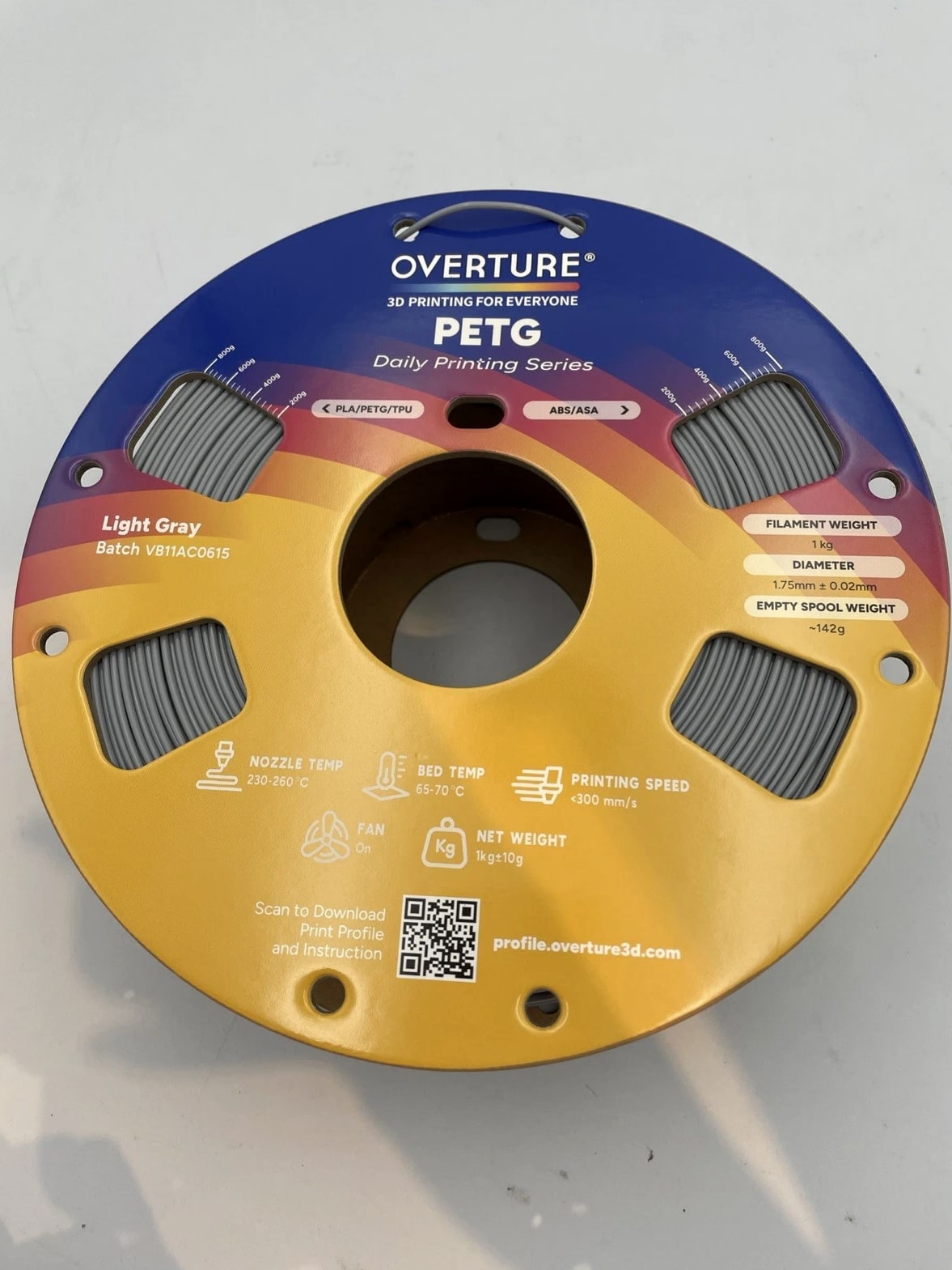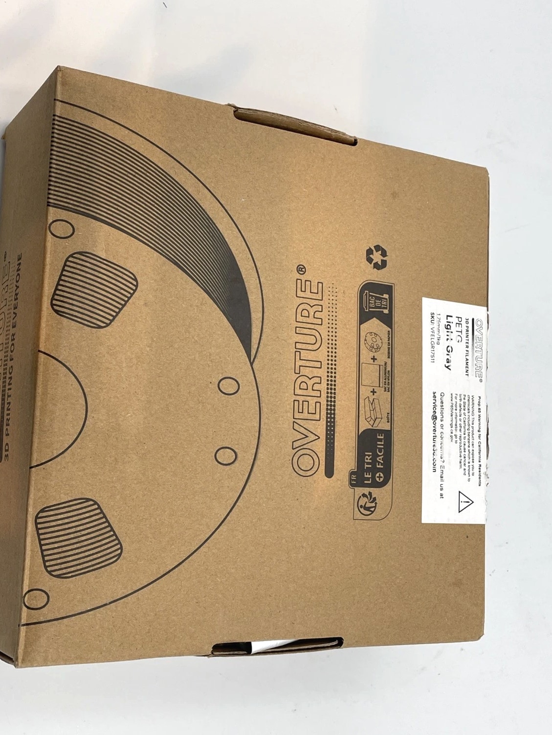 Overture PETG 3D Printer Filament - Grey 1.75mm/1kg Open Box