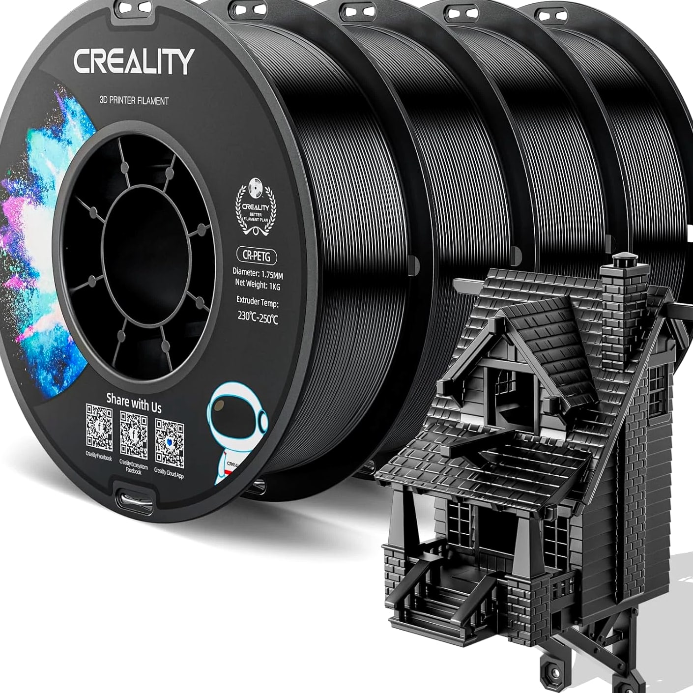 Official PETG 3D Printer Filament 1.75Mm 4KG (8.8Lbs), High Precision, Strong Toughness, Odorless, Better Flow, Moistureproof 3D Printing PETG Filament, Black (4-Pack) Description Item Weight 4 Kilograms Color PETG-4kg Black (4-pack) Item Diameter 1.75 Millimeters Material Polyethylene Terephthalate Glycol 【CR-PETG Filament】PETG combines the benefits of PLA and ABS to reach eco-friendly and odorless performance. This PETG Filament features good toughness to avoid cracking and warping, enabling excellent 3D printing. 【Toughness-Enhanced PETG】Our PETG choose durable and strong material that delivers excellent clarity, light transmission, and a glossy finish. It is recommended to use a printing temperature of 220-250°C and a base plate temperature of 70-80°C for better printing results. 【Tangle-Free & Neatly Wound】We ensure that every PETG filament is tightly and neatly wrapped by utilizing full mechanical winding, which effectively minimizes tangles, filament snapping, and line breakage. 【No Clogging & No Bubbles】Our filaments are thoroughly dried and carefully vacuum sealed to protect them from moisture and dust, which ensures that there will be no issues with clogging or bubbling during printing. Our PETG is designed to be perfectly compatible with the majority of 1.75mm FDM 3D printers, especially suitable for 3D Printer models! 【High Precision & Consistent Performance】Our PETG filament boasts a diameter of 1.75mm, ensuring utmost accuracy with a tolerance of only +/- 0.03mm. With strict quality control and impeccable dimensional precision, PETG filament guarantees a smooth and steady feeding during printing. Product description 1 Durable & Strong 2 Non-Toxic, No Odor 3 Good Translucency