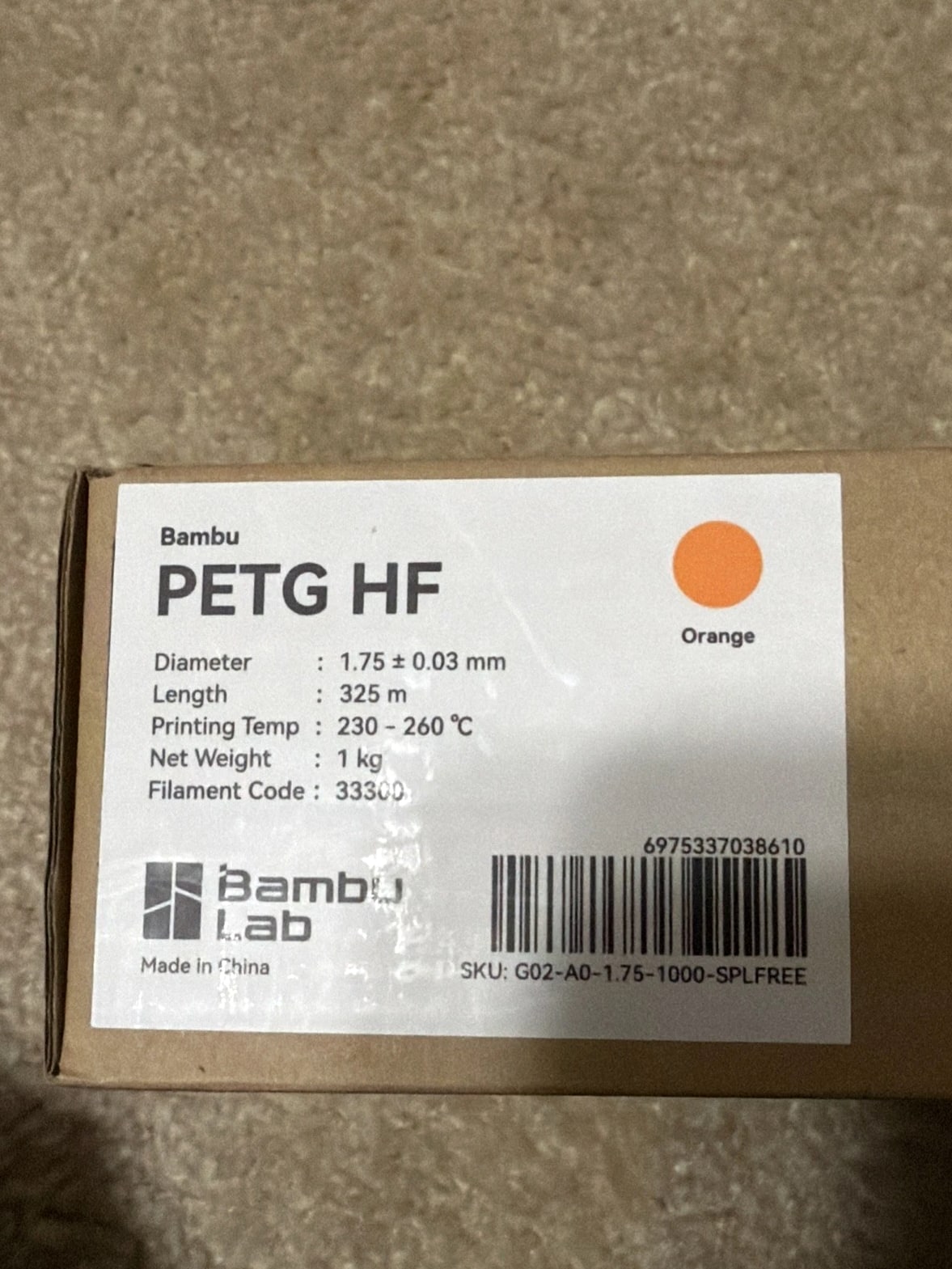 The Bambu Lab PETG HF Orange Refill is a premium-grade 3D printer filament engineered for use with printers requiring 1.75mm diameter material. This refill features a striking orange hue, perfect for vibrant and visually distinctive prints. Constructed from PETG compound, this filament delivers excellent strength and durability, guaranteeing superior finish quality for all printed projects. Ideal for novices and seasoned 3D printing professionals alike, the Bambu Lab PETG HF Orange Refill stands as a dependable and flexible solution for diverse 3D printing applications.