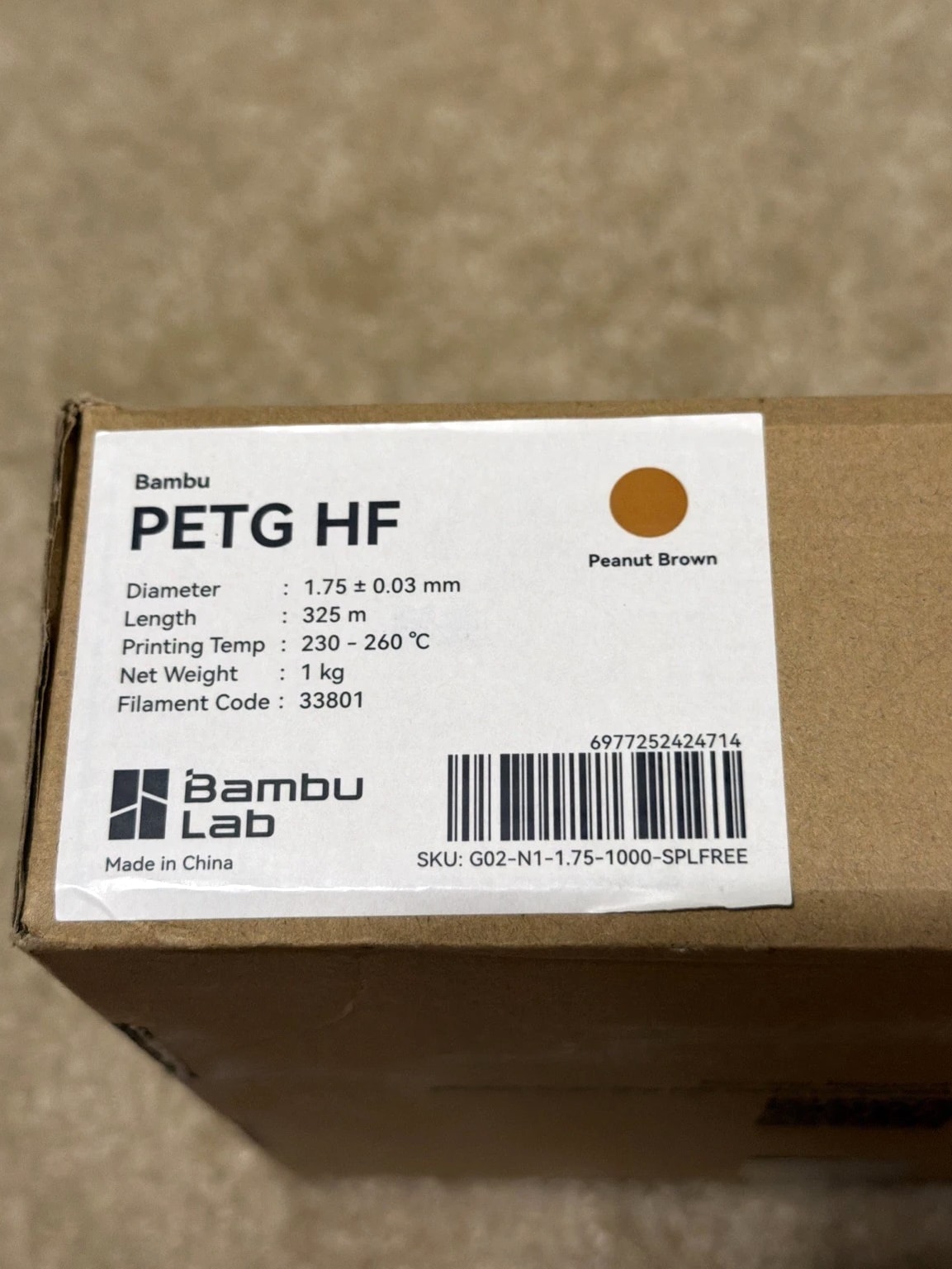 The Bambu Lab PETG HF Peanut Brown Refill is a premium 3D printer filament in brown, engineered for use with 1.75 mm diameter printers. Made from PETG material, this unit delivers dependable and uniform printing performance. Produced by the reputable Bambu Lab brand, this refill guarantees smooth and successful 3D printing results for diverse applications.