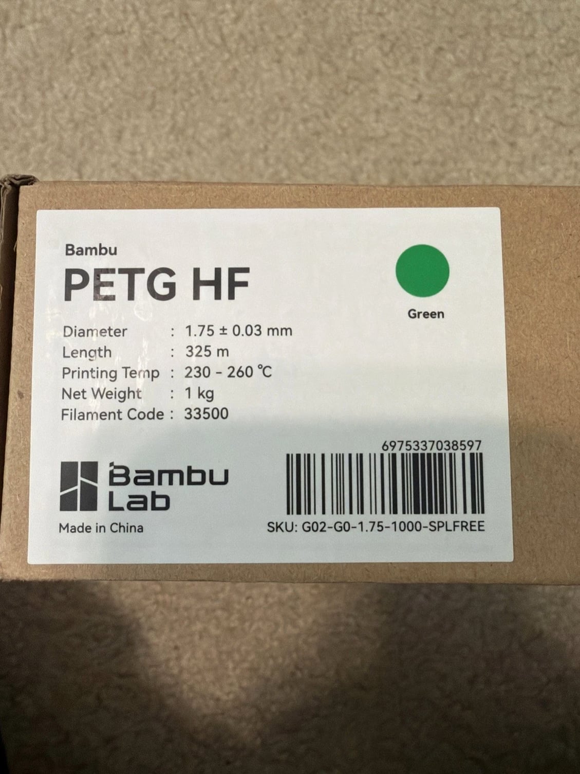 Bambu Lab PETG HF Green - Refill Cartridge