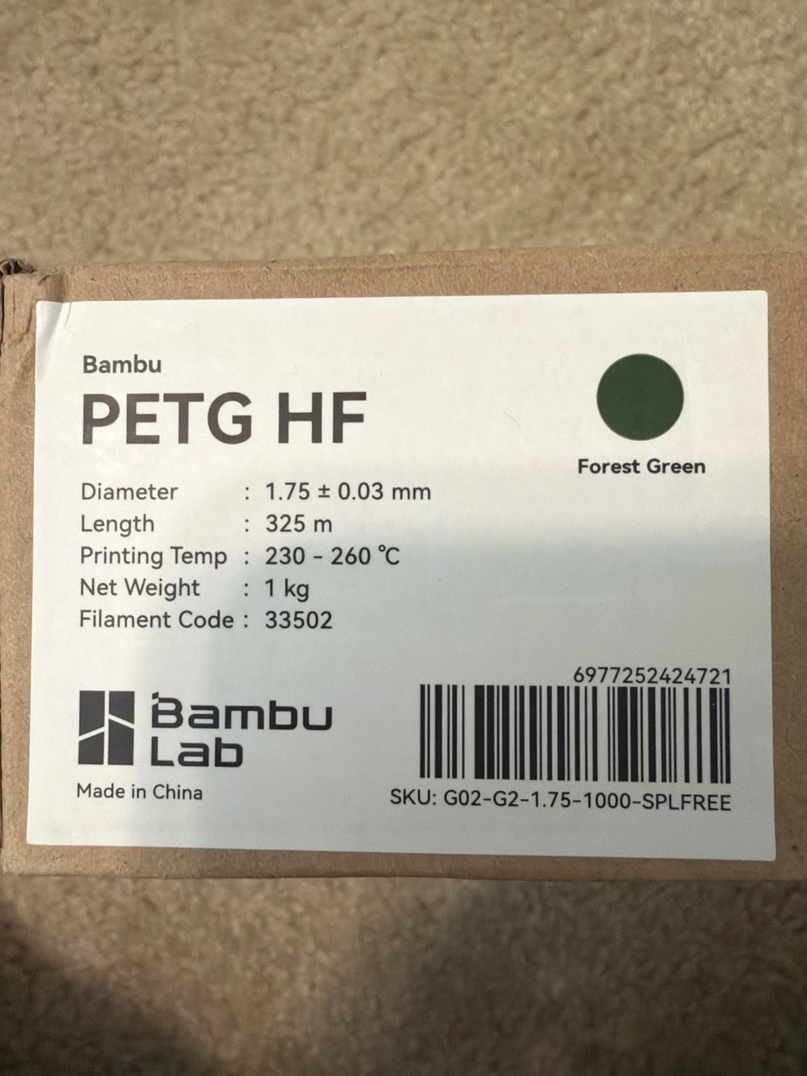 New condition. Bambu Lab PETG HF Forest Green Refill cartridge.