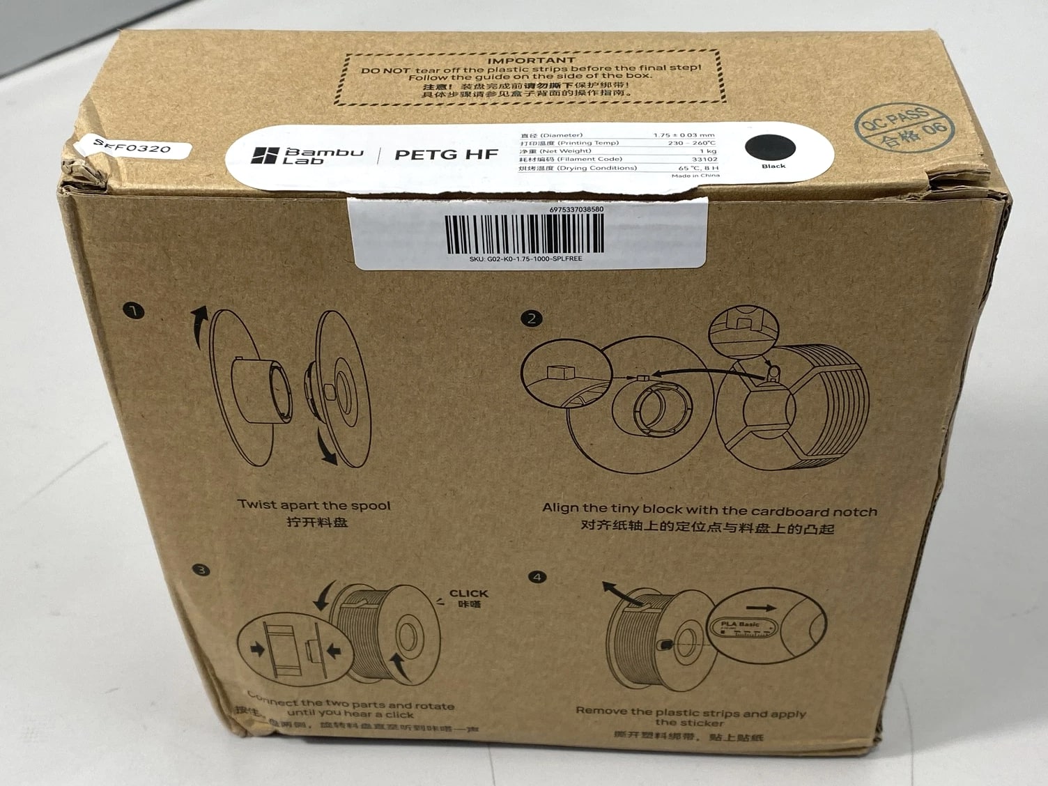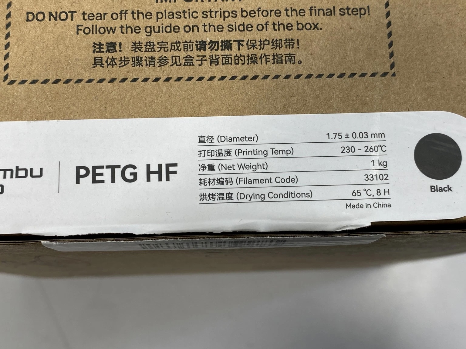 Bambu PETG HF 1.75mm Black 33102 - Open Box