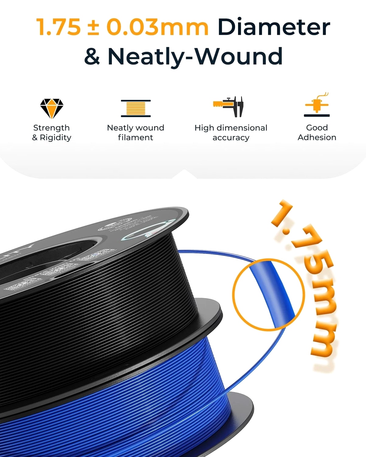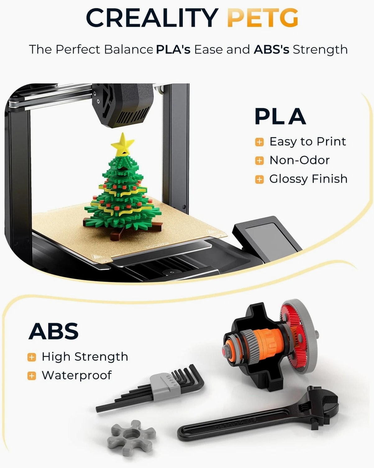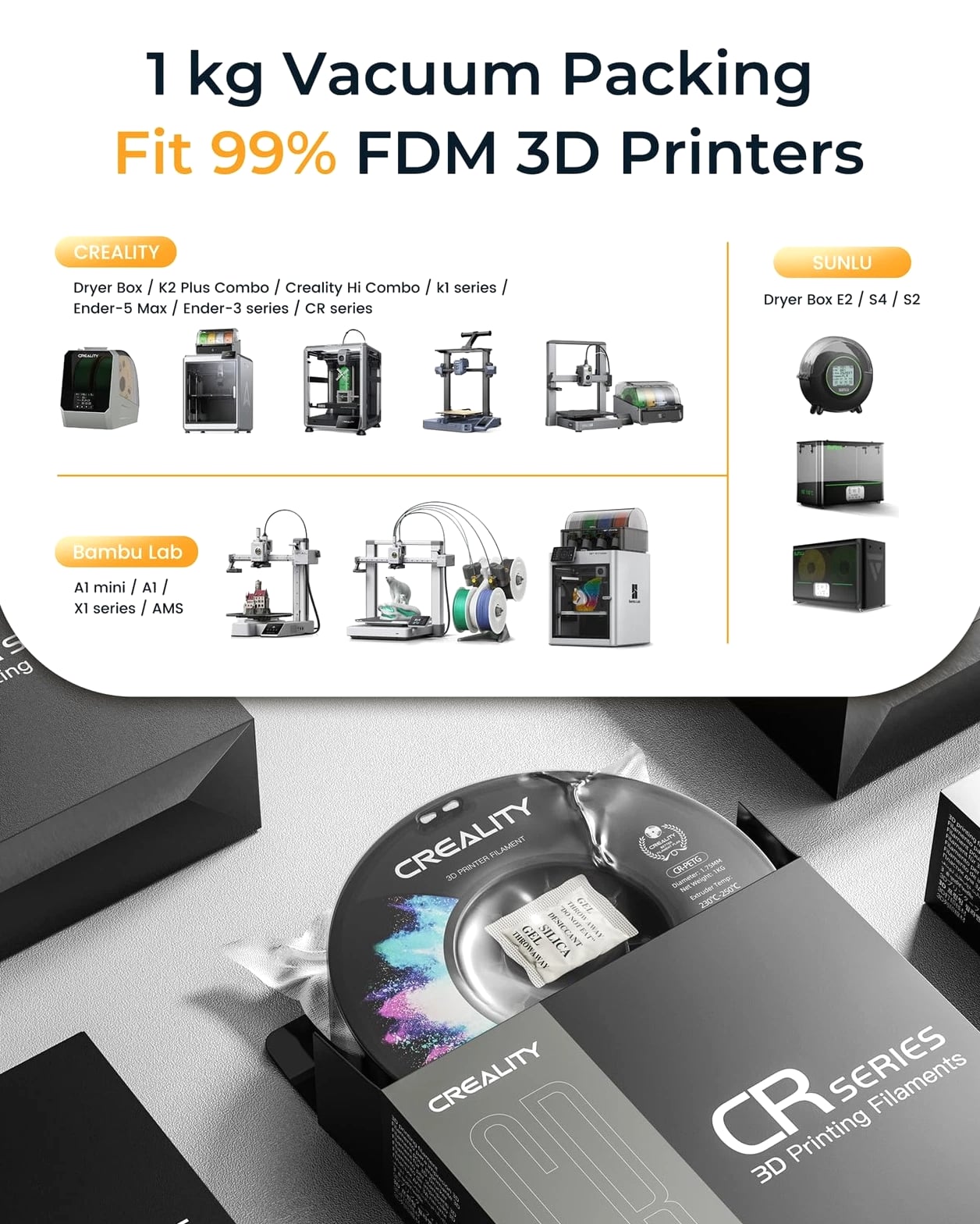 Creality PETG 3D Printer Filament 1.75mm 1KG, Grey Color Description Features: 【Creality CR-PETG Filament】Creality CR-PETG combines the benefits of PLA and ABS to reach eco-friendly and odorless performance. This PETG Filament features good toughness to avoid cracking and warping, enabling excellent 3D printing. 【Toughness-enhanced PETG】Creality PETG chooses durable and strong material that delivers excellent clarity, light transmission, and a glossy finish. It is recommended to use a printing temperature of 220-250°C and a base plate temperature of 70-80°C for better printing results. 【Tangle-Free & Neatly Wound】We ensure that every PETG filament is tightly and neatly wrapped by utilizing full mechanical winding, which effectively minimizes tangles, filament snapping, and line breakage. 【No Clogging & No Bubbles】Our filaments are thoroughly dried and carefully vacuum sealed to protect them from moisture and dust, which ensures that there will be no issues with clogging or bubbling during printing. Our PETG is designed to be perfectly compatible with the majority of 1.75mm FDM 3D printers, especially suitable for Creality 3D Printers! Product Details: Handling All orders will ship within 1 business day of payment. Delivery Shipping available to Continental US addresses. Return Policy All items qualify for returns within 30 days of receipt. Buyer is responsible for return shipping on any item that is not damaged. Feedback We take our reputation seriously; we buy and sell online, so we understand the value of trust. If you are unsatisfied with your order, please contact us and we will work with you to resolve it to your satisfaction.