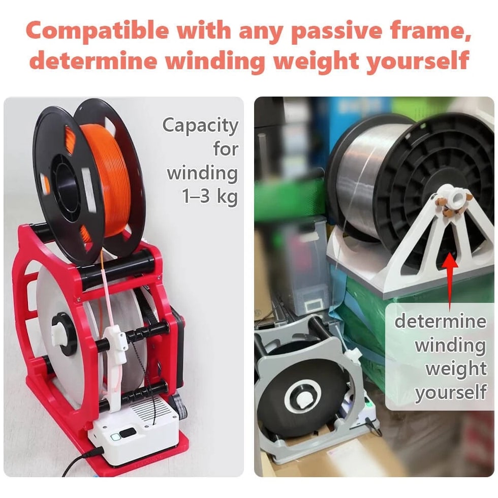 Electric Filament Winder/Respooler for 3D Printing – 1KG Automatic Spool Rewinder 3D Printing Filament Respooler – Automatic Electric Winder for 1KG Spools Tired of messy, tangled filament and time-consuming manual winding? This automatic electric filament respooler is the perfect solution for 3D printing enthusiasts, hobbyists, workshops, and home users. ✅ Key Features Fully Automatic Respooling Smart thread detection with auto start/stop function ensures clean, tangle-free winding every time. Efficient & Adjustable Speed Quickly transfers filament, welding wire, or sewing thread from large spools to standard 1KG spools. Intelligent Auto Stop Built-in material sensor automatically stops when finished, preventing waste and winding errors. Stable & Durable Design Reinforced structure with quiet, high-torque motor delivers consistent tension and professional results. Wide Compatibility Works perfectly with PLA, ABS, PETG 3D printing filament, welding wire, sewing thread, and more. Supports all standard 1KG spools. 📦 Specifications Product Name: 3D Printing Filament Respooler Color: Red & Black Material: High-strength ABS Voltage: 110V / 220-240V (wide voltage) Capacity: 1KG spools Net Weight: 1.5kg 📦 Package Included 1 × Electric Filament Respooler 1 × User Manual 🚚 Shipping & Service Ships from US Overseas Warehouse Fast shipping within 1 business day Quick delivery to your door 🛡️ After-Sales Support If any parts are damaged during shipping, we can provide STL files for you to reprint and replace the broken parts easily. 📩 Note Please allow slight color difference due to lighting and 1-3cm measurement error. If you have any questions, feel free to message us – we reply within 24 hours. Important Notes: Spools of different specifications may vary in width, which directly affects the winding performance. For optimal winding results, please make sure the **1KG empty spool** used with the winder meets the following specifications: Outer Diameter (OD): 200 mm (stand