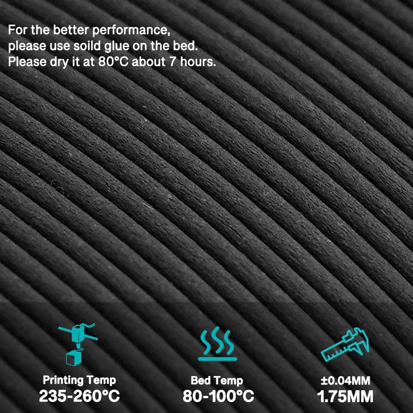 Carbon Fiber Nylon PA6-CF 3D Printer Filament 1.75Mm 1Kg with PC Spool
