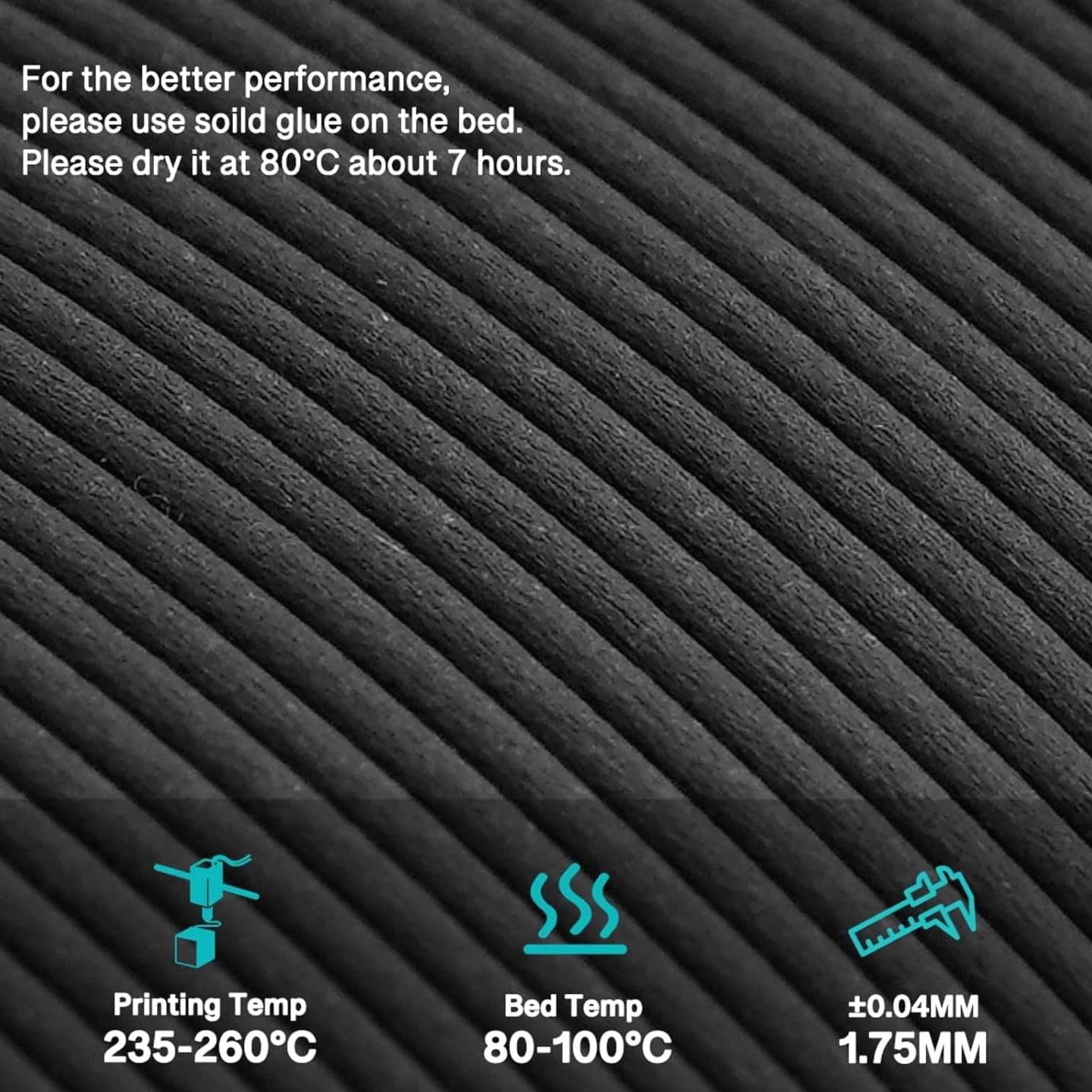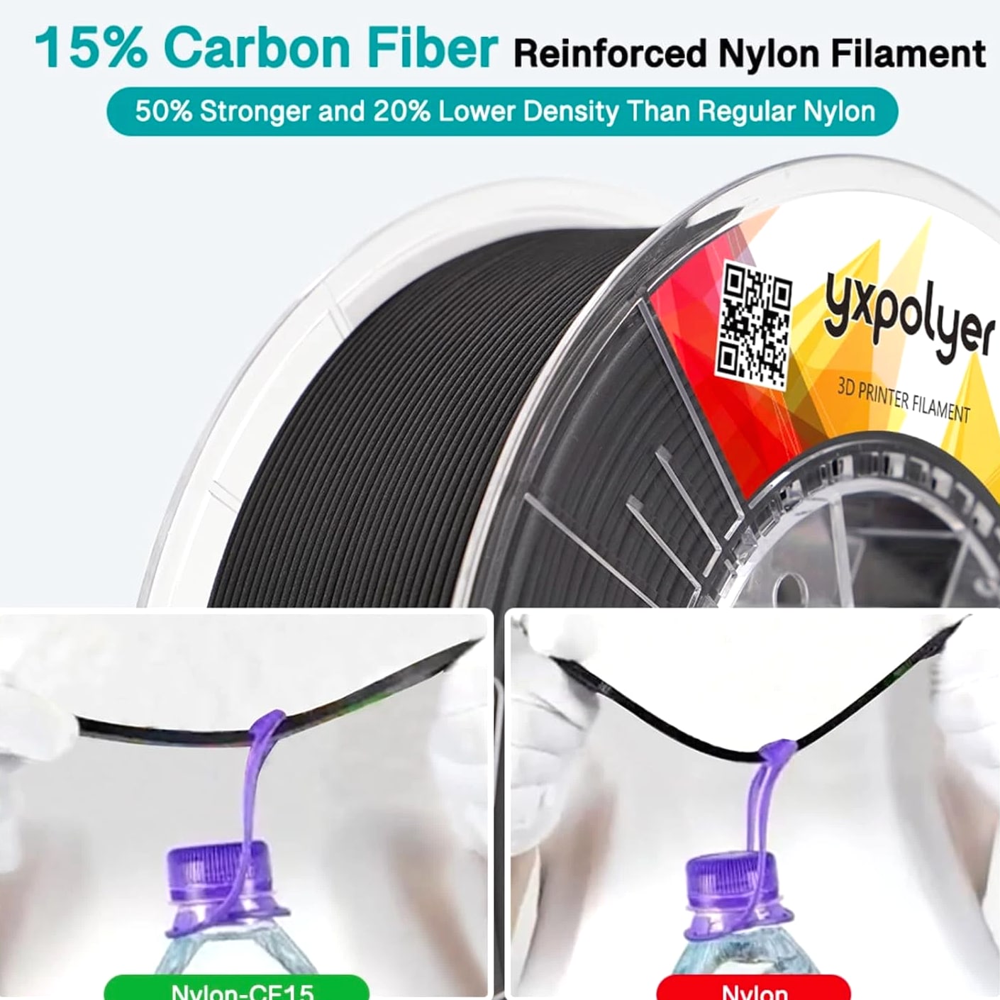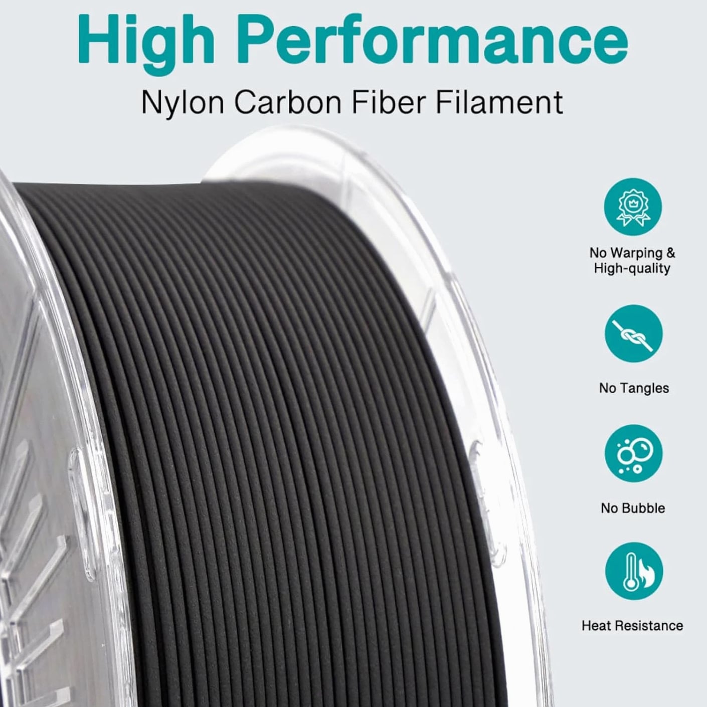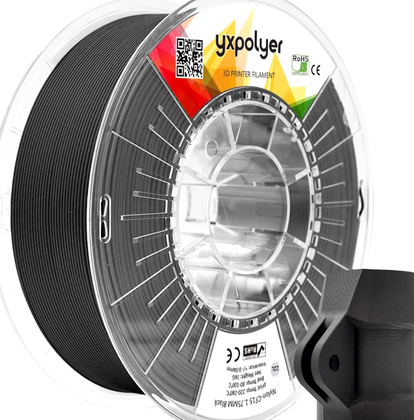 Carbon Fiber Nylon Filament 3D Printer Filament PA6-CF Filament 1.75Mm 1Kg with PC Spool, PA6 CF 3D Printing Filament Description Unit Count: 1.0 Count Warranty Description: 1 Year Item Diameter: 1.75 Millimeters Number of Items: 1 Color: 1kg Material: Carbon Fiber, Nylon Material Type: Carbon Fiber, Nylon Manufacturer Part Number: PETG CF Item Weight: 1 Kilograms Size: PA6-CF High Strength & Rigidity: Incorporates 15% short carbon fibers, significantly enhancing tensile strength and rigidity. Maintains structural stability under high loads or stress, with minimal deformation. Heat Resistance & Dimensional Stability: Delivers exceptional mechanical performance and dimensional stability even under high temperatures. Reduces the risk of material fatigue and deformation for parts exposed to prolonged high-temperature conditions. Lightweight Design: Thanks to low-density properties of carbon fiber, printed parts achieve both high strength and lightweight characteristics. Ideal for aerospace and automotive applications, effectively reducing weight while improving overall performance. Superior Chemical Resistance: Resistant to various chemicals, including acids, alkalis, oils, and solvents. Ensures long-lasting durability and reliability even in harsh industrial environments. Versatile Applications: Widely applicable in automotive components, mechanical fixtures, electronic device mounts, and aerospace structures. Excels in both prototyping and end-use scenarios, offering outstanding mechanical properties and thermal stability.