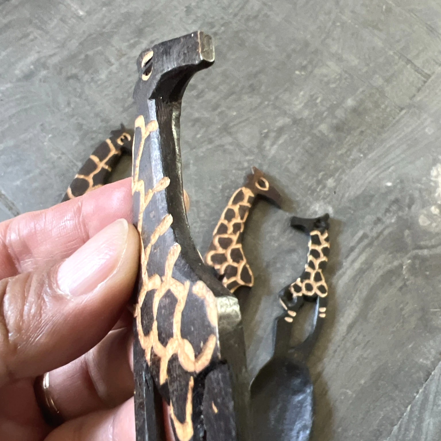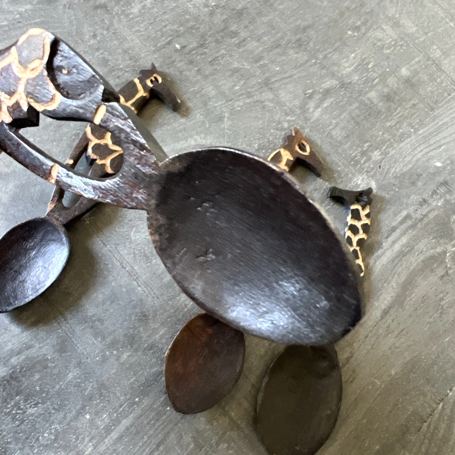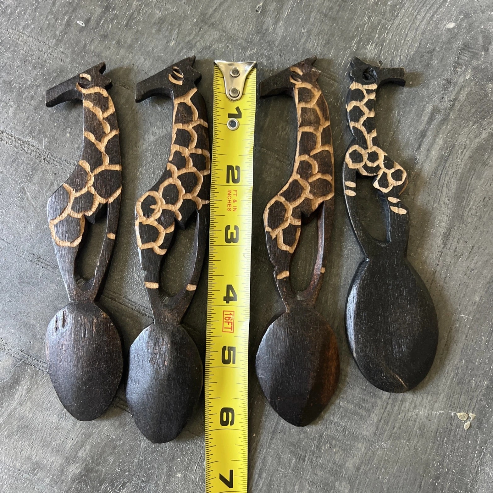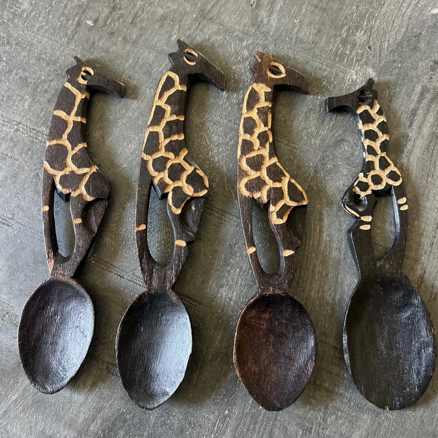 Vintage Hand Carved African Giraffe Wooden Spoons 4-Piece Set Decor 5.5-6 Inch