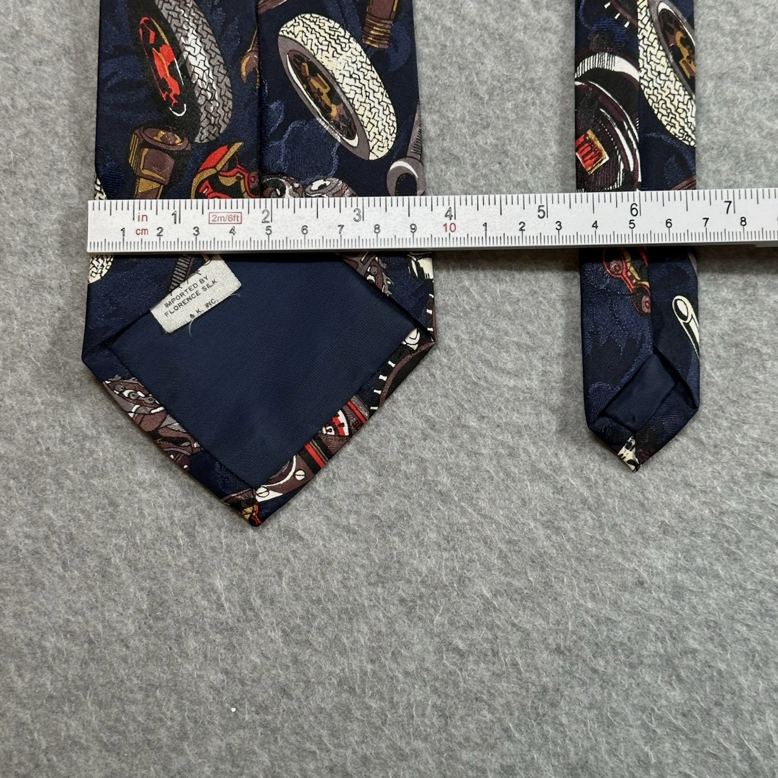 Vintage Florence Silk Tie, Automotive Gauges Novelty Navy 90s Mens 55x3.75in