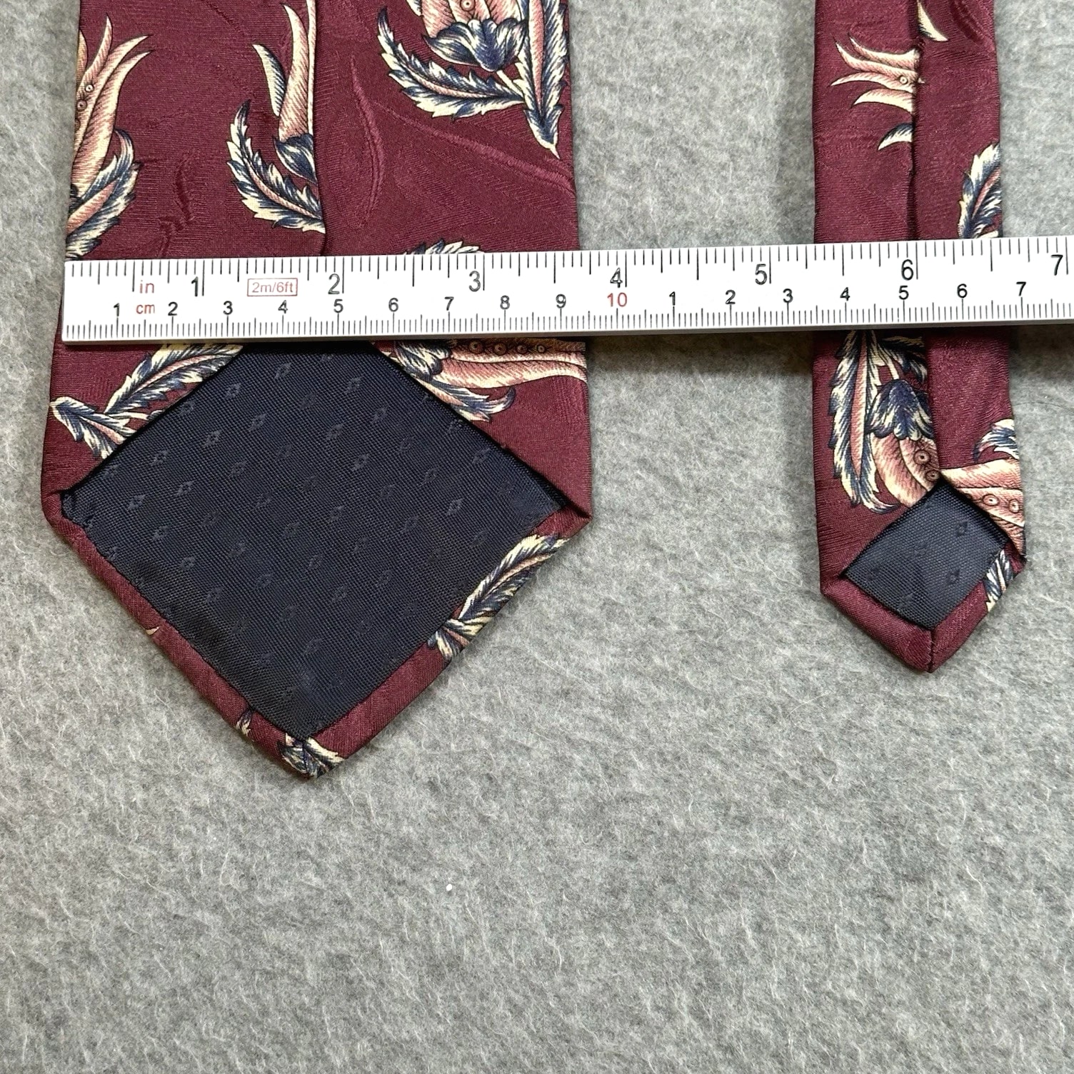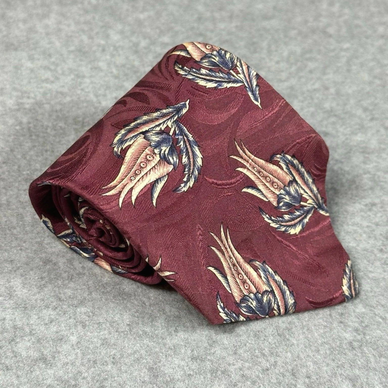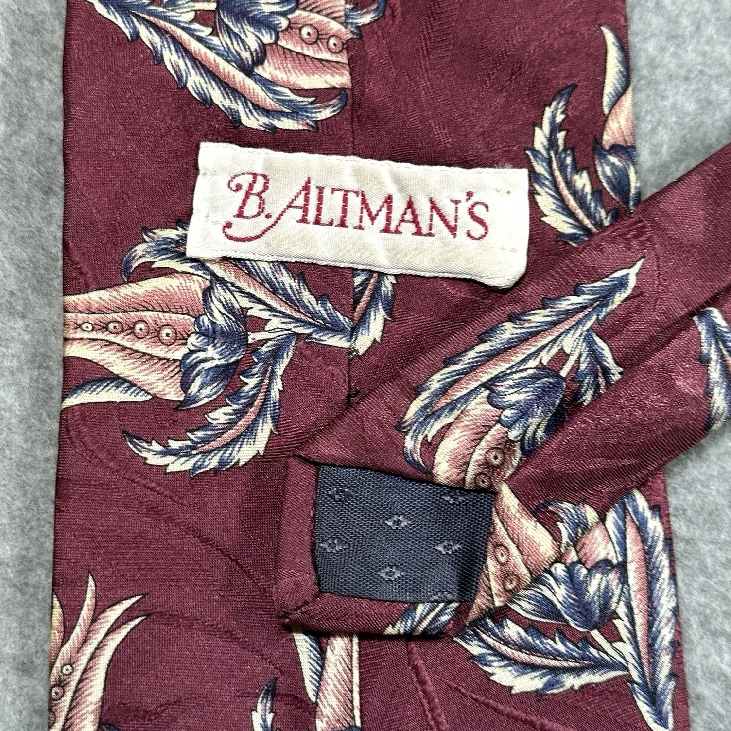 Vintage B Altman Silk Tie, Burgundy Floral Narrow 90s Mens Necktie 58x3.75in