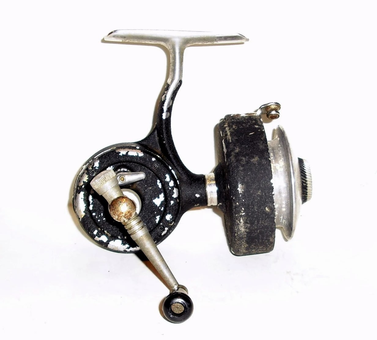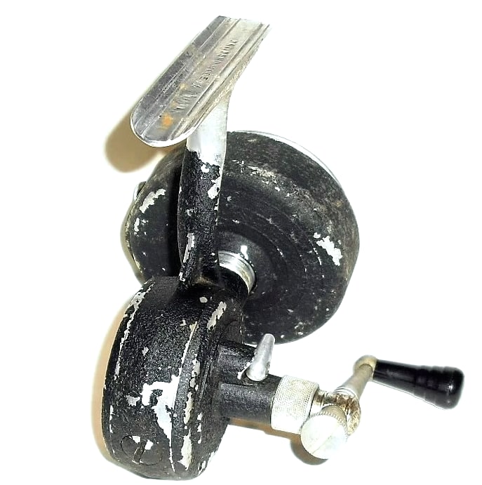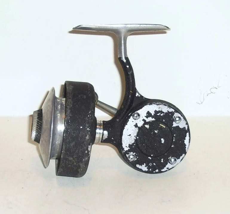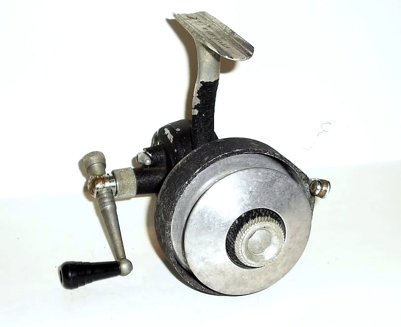 Heddon Manual Spin Pal. Black crinkle finish. I'm not sure of the model number. It may be a No. 240. You don't see many Spin Pal reels that are left handed. You don't see many Spin Pal reels that don't feature a bail. I have other vintage reels available. If you are interested in 2 or more of my listings please send me a message with an offer. If we agree on a price I can relist those items as a lot in a private listing.