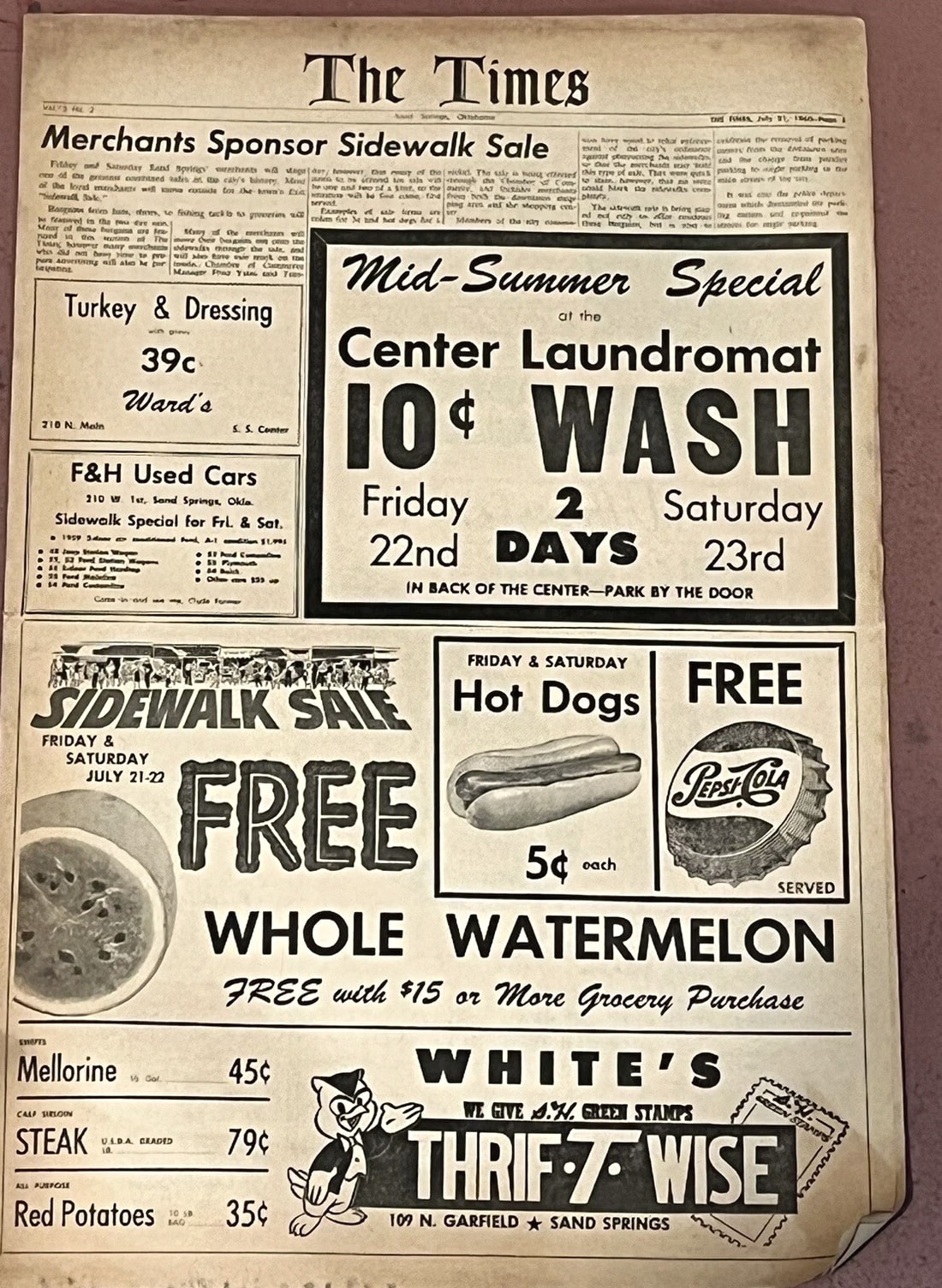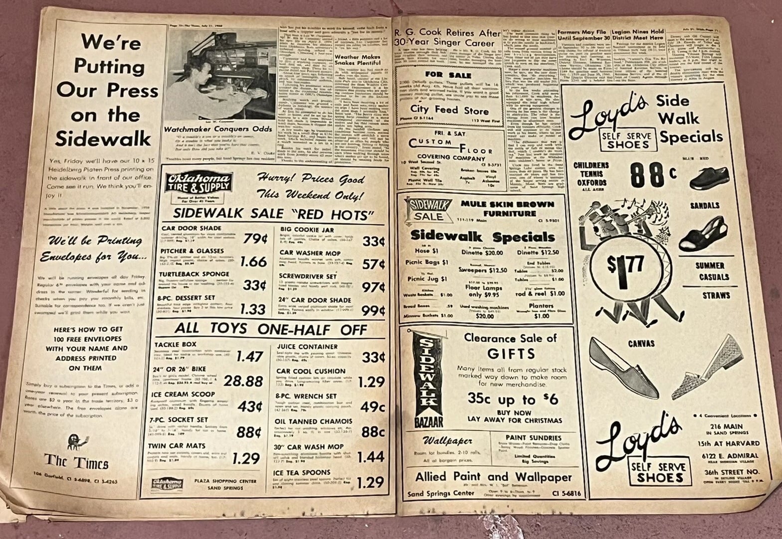 Vintage Newspaper The Times Sand Springs OK Antique Advertisements 1960